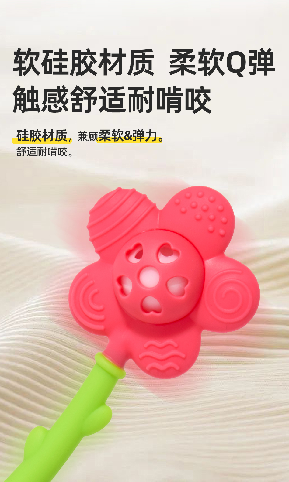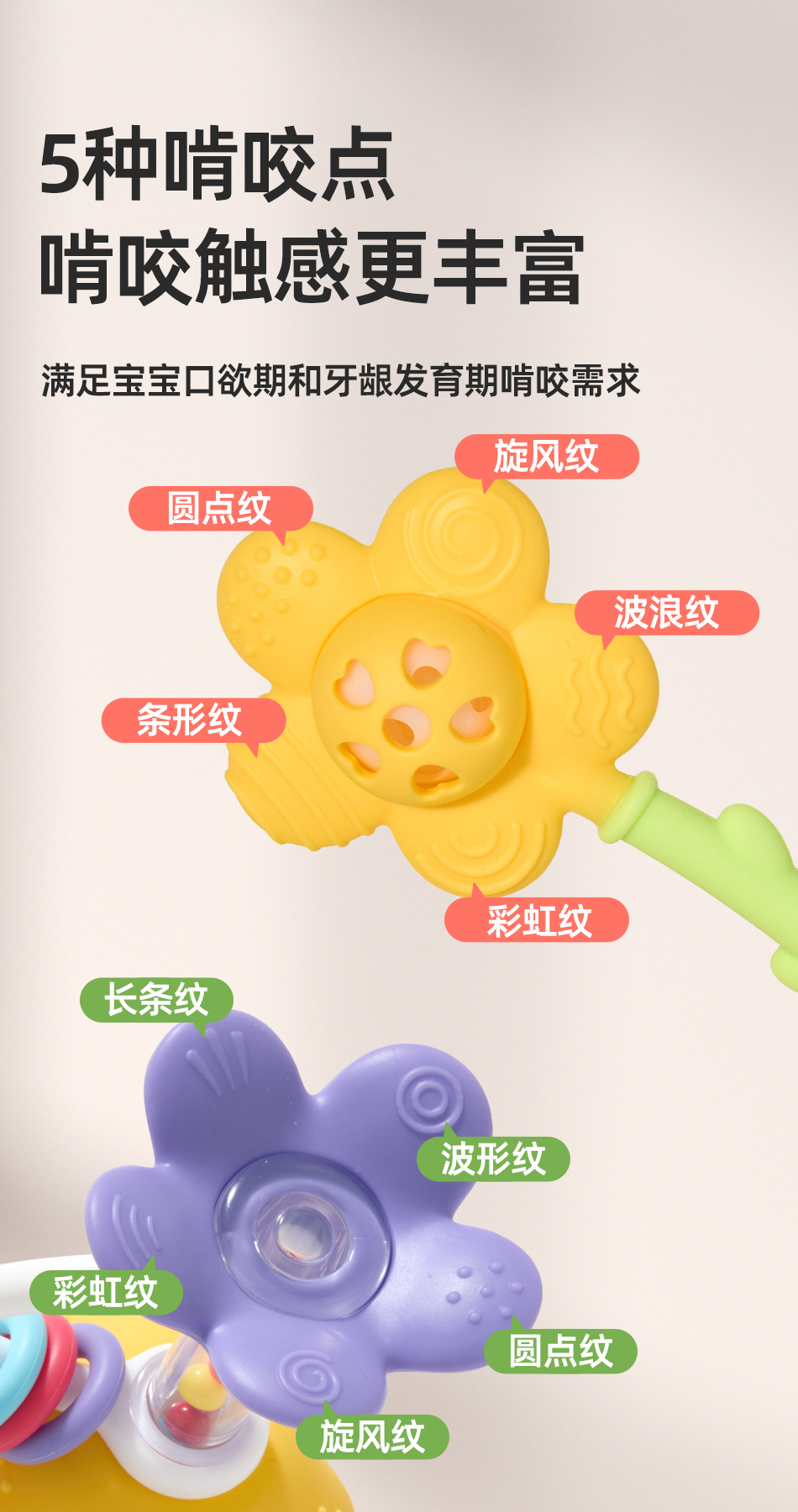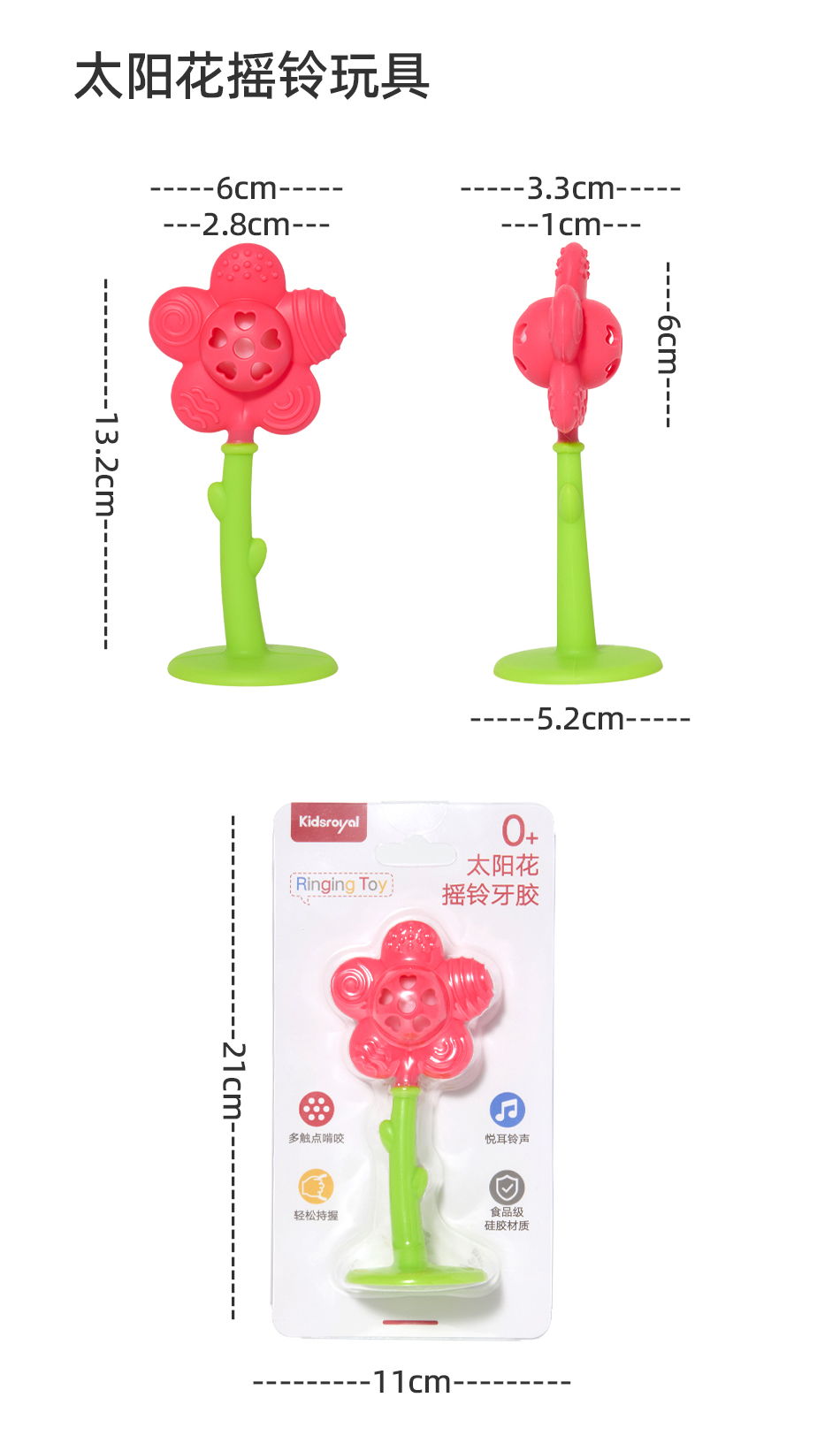 KIDSROYAL 多触点花瓣摇铃玩具牙胶-黄色/红色/双色黄紫色 KTR02
