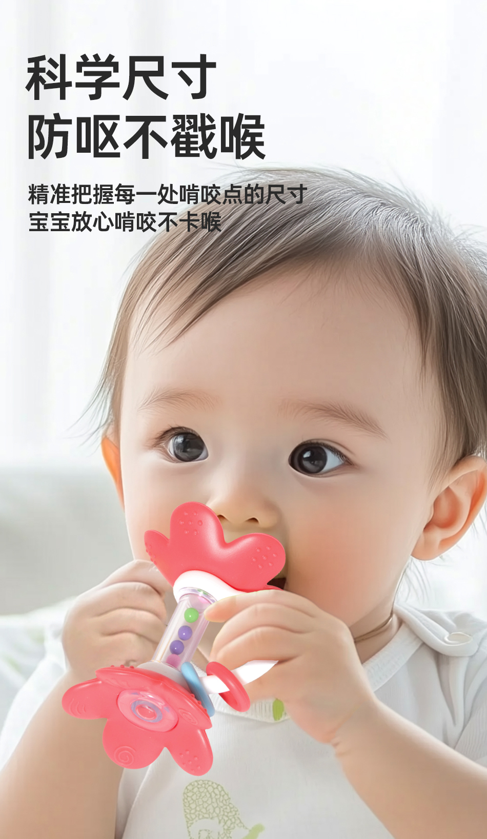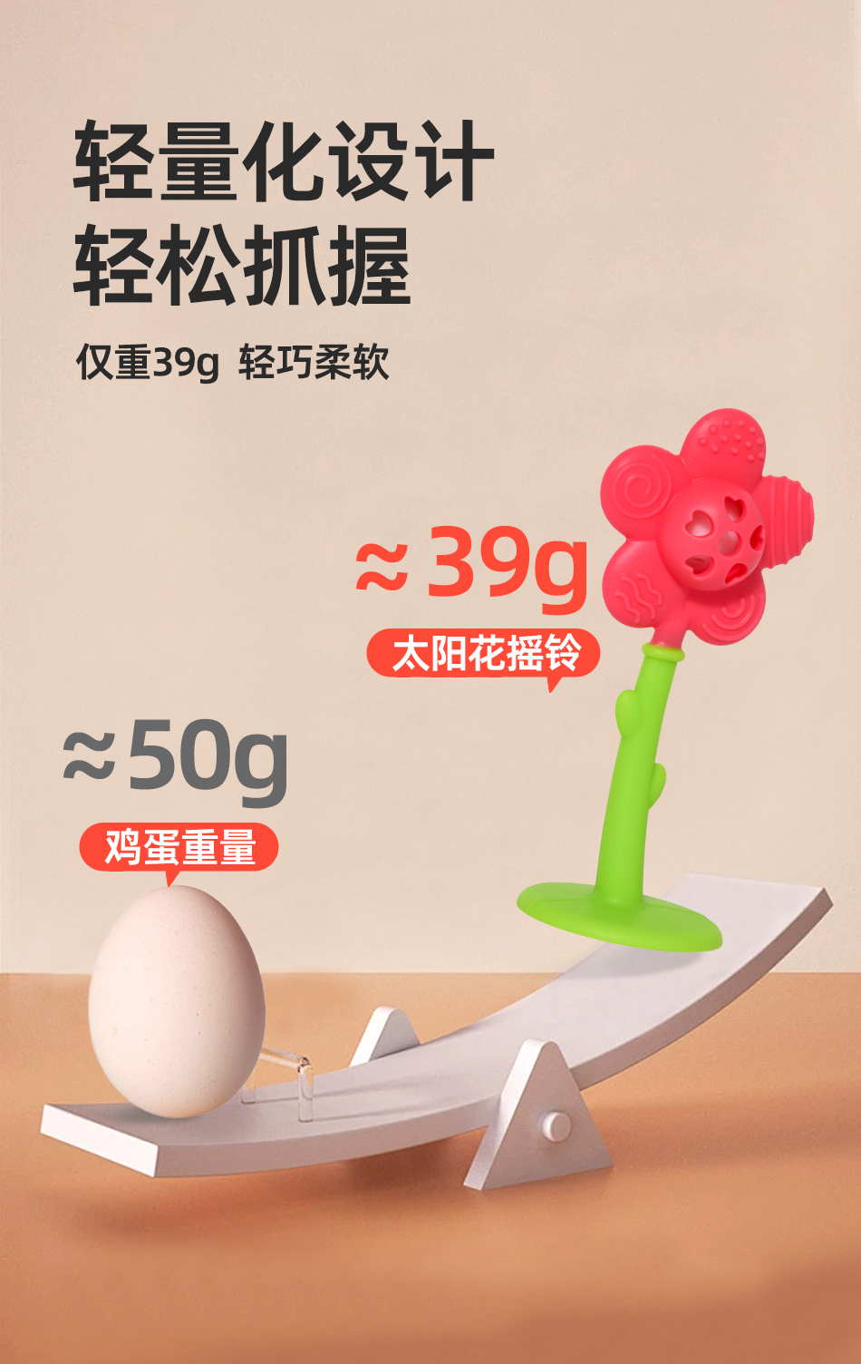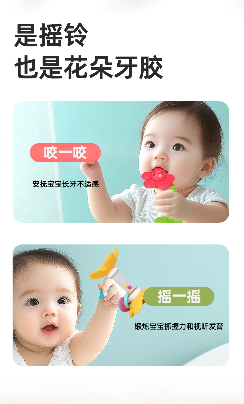 KIDSROYAL 多触点花瓣摇铃玩具牙胶-黄色/红色/双色黄紫色 KTR02