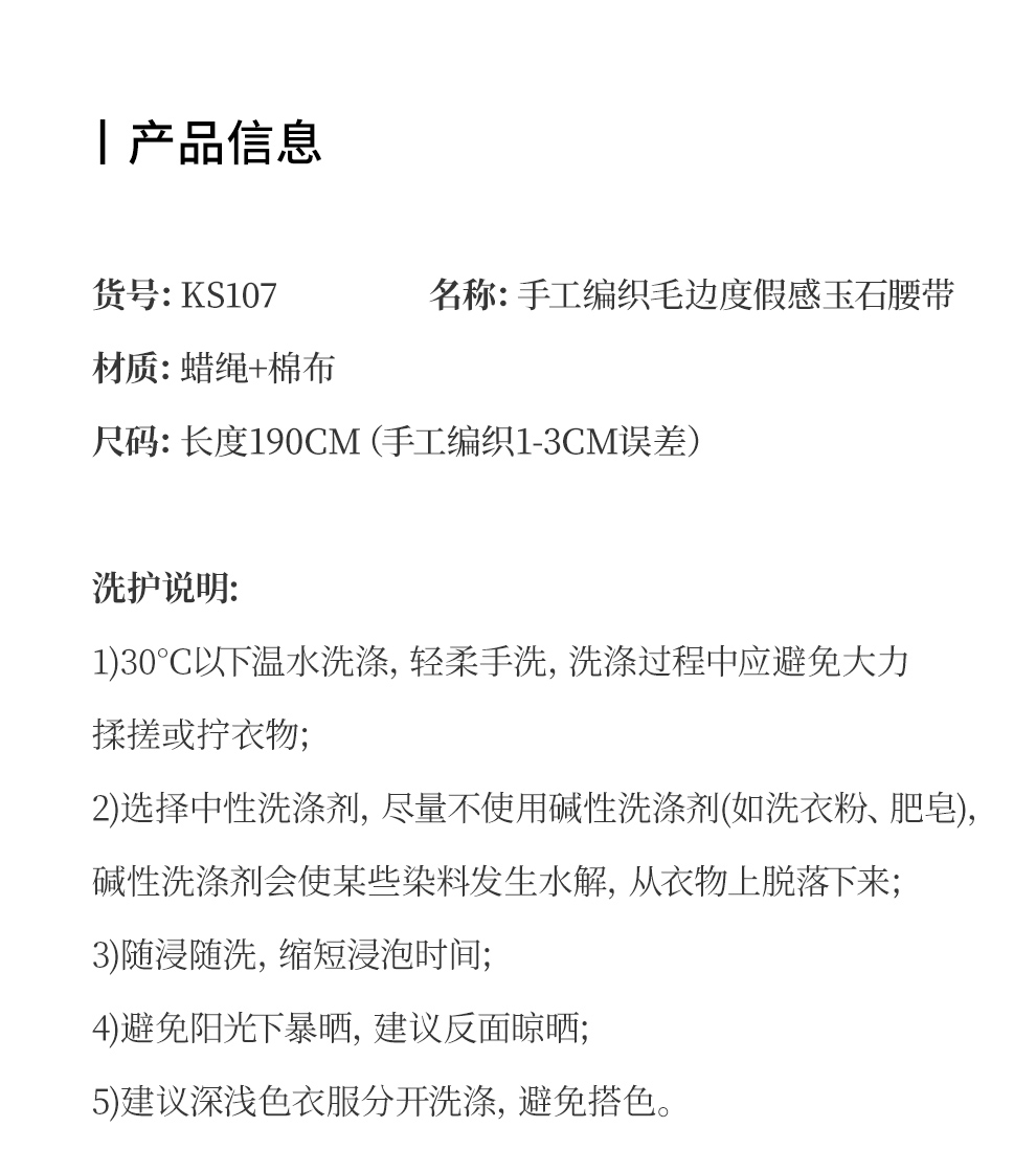 绽放KS107朵/手工编织毛边度假感玉石腰带
