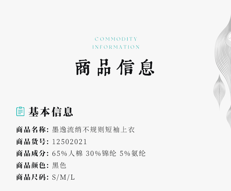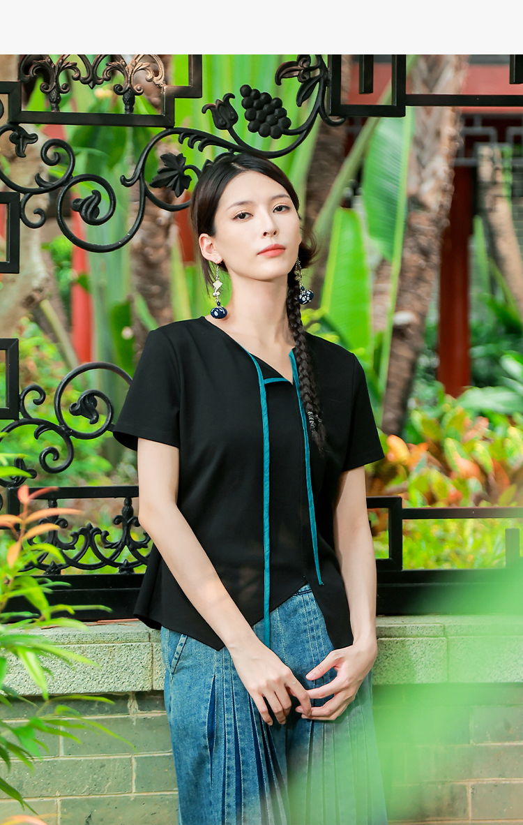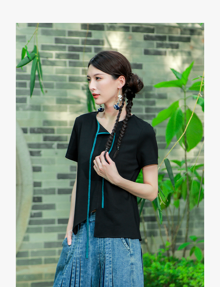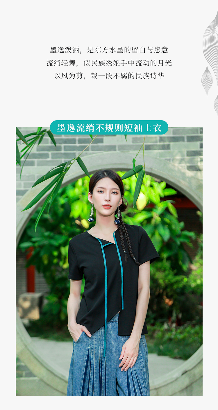 【夏季新品】墨逸流绡不规则短袖上衣 | 简约百搭T恤
