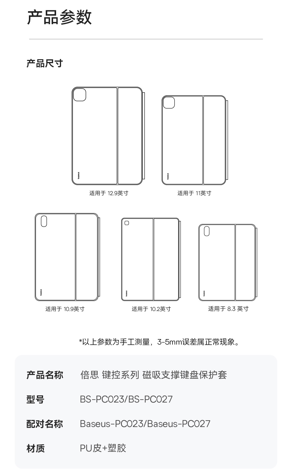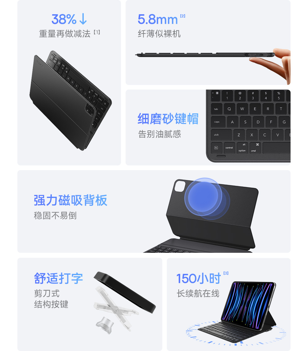 【十一专享】倍思键控系列 磁吸支撑键盘保护套 iPad妙控键盘
