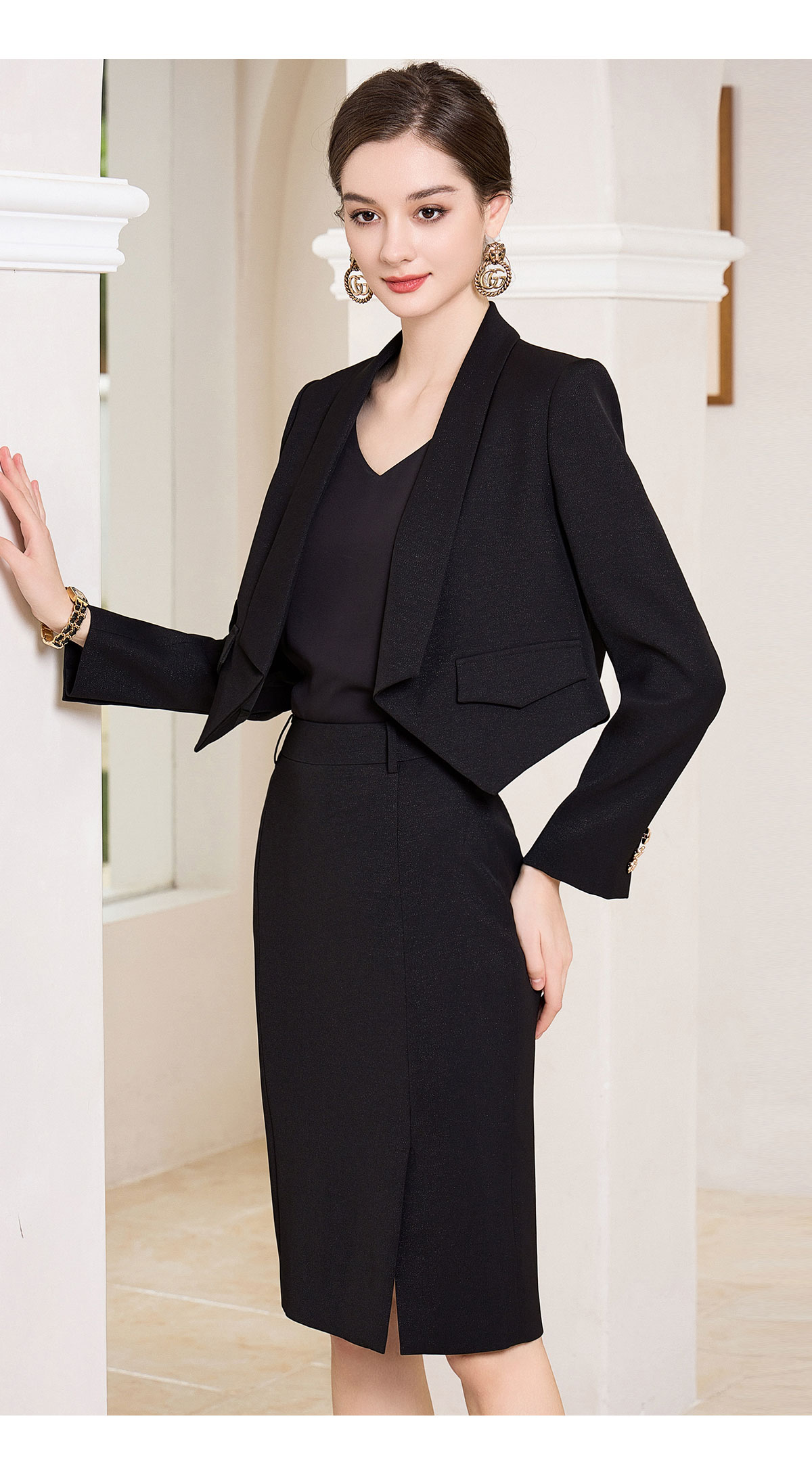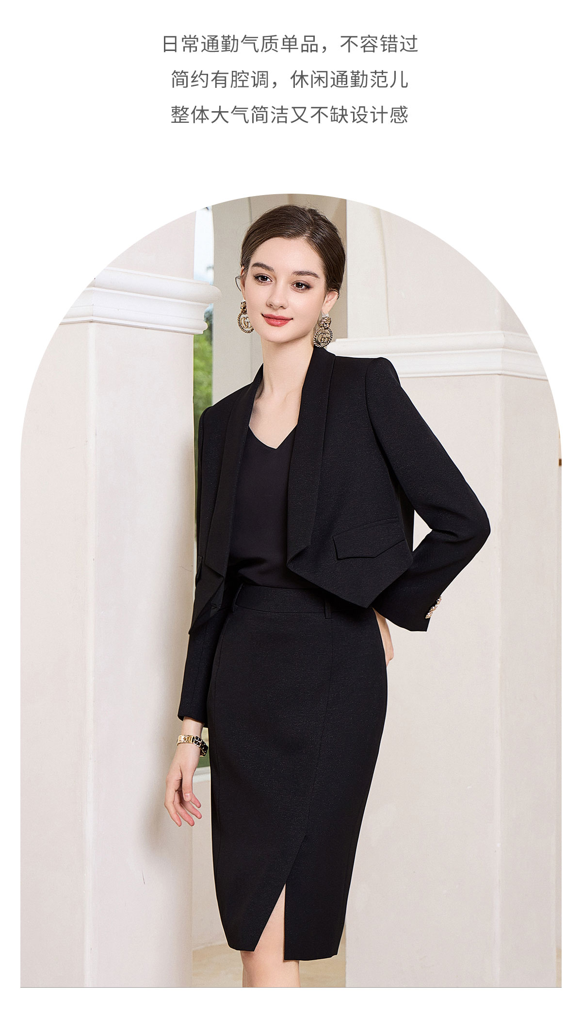 AD高端名媛气质女神范套装女2023新款黑色西装套裙职场轻熟范女装