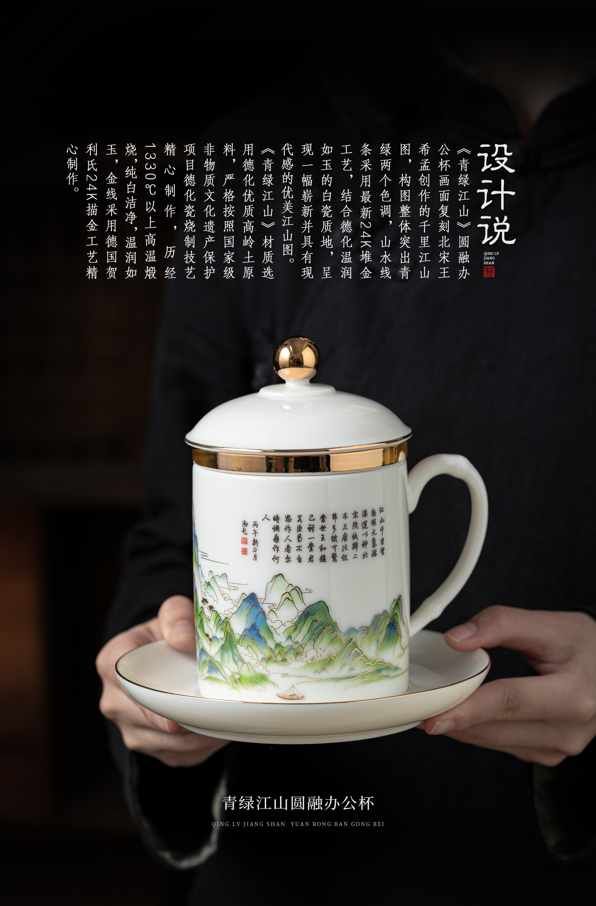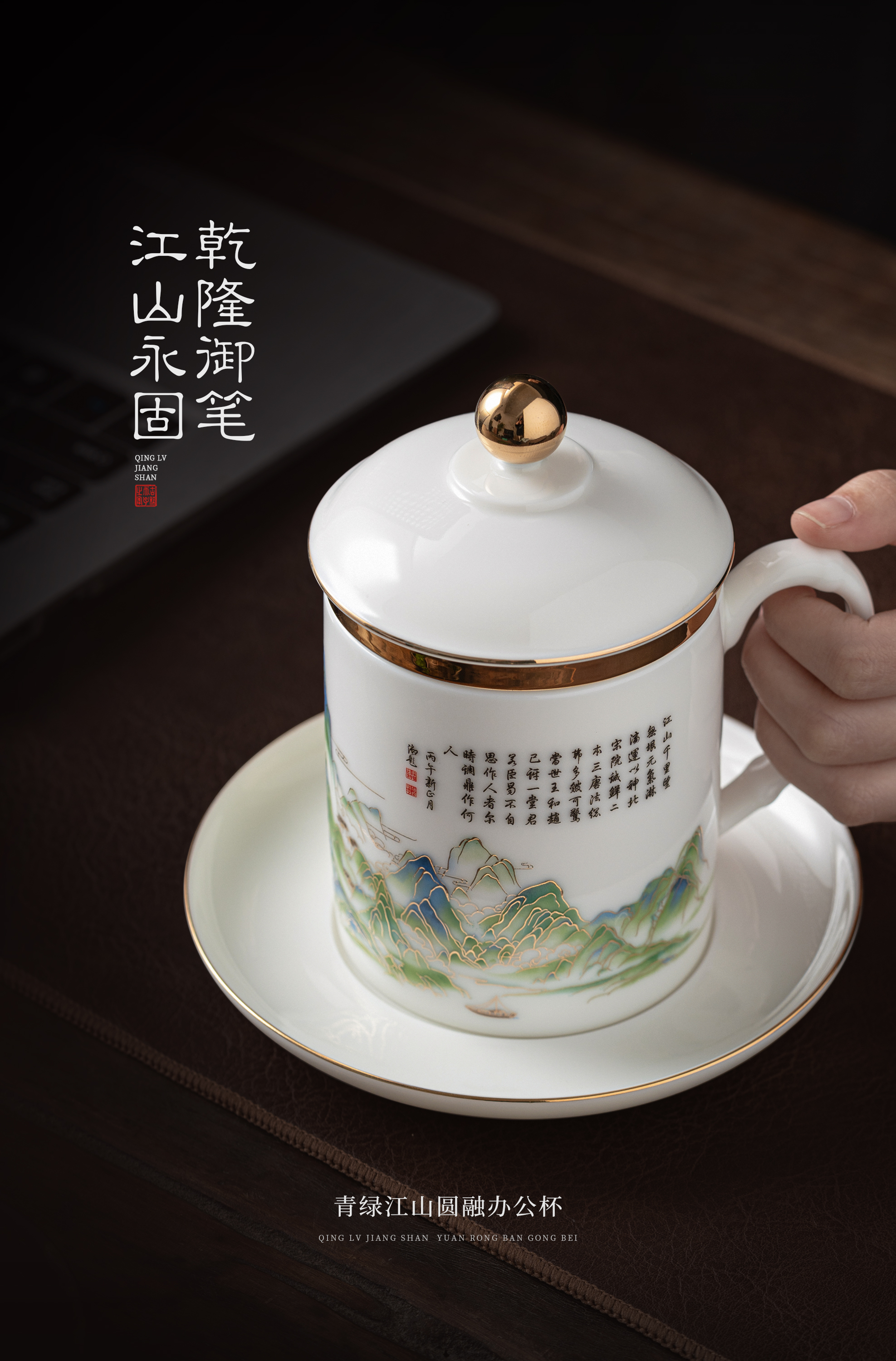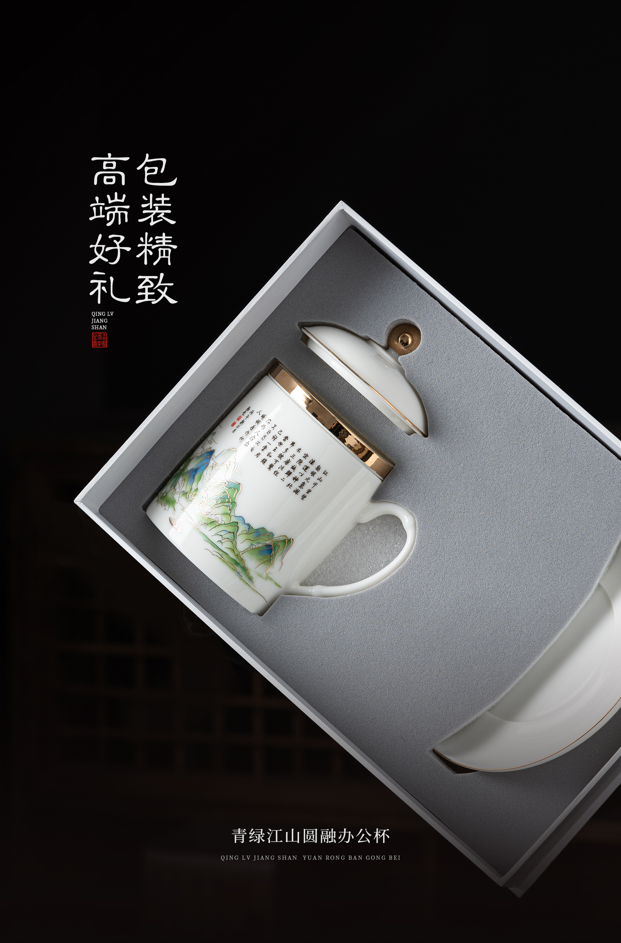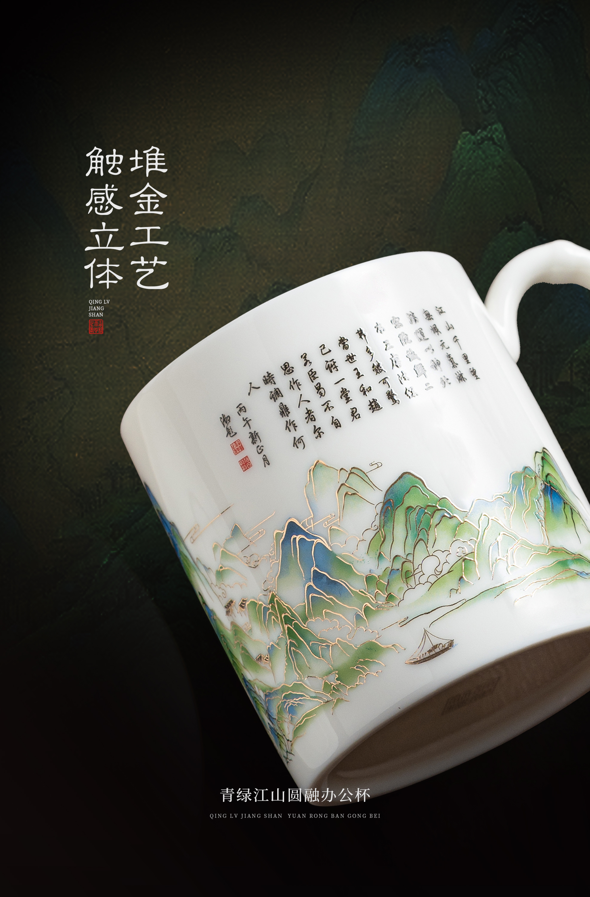 【青绿江山】圆融办公杯四件套,堆金工艺 触感立体,徐建勇老师签章,包装精致 高端好礼