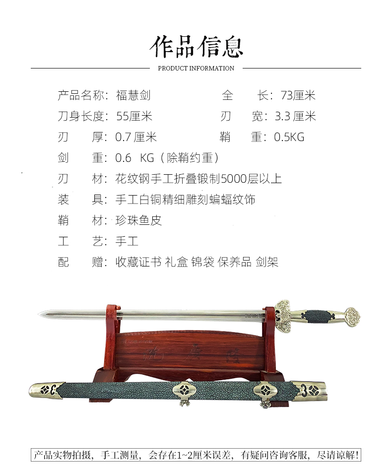 福慧剑 龙泉沈广隆传统刀剑 沈广隆宝剑 手工刀剑 花纹钢 未开刃