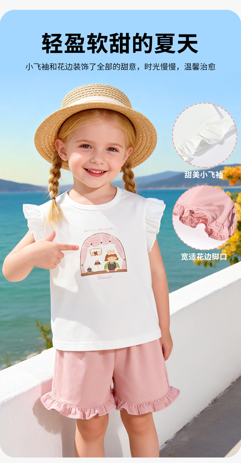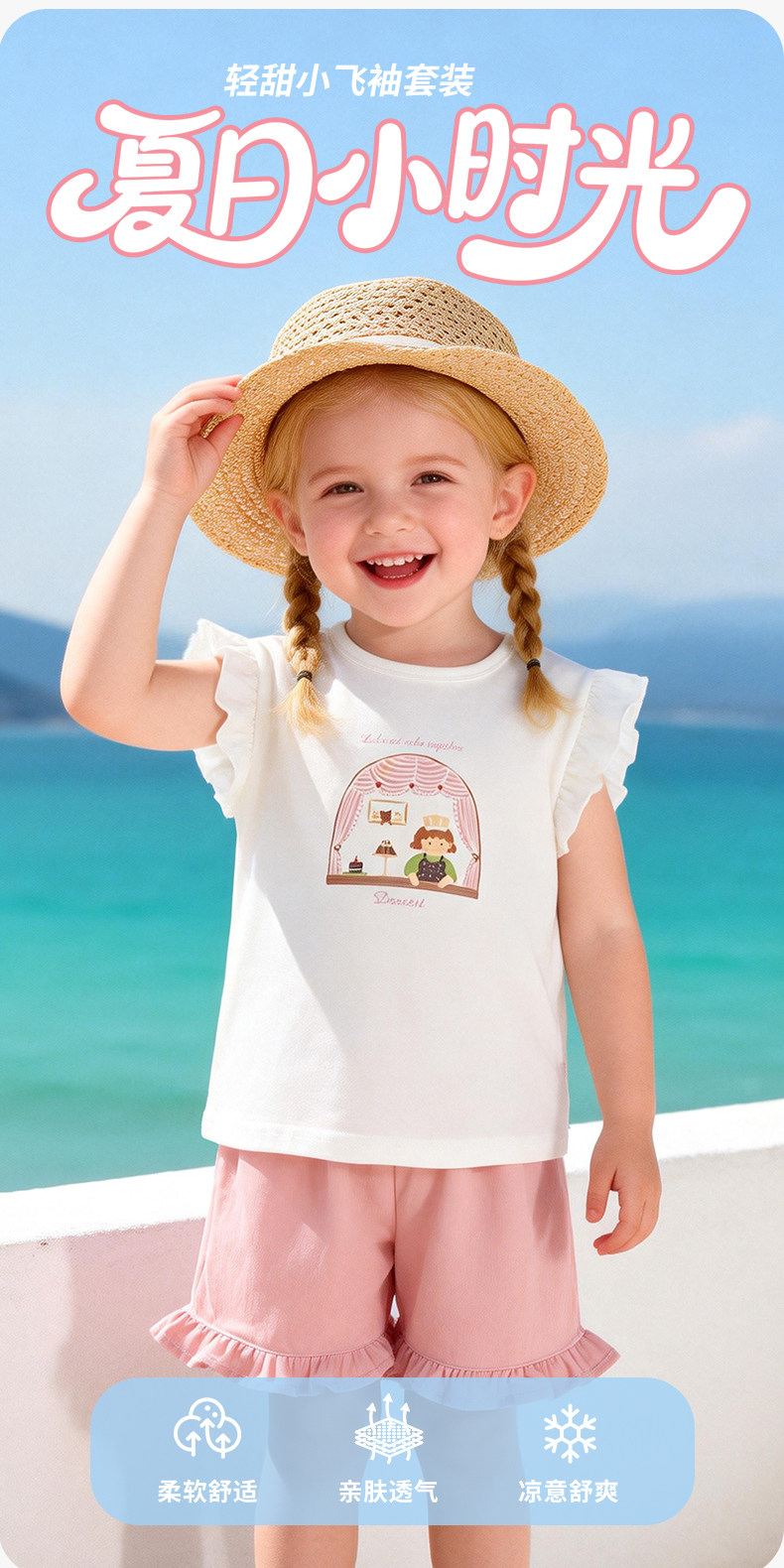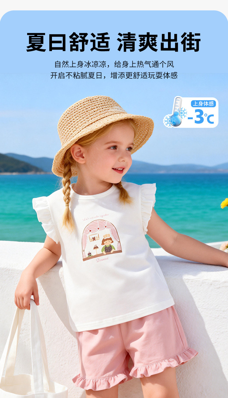 贝贝怡小飞袖凉感套装夏季新款女童轻薄透气短袖T恤短裤两件套ZB2FT025