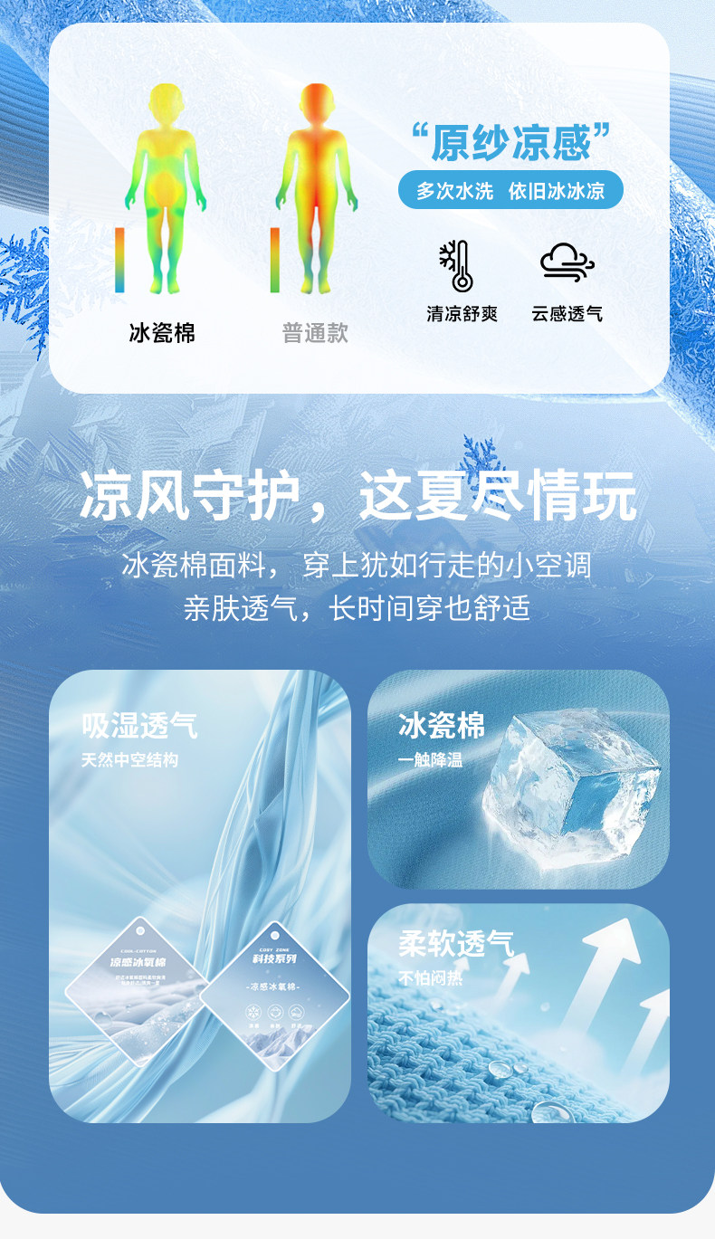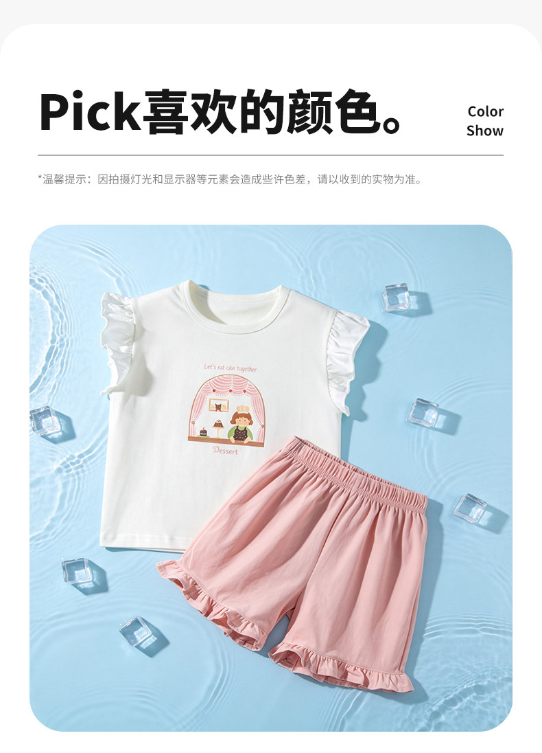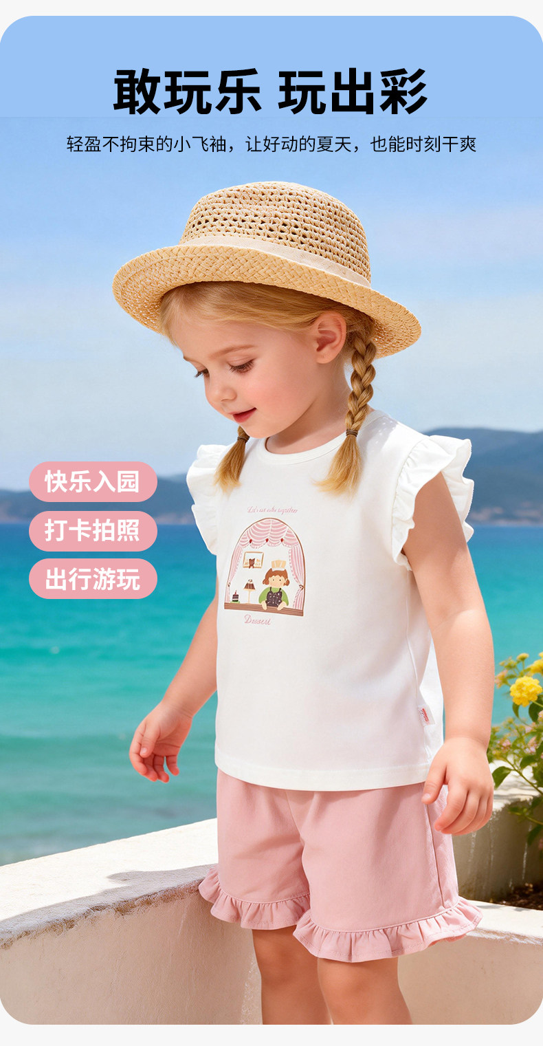 贝贝怡小飞袖凉感套装夏季新款女童轻薄透气短袖T恤短裤两件套ZB2FT025