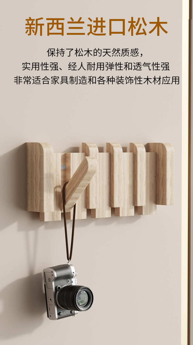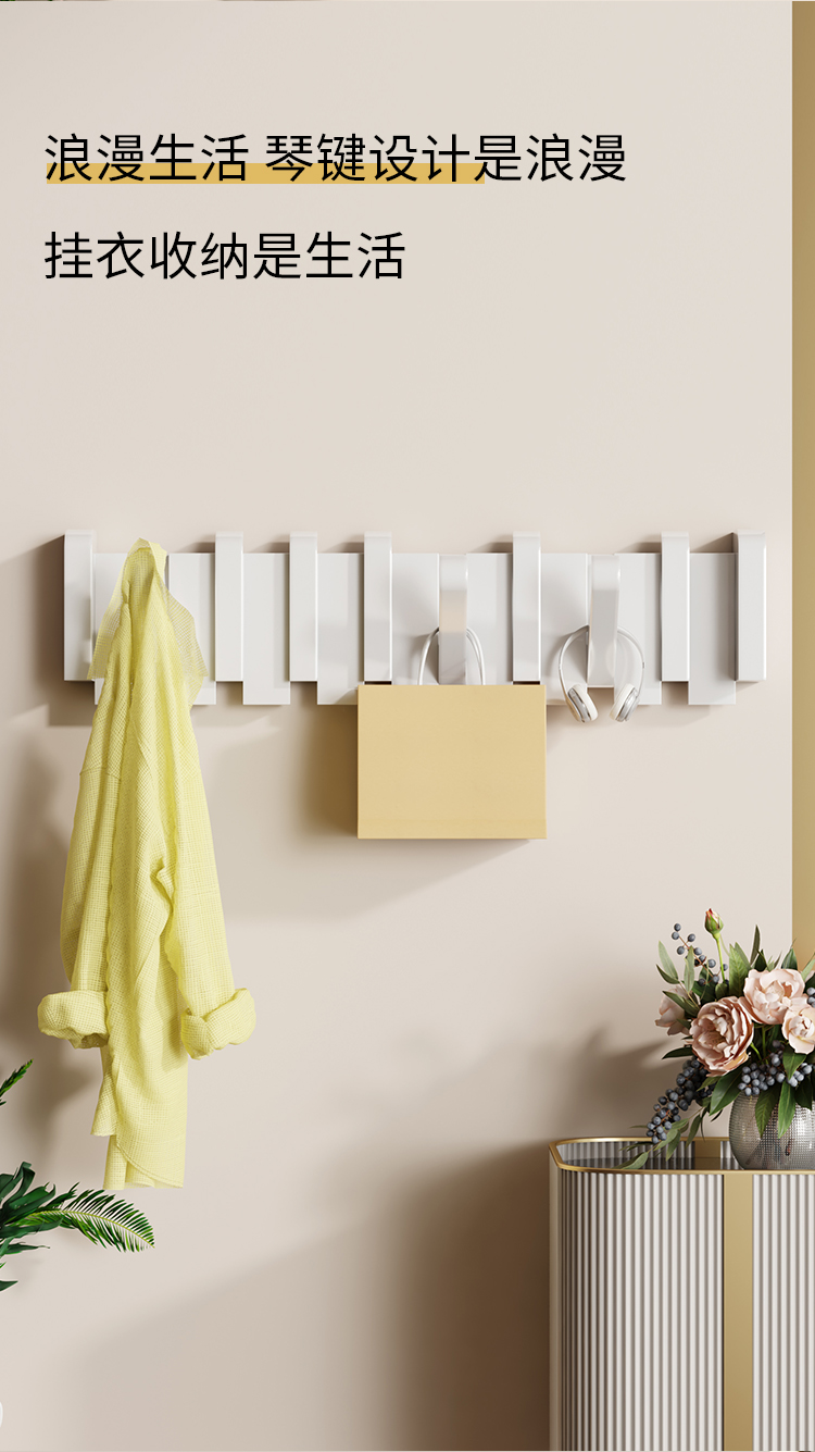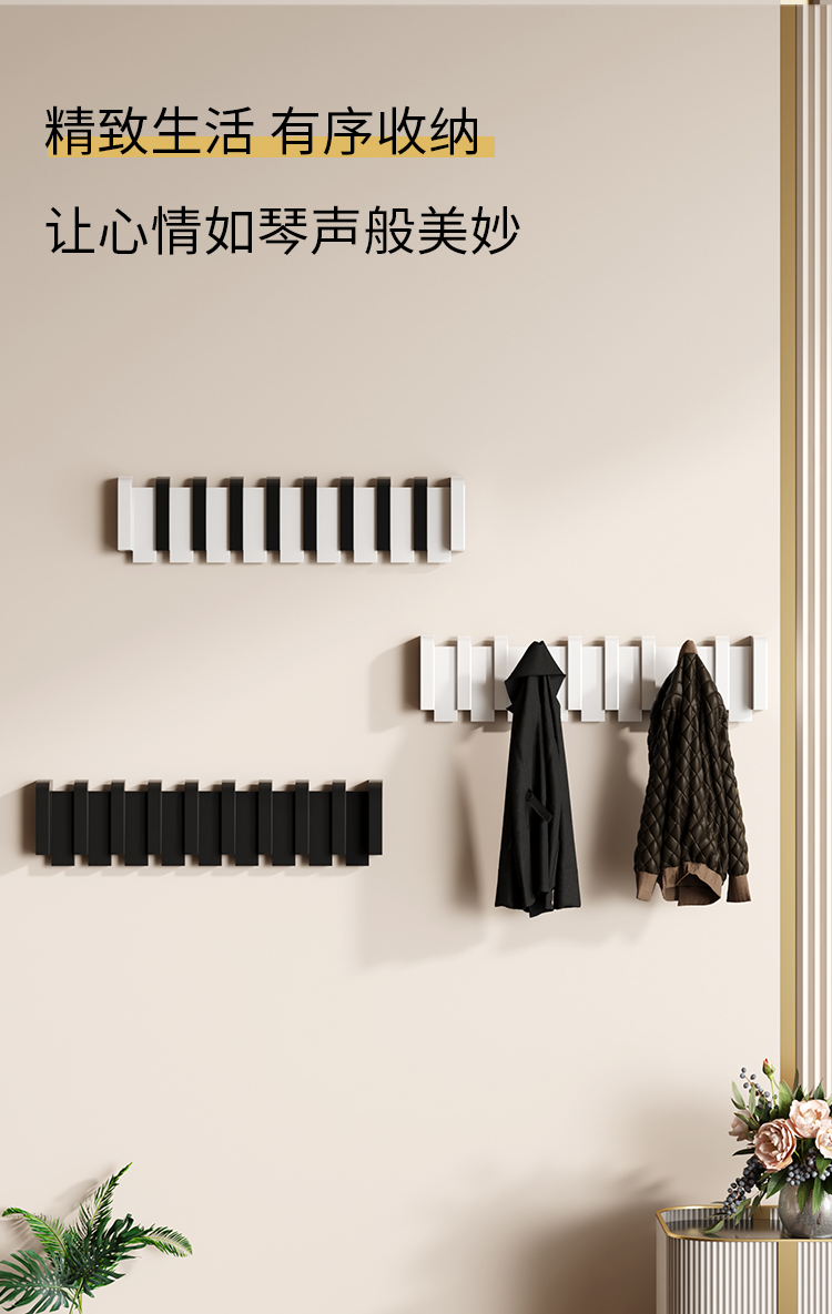 挂衣架客厅壁挂实木进门挂衣钩玄关衣服挂钩打孔创意琴键衣帽架