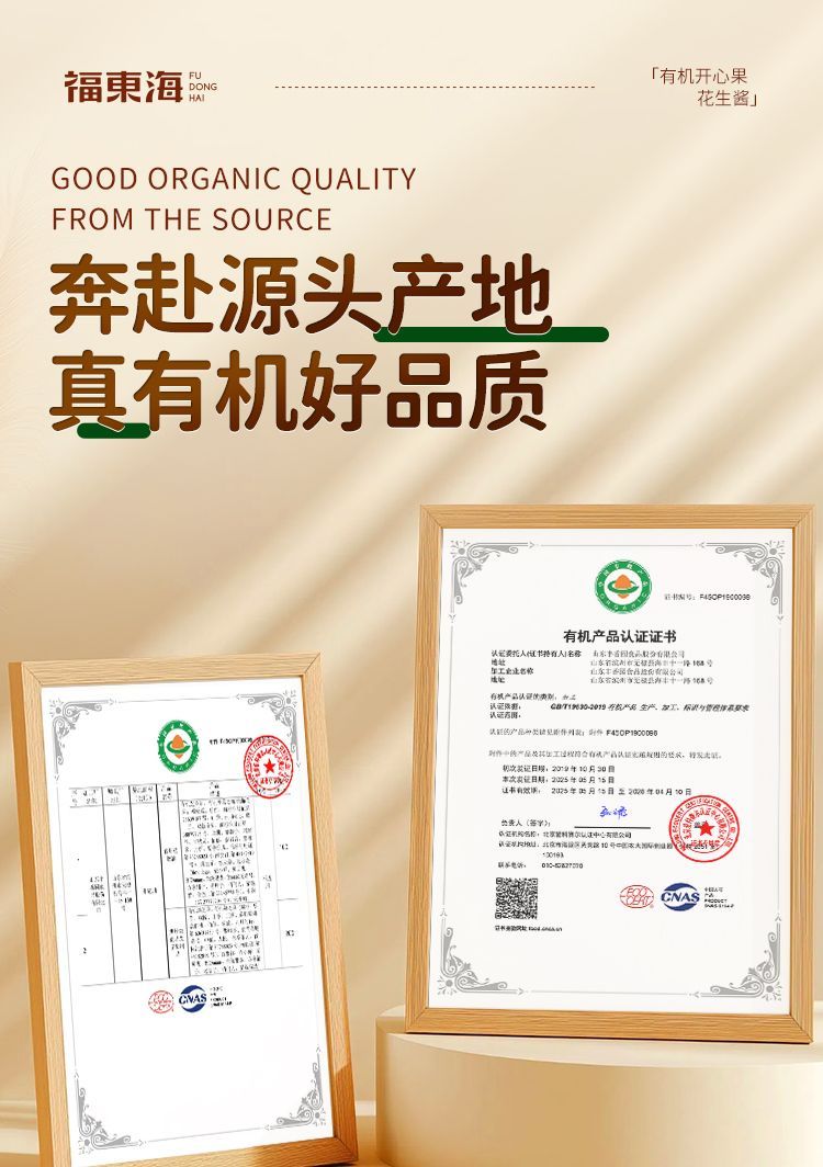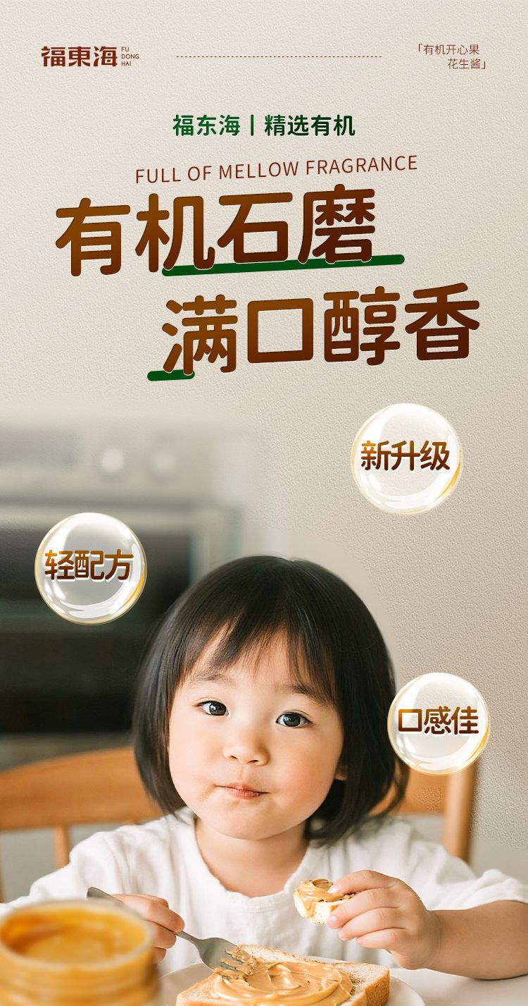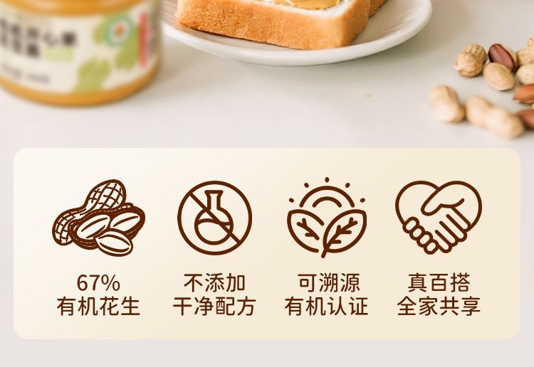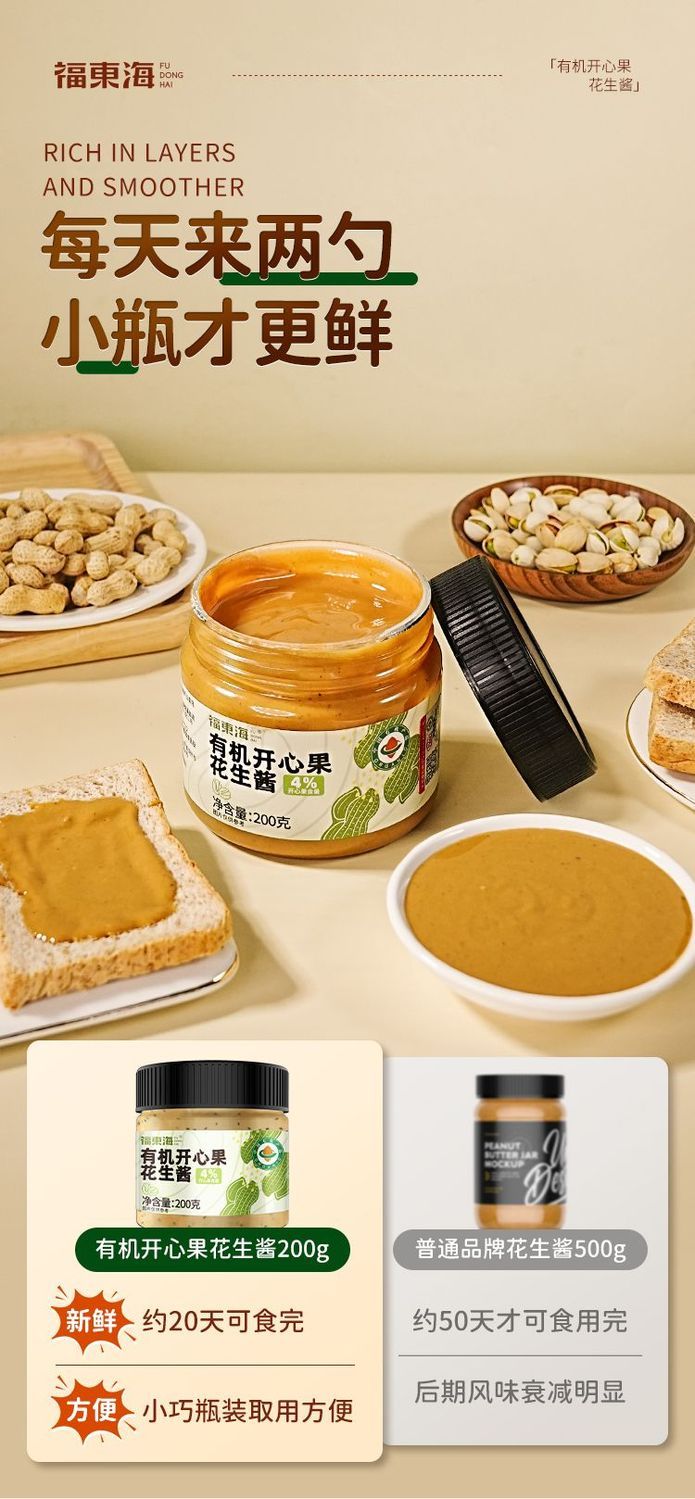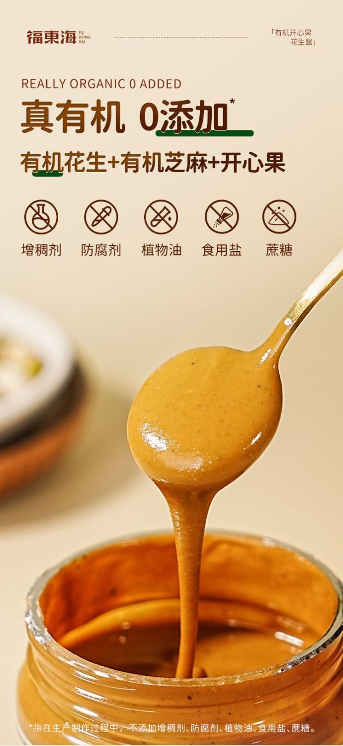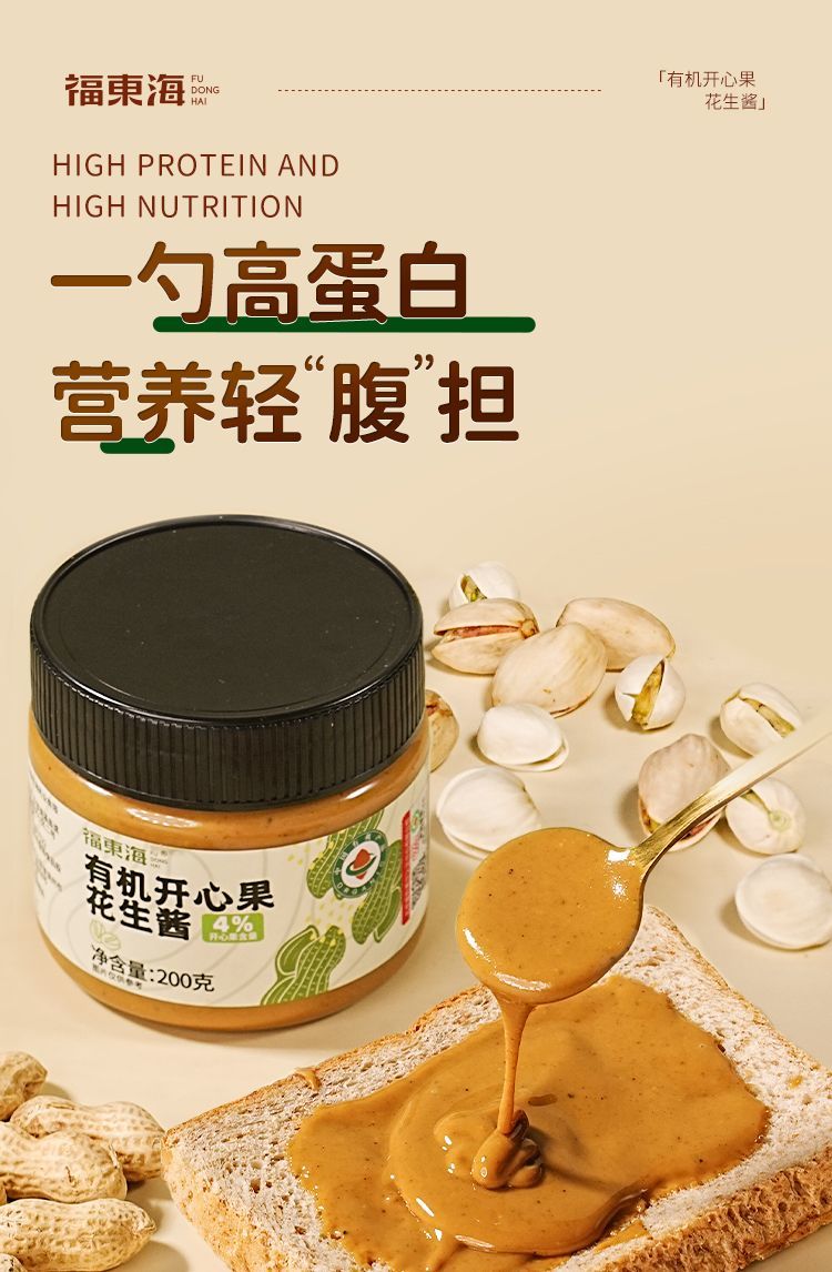 福东海有机开心果花生酱200g 拌面饭涂面包