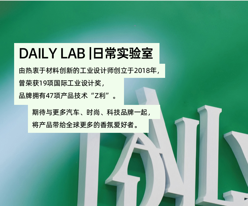 - DAILY LAB|日常实验室,立足东方美学,是专注于「香气可视化」的轻奢空气交互品牌。