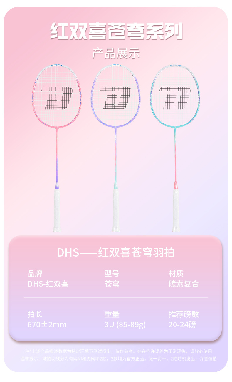 红双喜羽毛球双拍 耐用型耐打高颜值儿童小学生单拍成人男女套装
