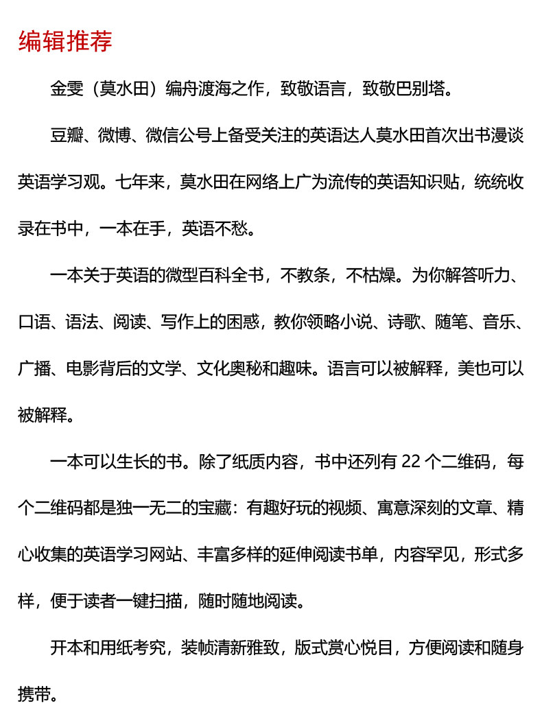 被解释的美 英语的方法和趣味 莫水田金雯漫谈英语语言文学随笔 致敬巴别塔