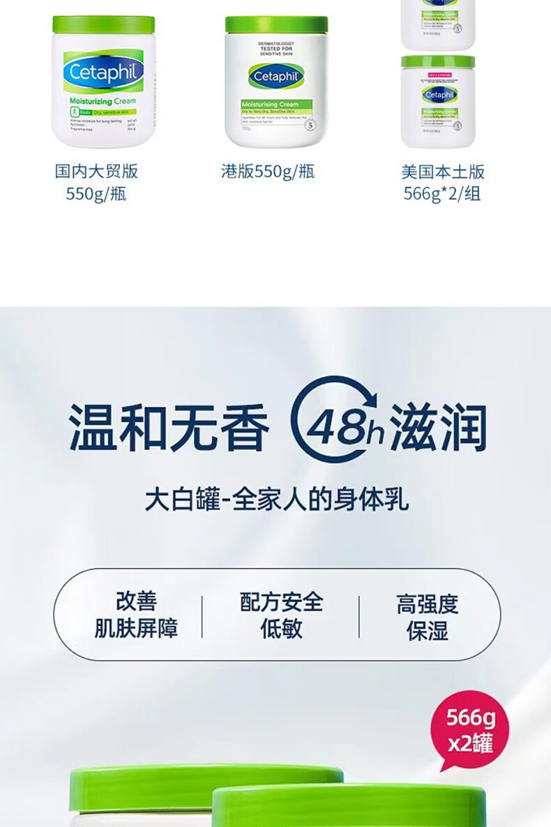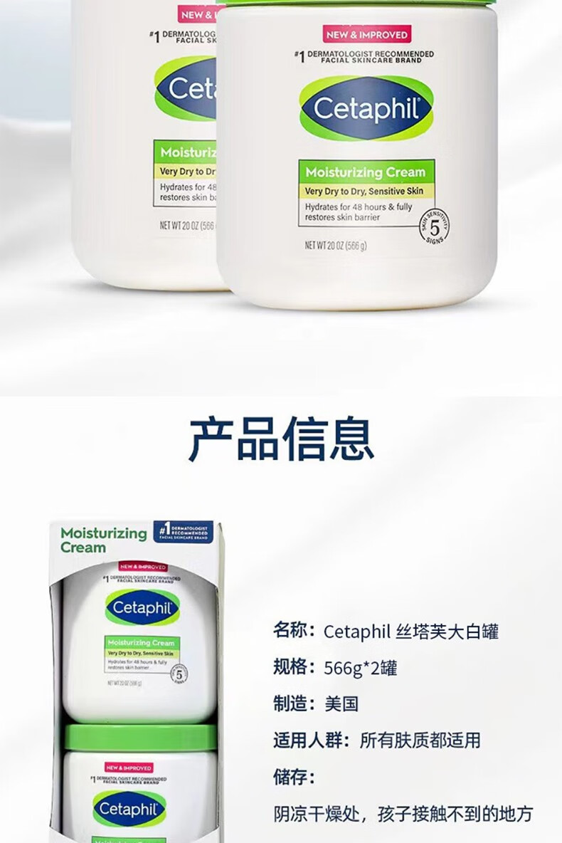 【保税仓】美国 Cetaphil 丝塔芙面霜大白罐保湿滋润两瓶装(566g+453g)套