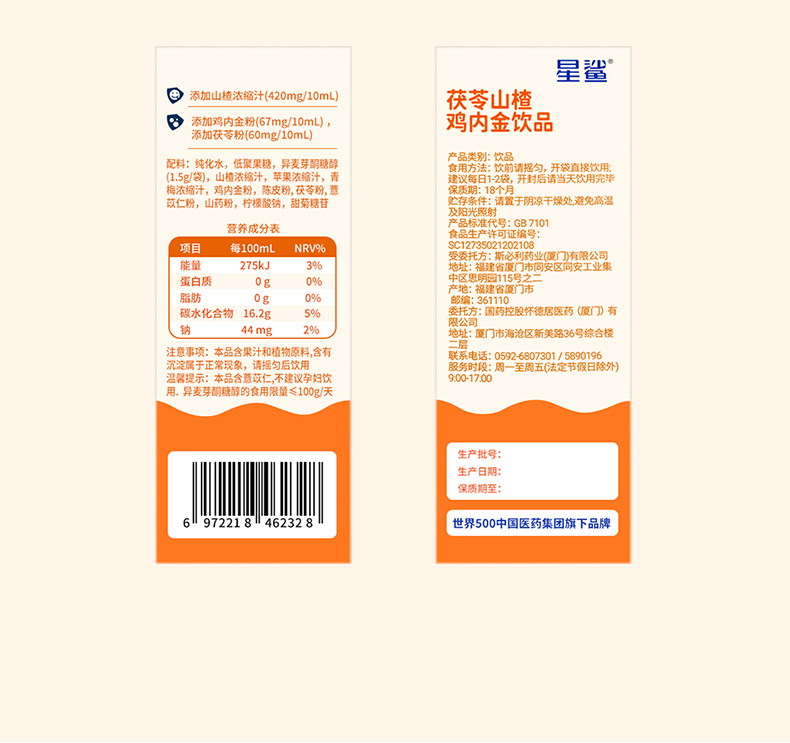 星鲨 茯苓山楂鸡内金饮品20支 儿童固体饮料