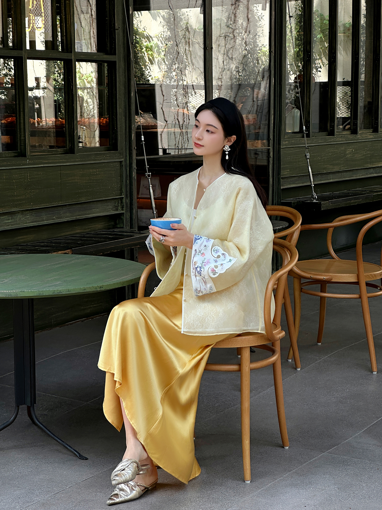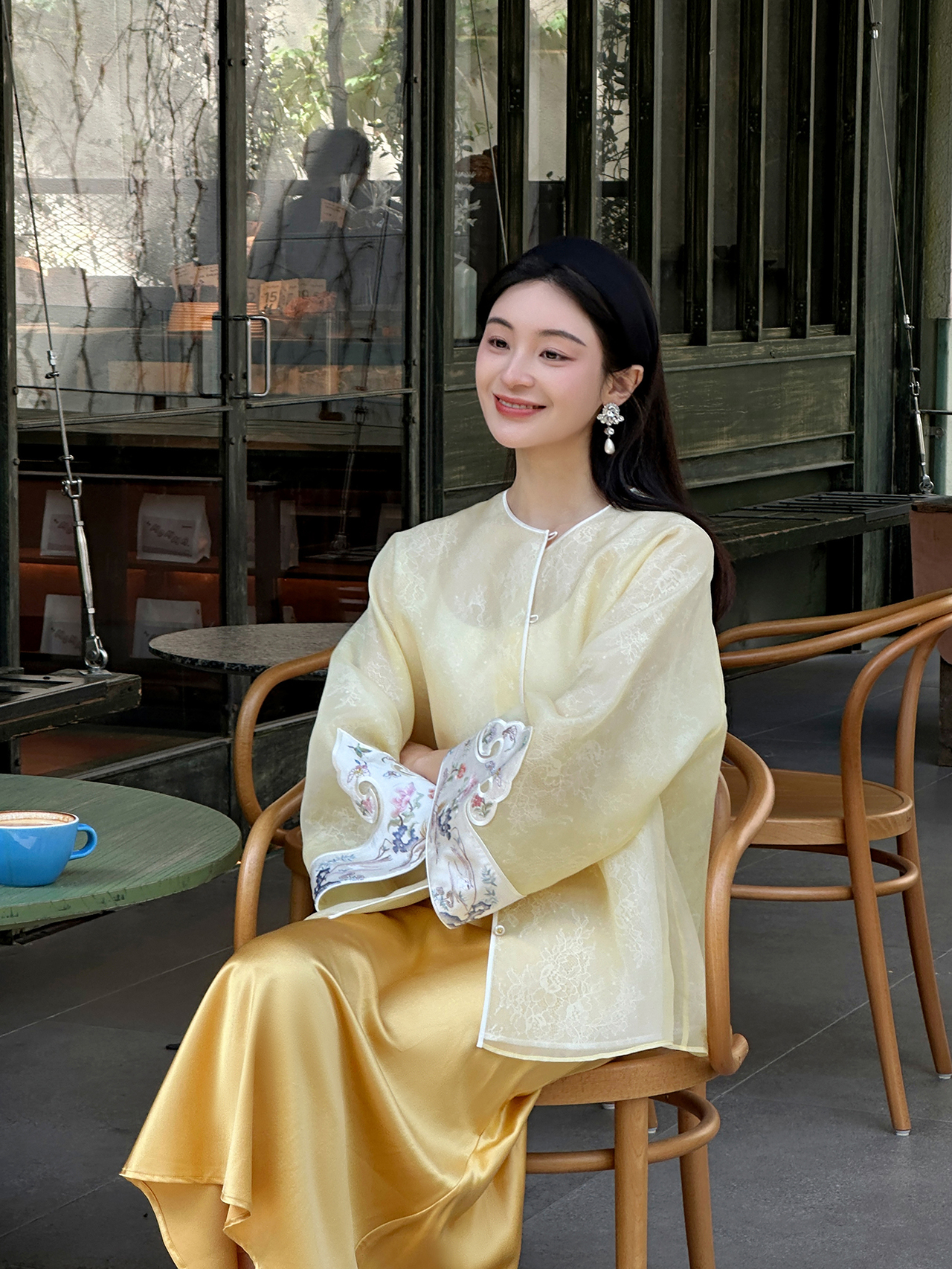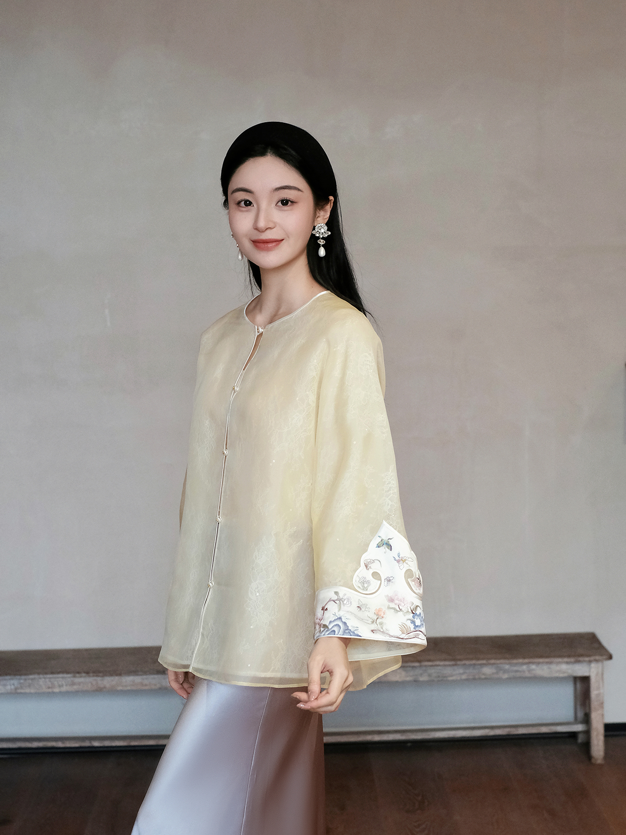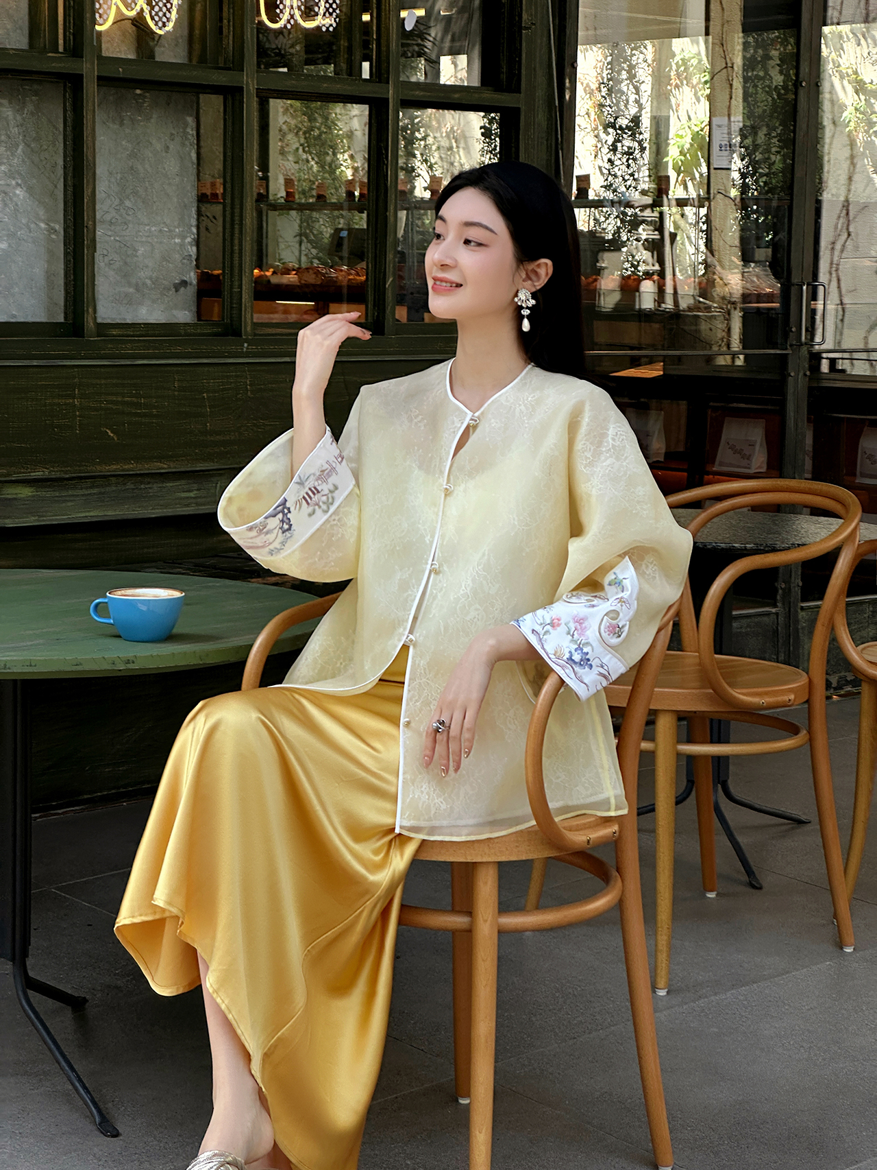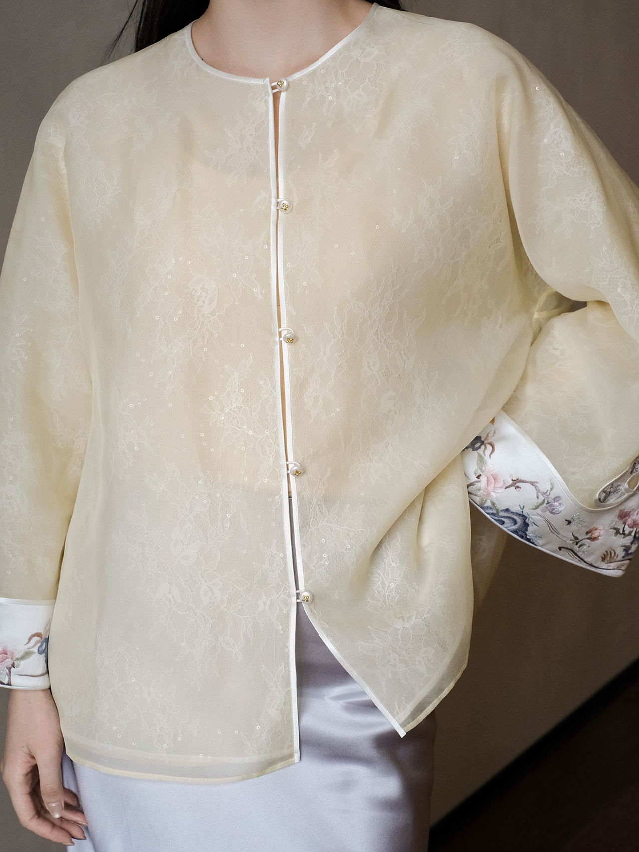 盛唐牡丹大师系列-卢梅红 | 鹅黄色真丝手绣外套(盛唐牡丹与非遗传承人卢梅红联名系列)