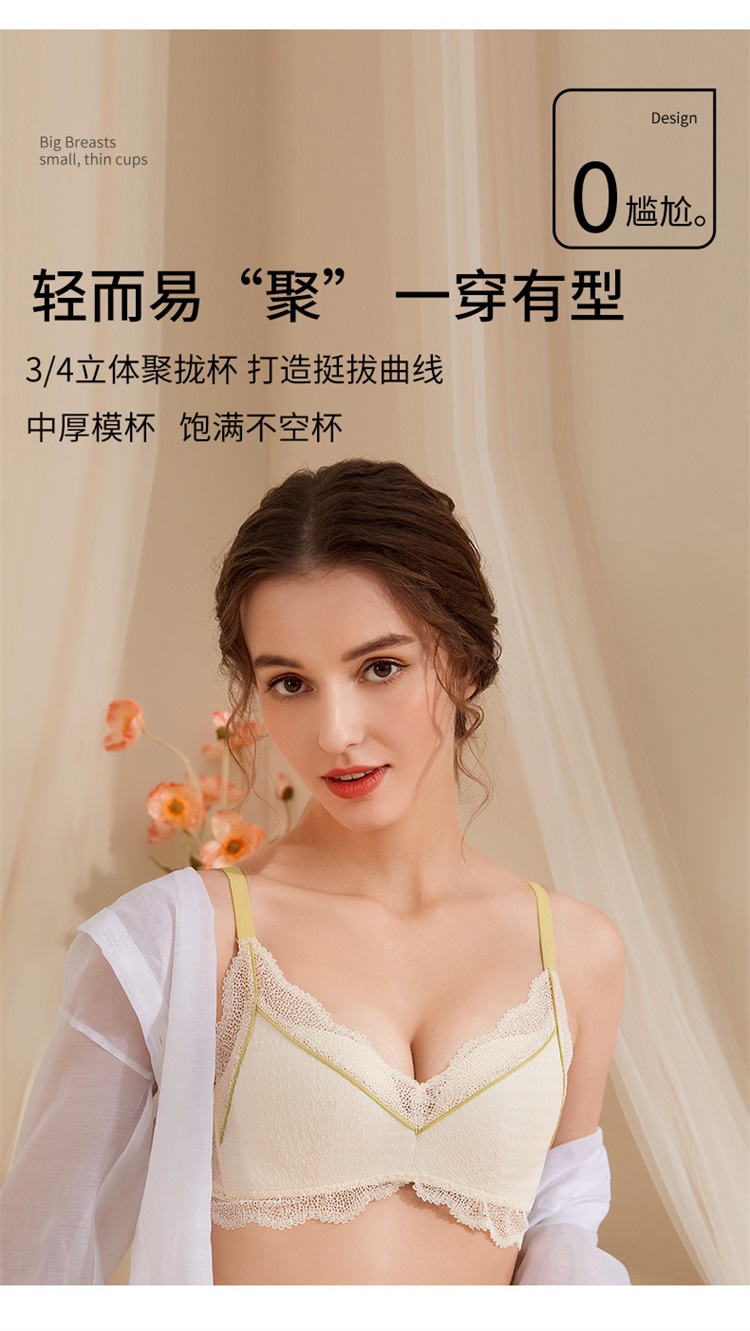 雅黛丽内衣女小胸聚拢蕾丝性感美背文胸无钢圈撞色调整型女士胸罩