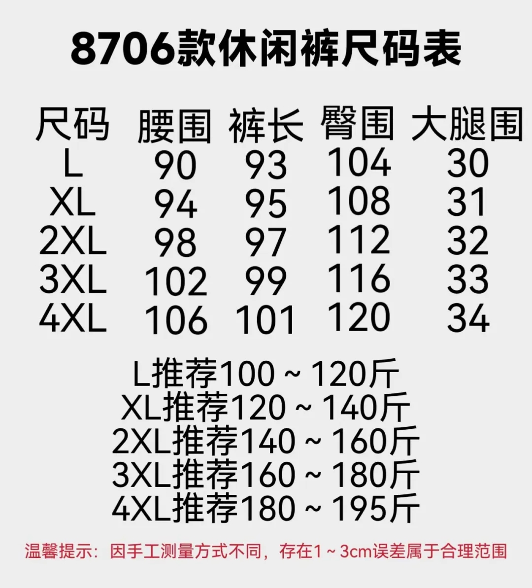 尺码:L-4XL