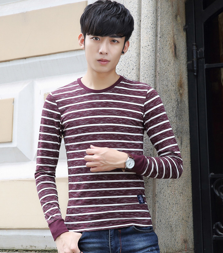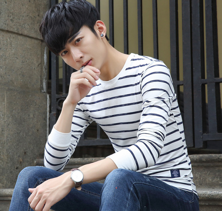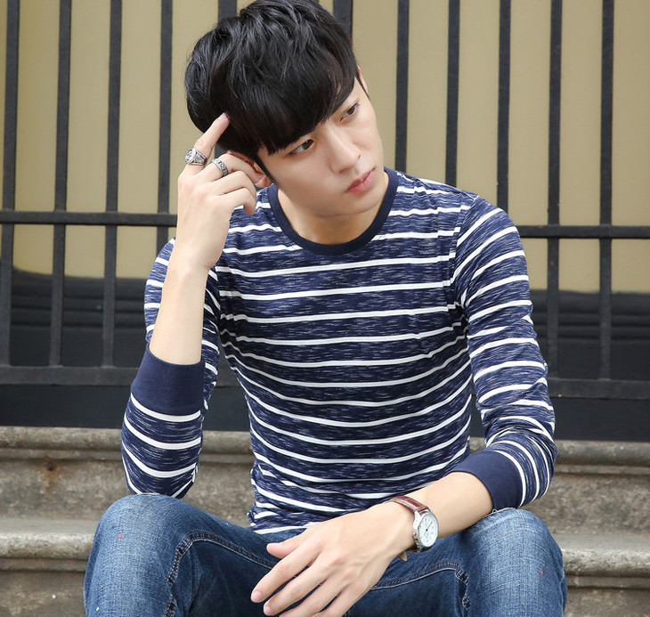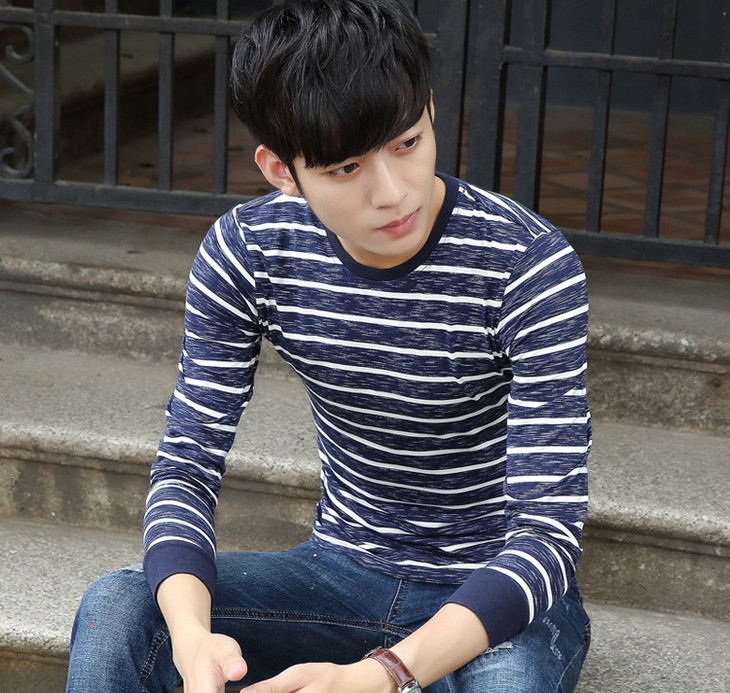 【服饰鞋包】男士长袖T恤 新款潮流时尚修身经典百搭气质透气条纹T恤男