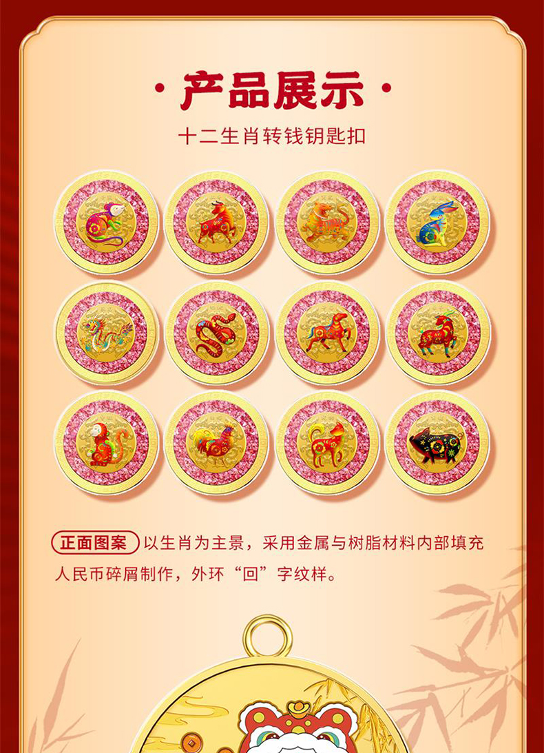 【南昌印钞】十二生肖碎钞钥匙扣·可旋转