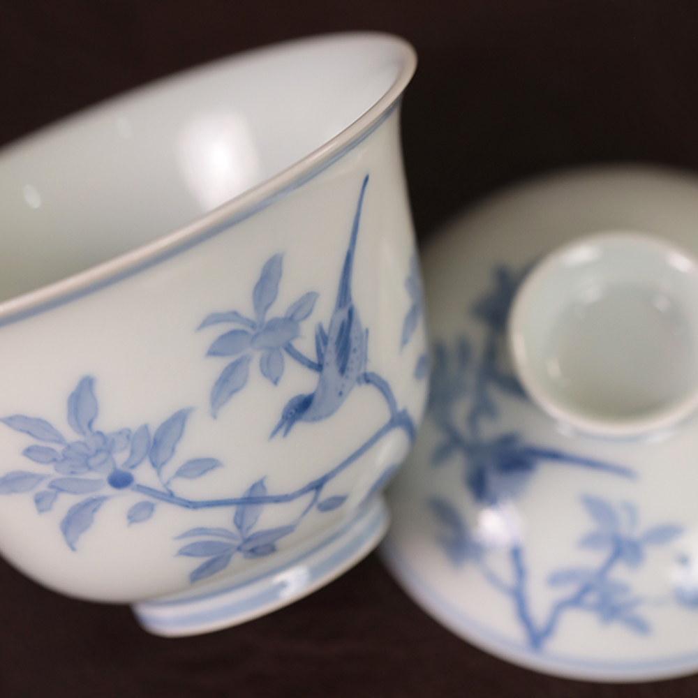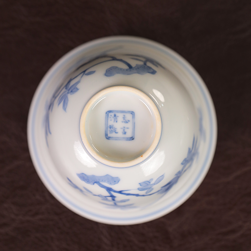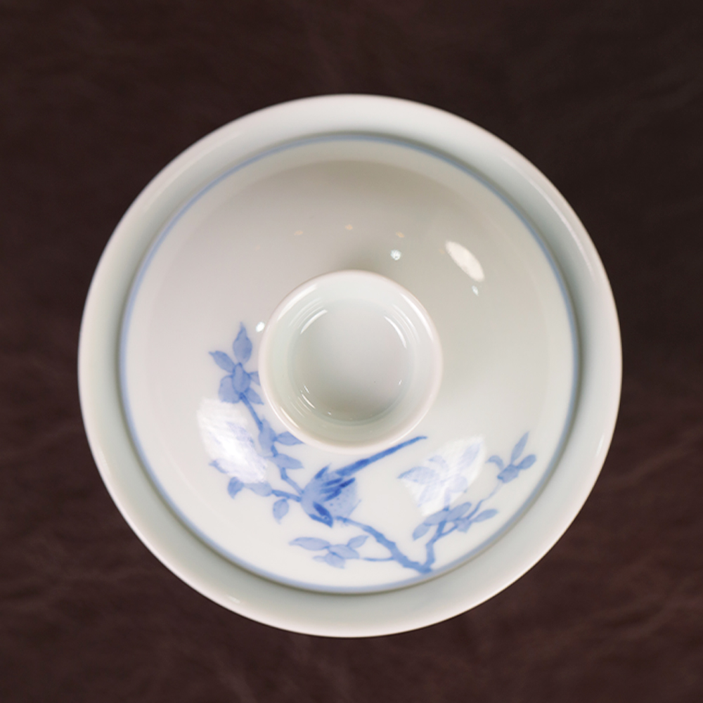 【忘言】拟雍正仿成化青花淡描茶碗 盖碗 曰何文人器