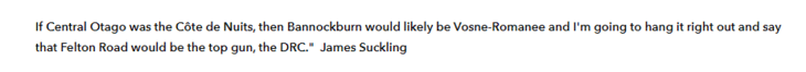 James Suckling更曾激情开麦,大赞Felton Road是“新西兰的康帝DRC。(原话如下)