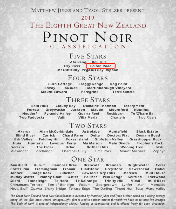 如此之下,新西兰鼎级黑皮诺现也是一瓶难求。譬如今天的Felton Road——常年霸榜头条的新西兰黑皮诺膜拜庄,更是年年难抢。