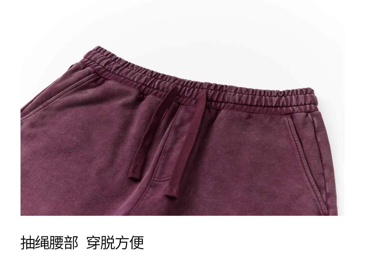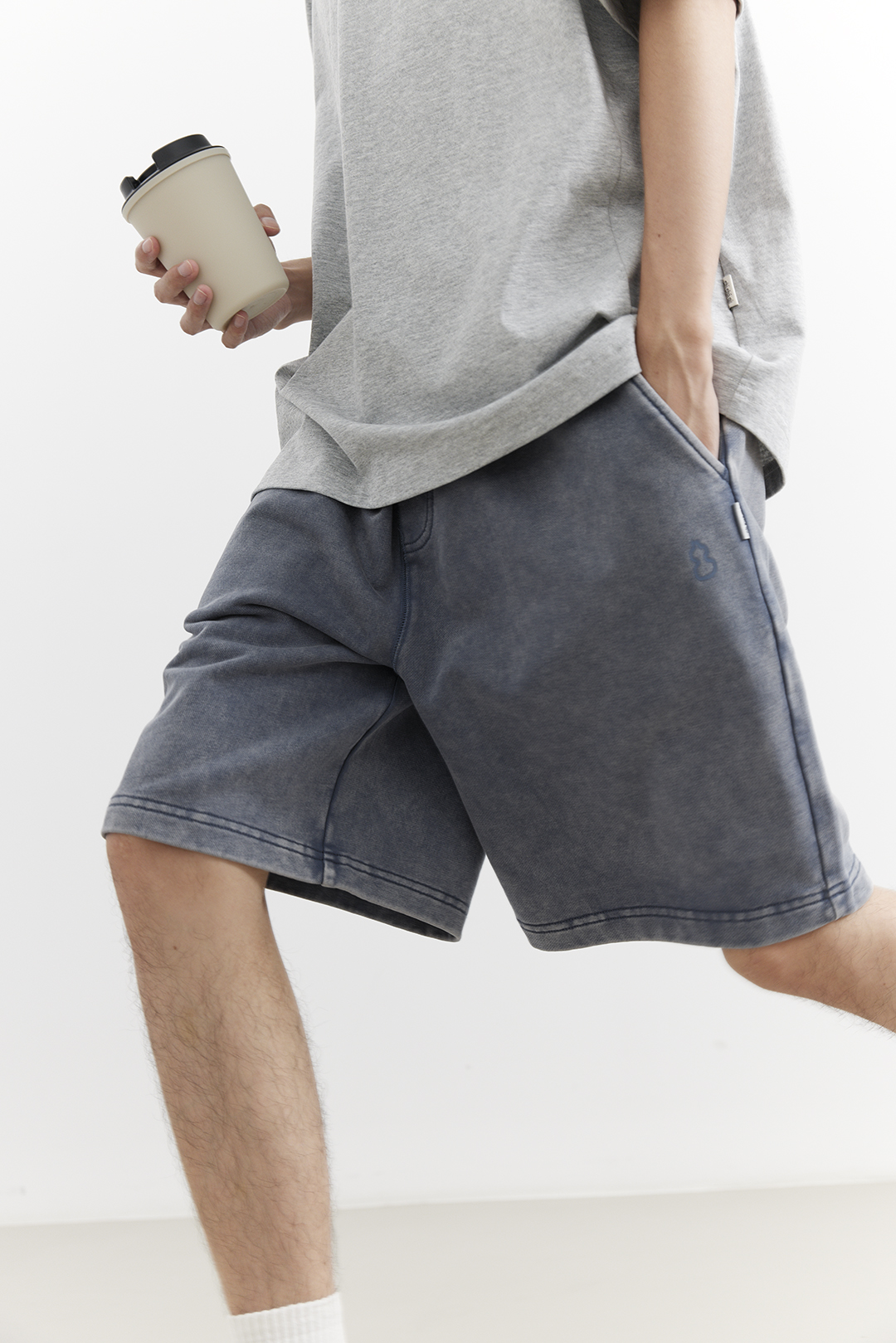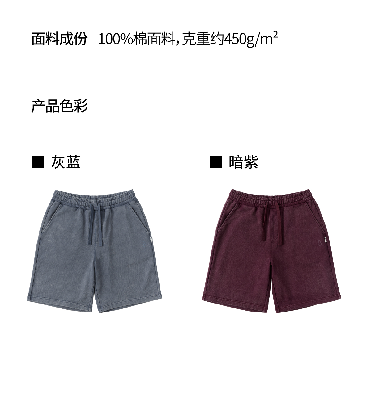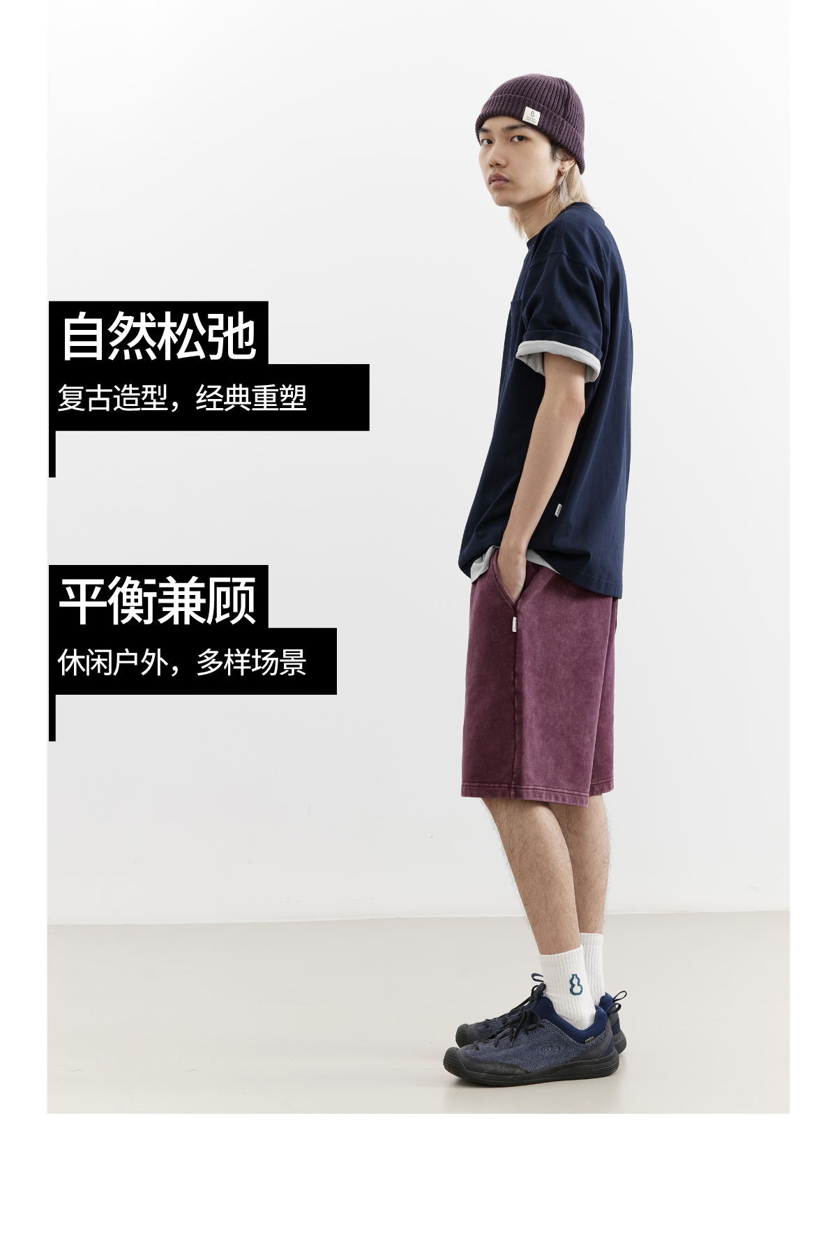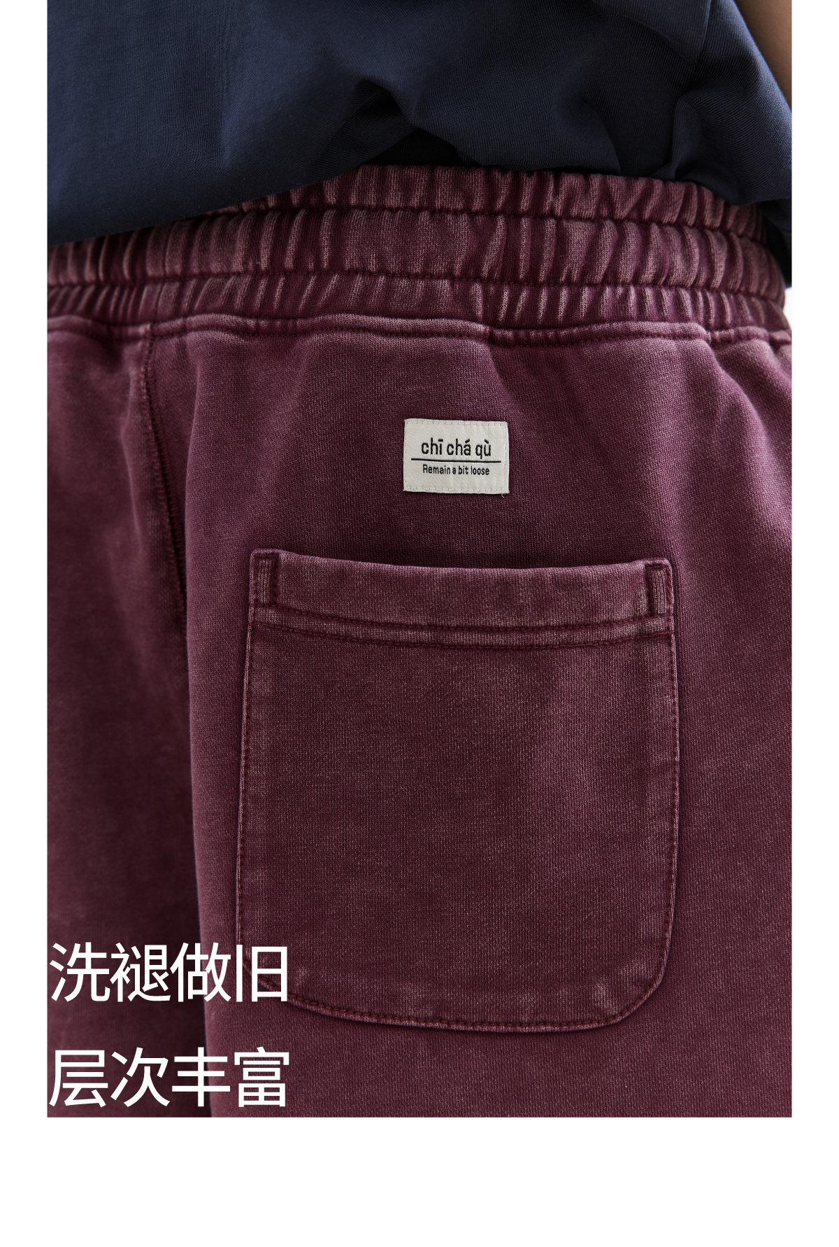吃茶去chichaqu25全棉重磅洗水做旧短卫裤复古宽松街头休闲运动