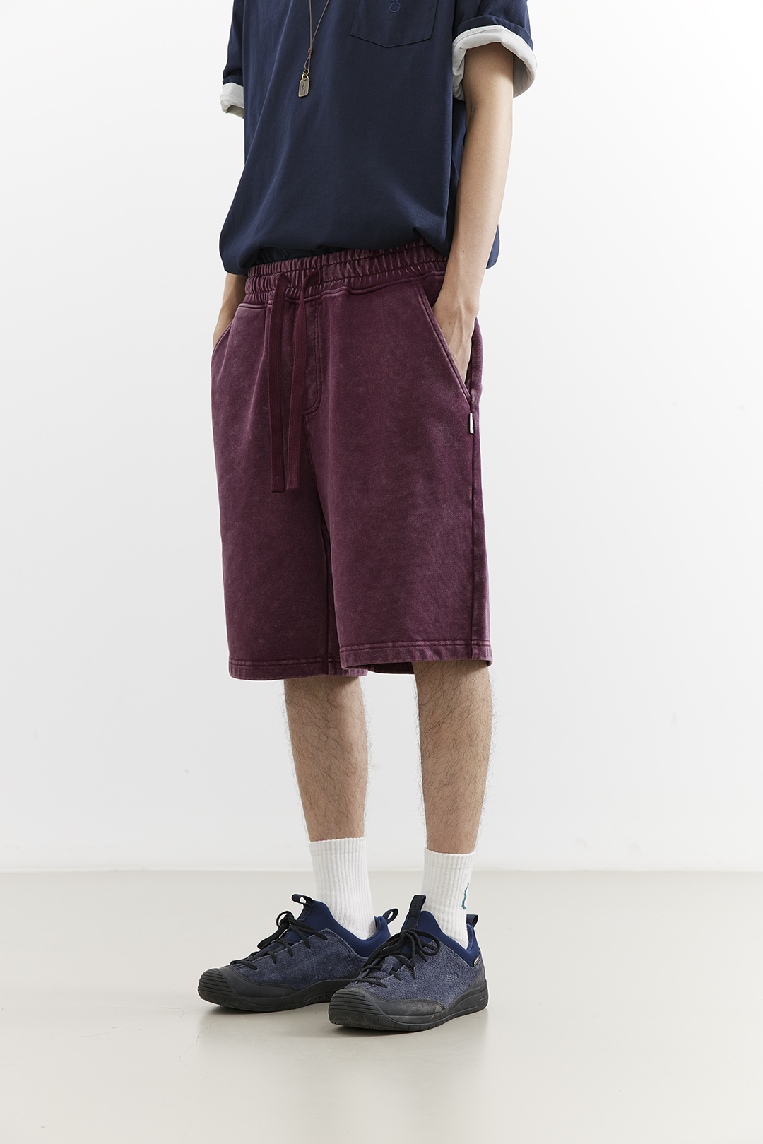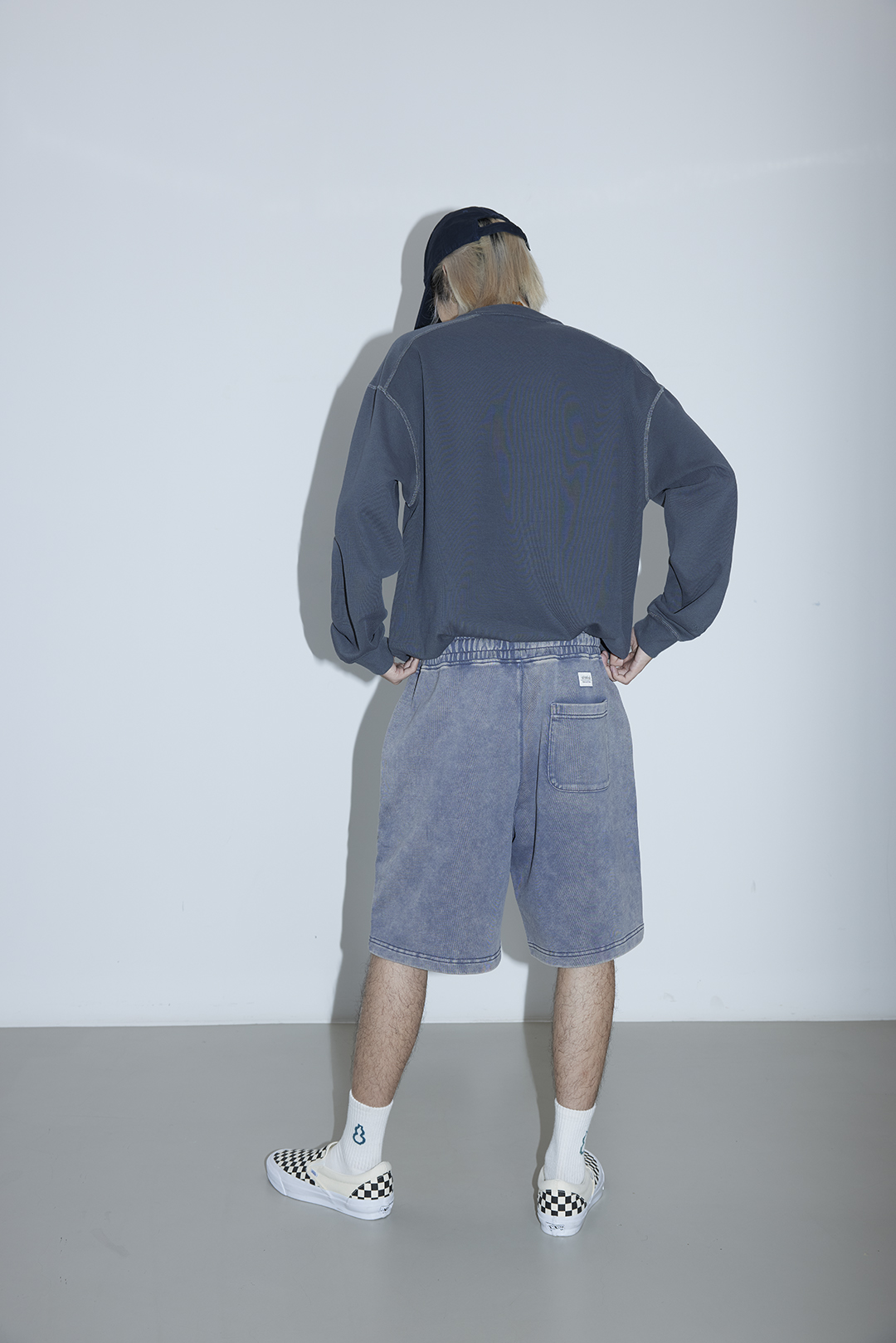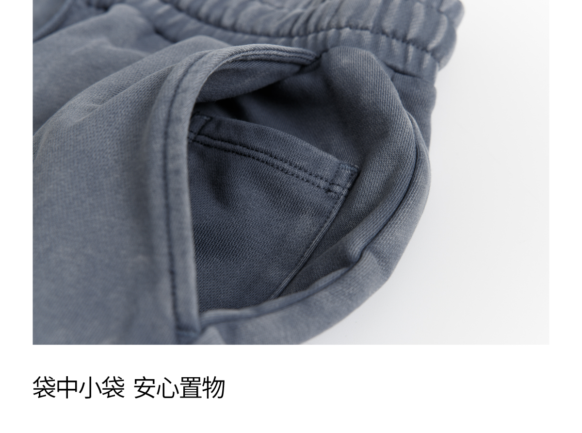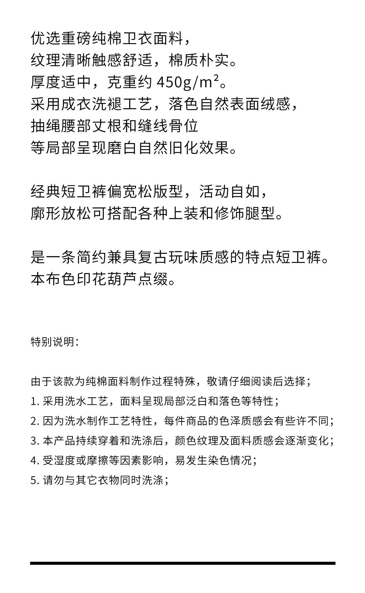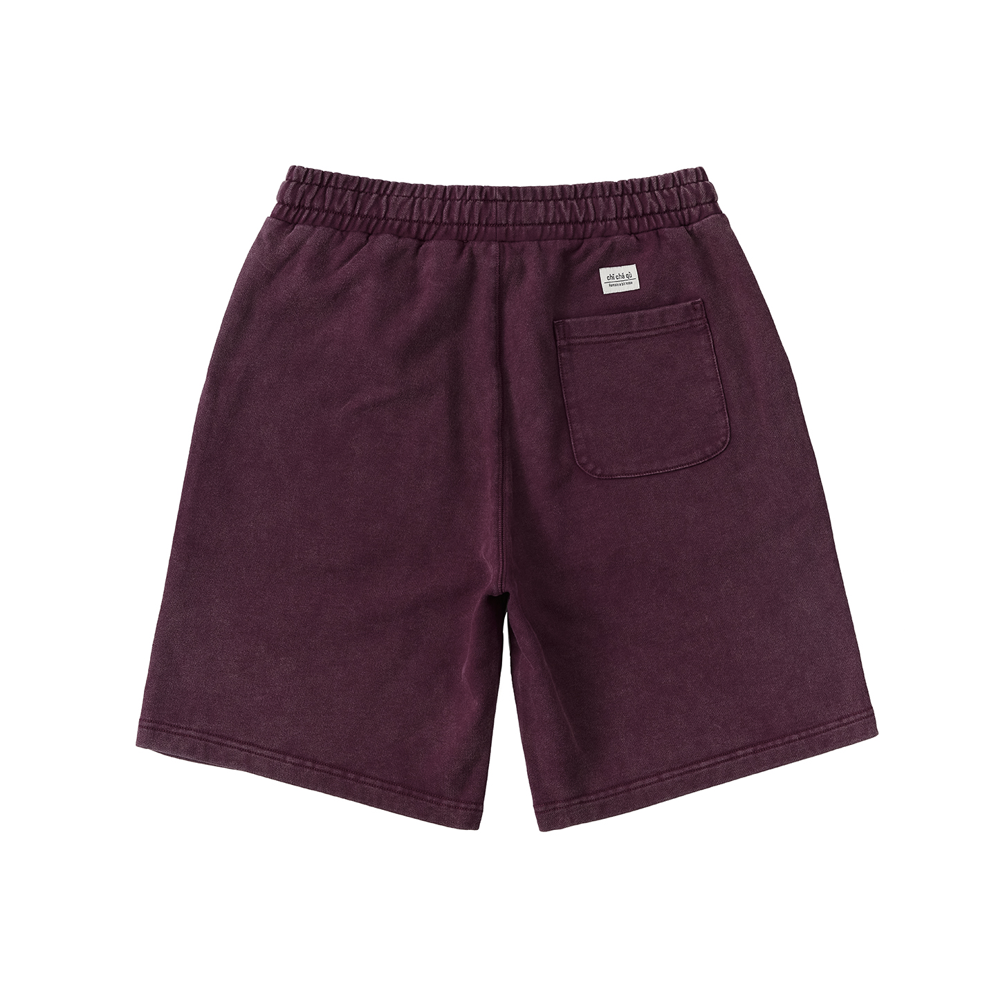 吃茶去chichaqu25全棉重磅洗水做旧短卫裤复古宽松街头休闲运动
