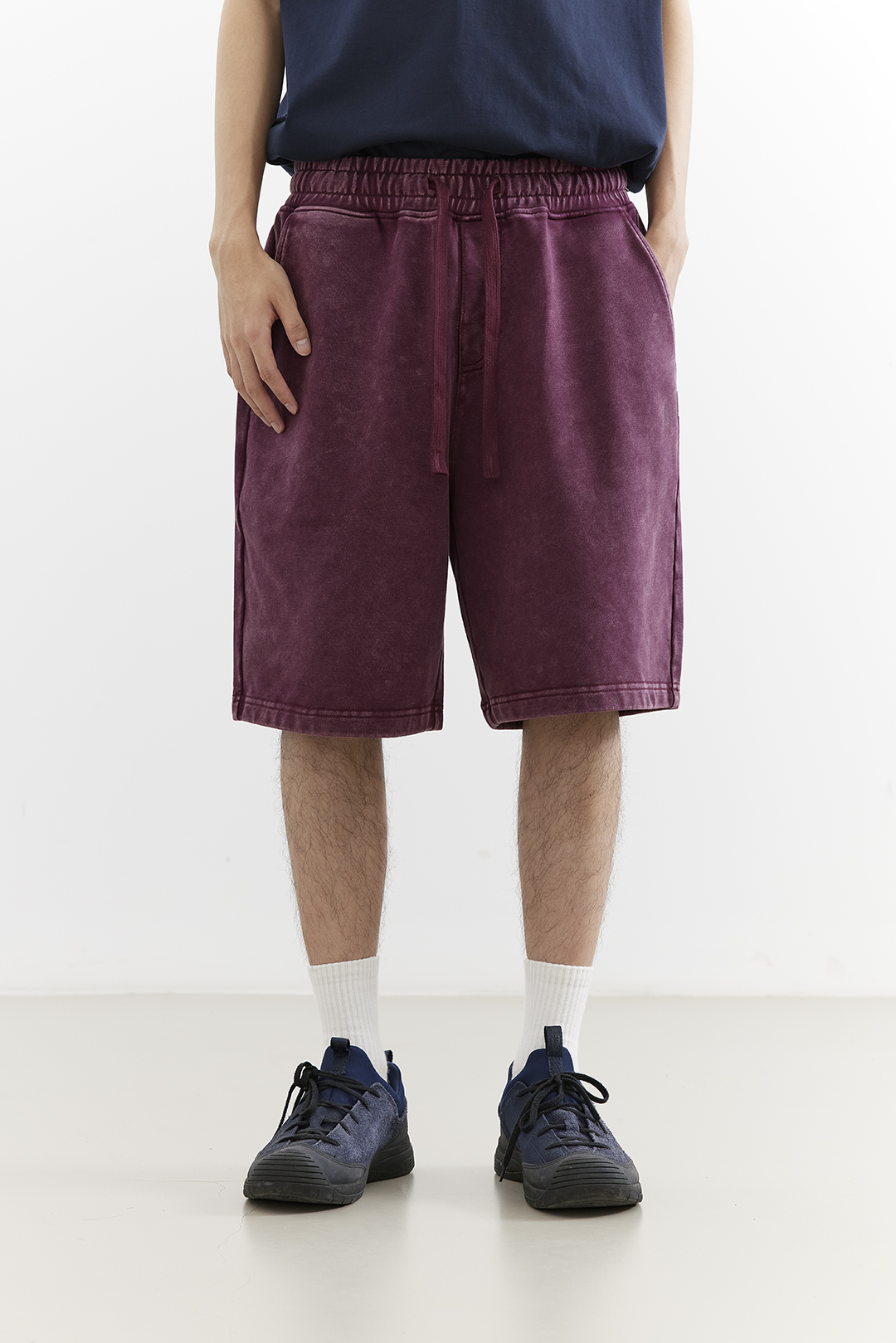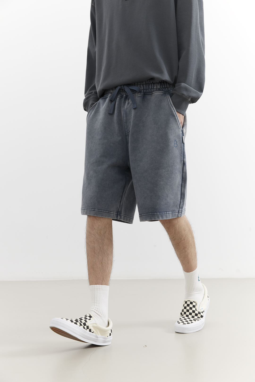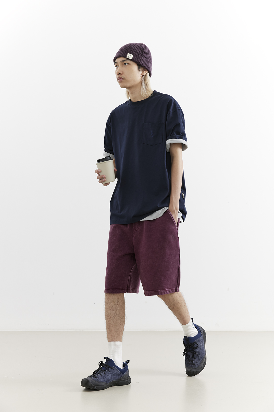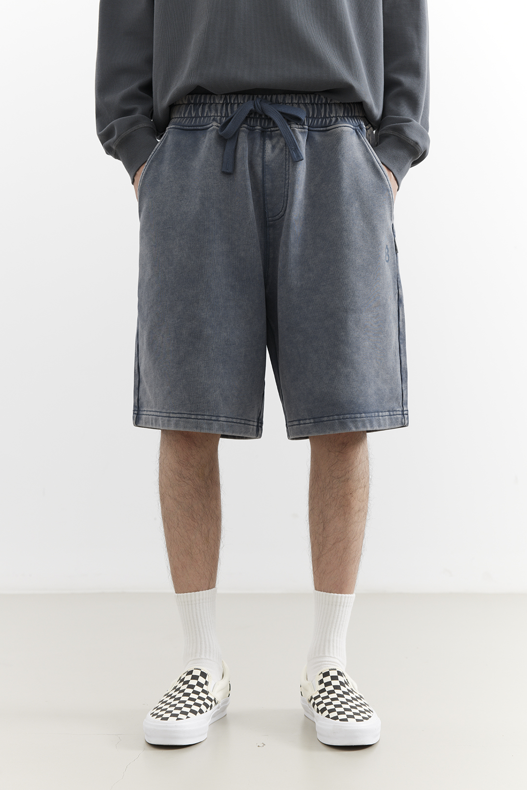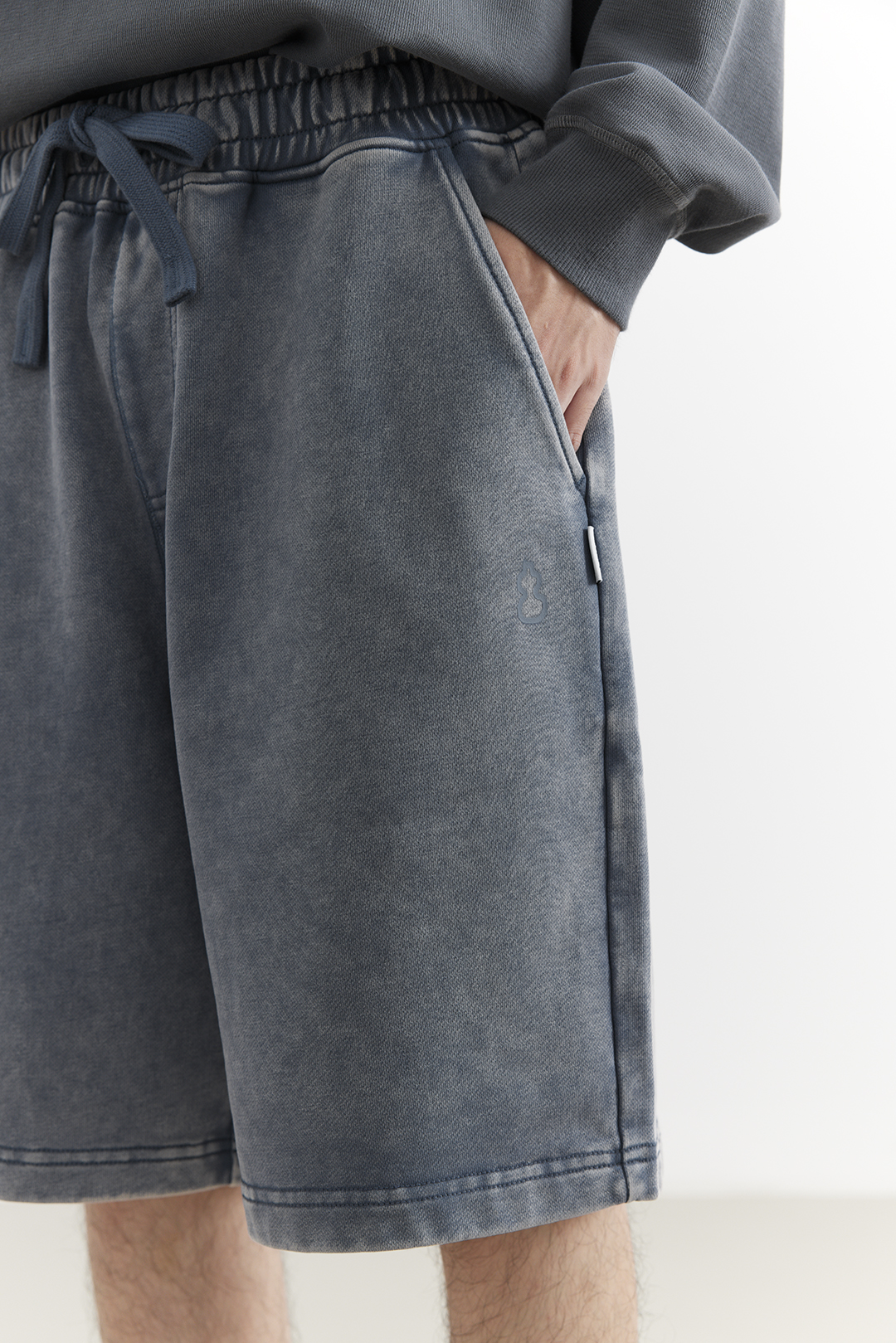 吃茶去chichaqu25全棉重磅洗水做旧短卫裤复古宽松街头休闲运动