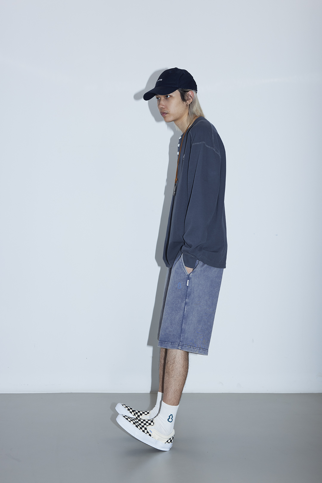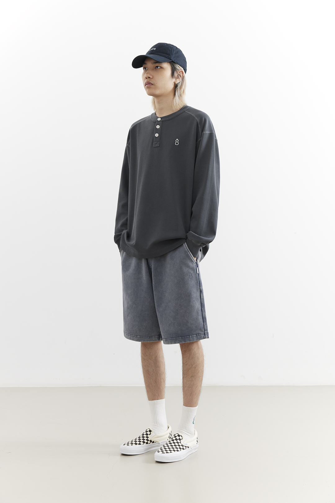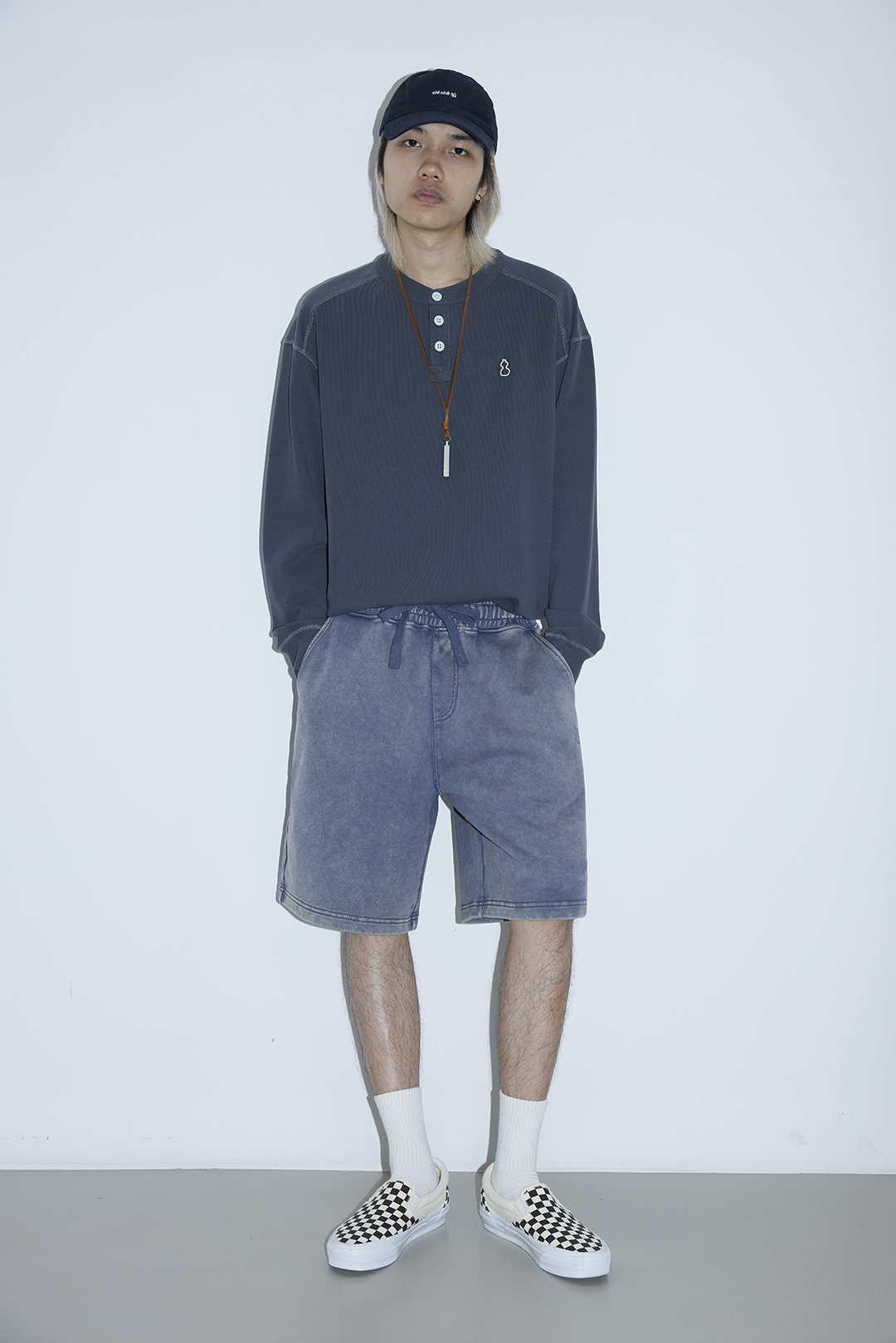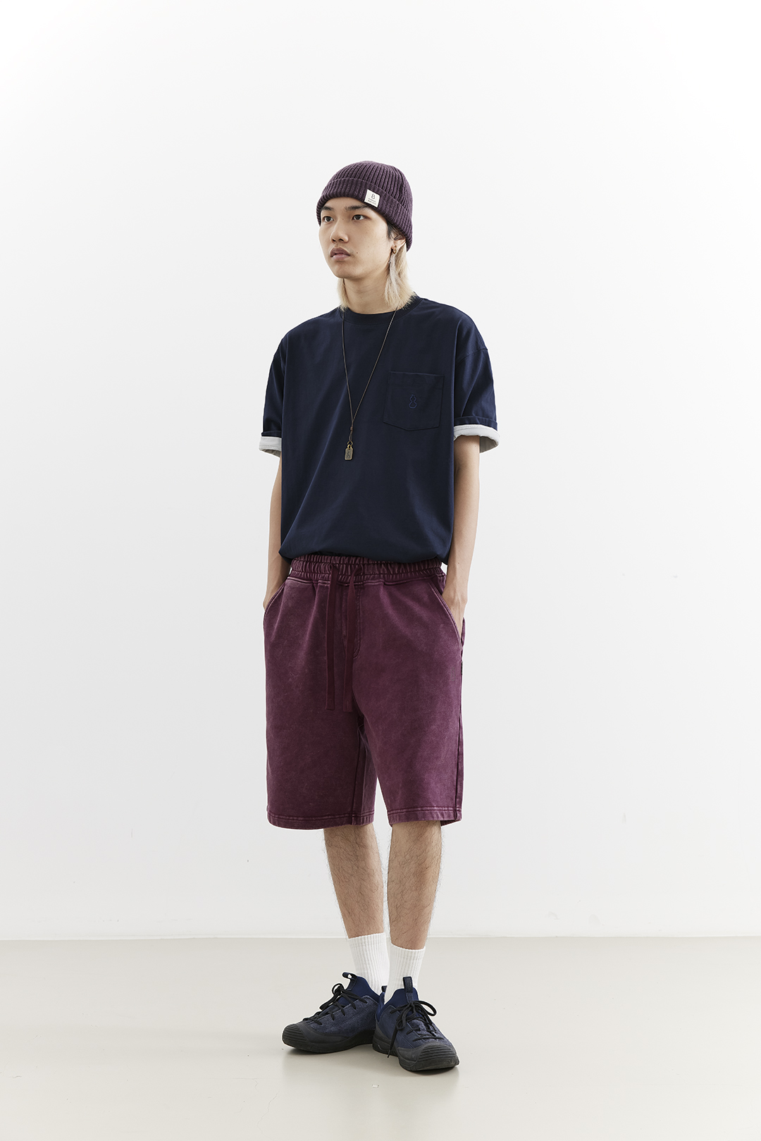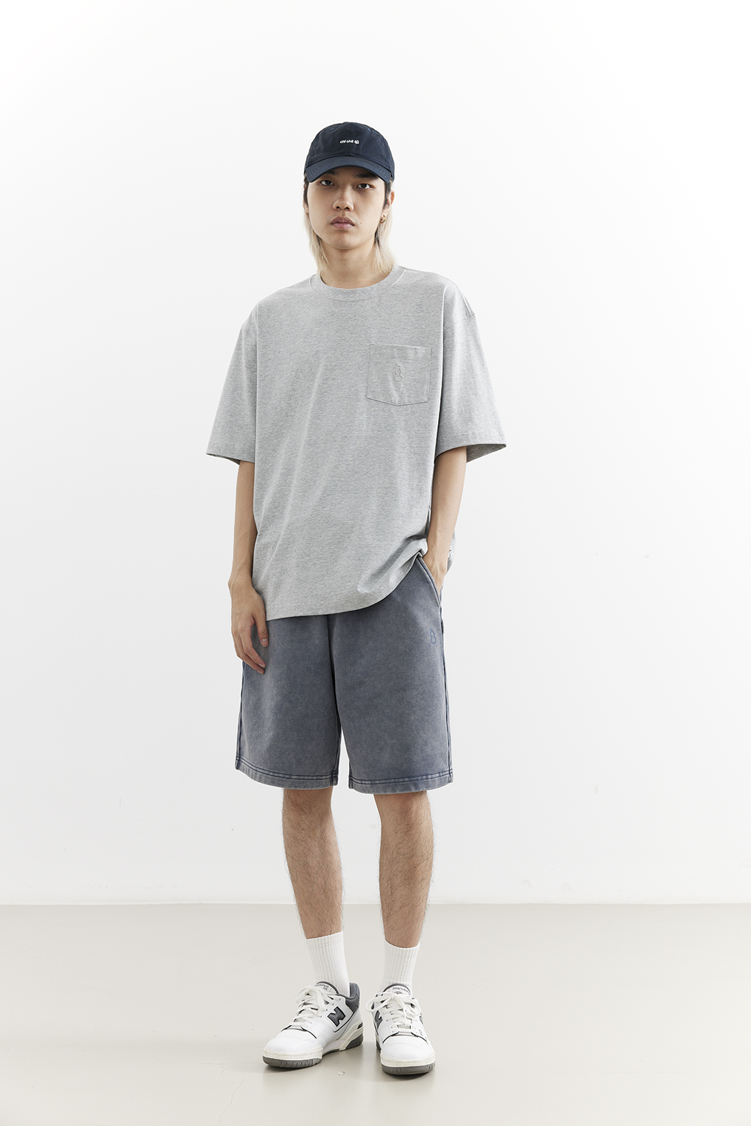 吃茶去chichaqu25全棉重磅洗水做旧短卫裤复古宽松街头休闲运动