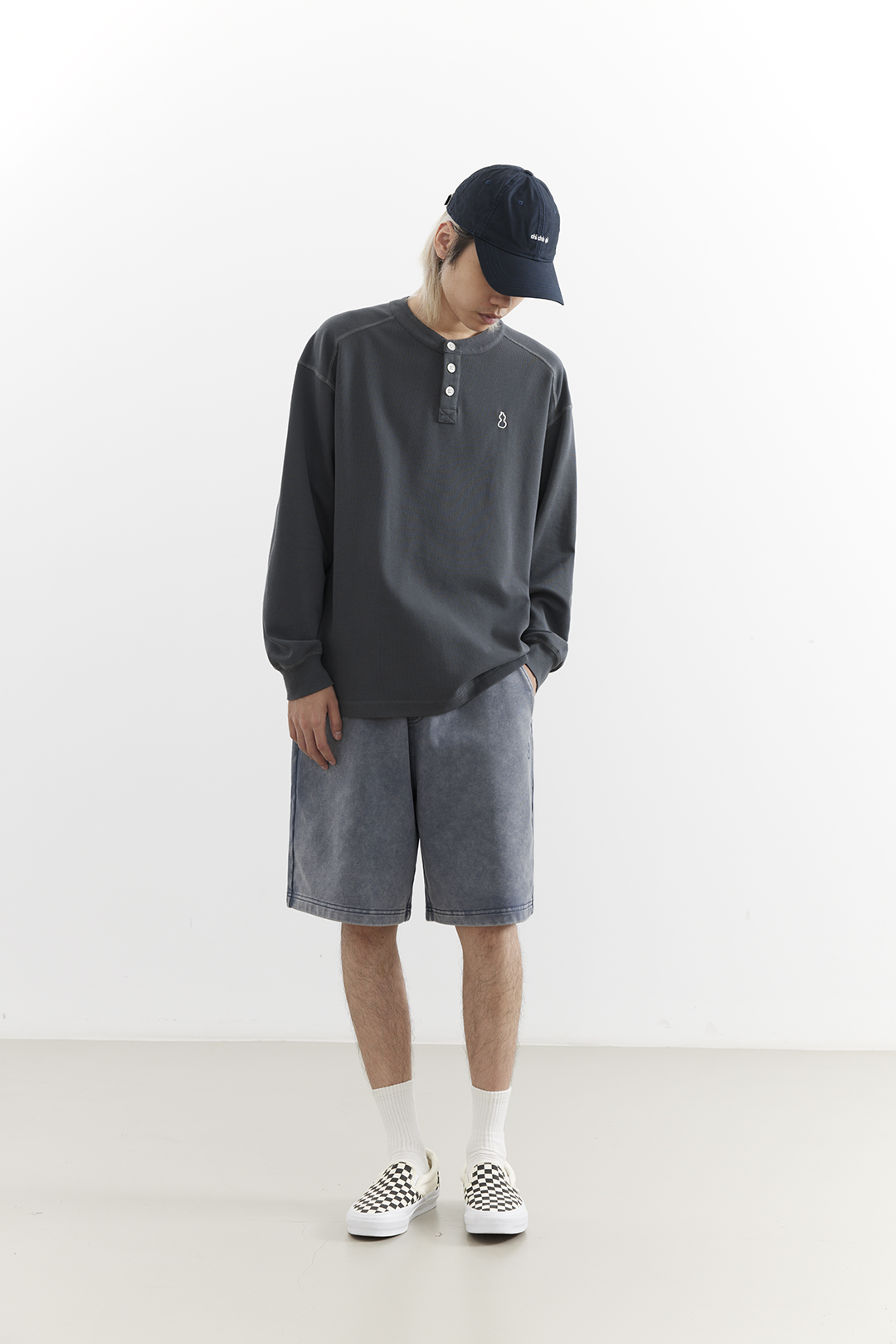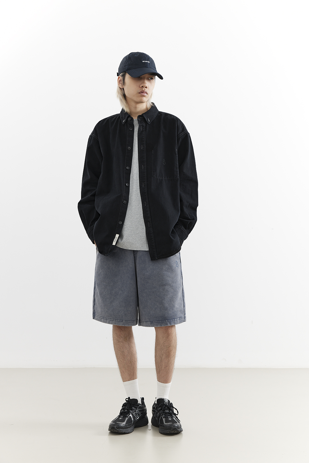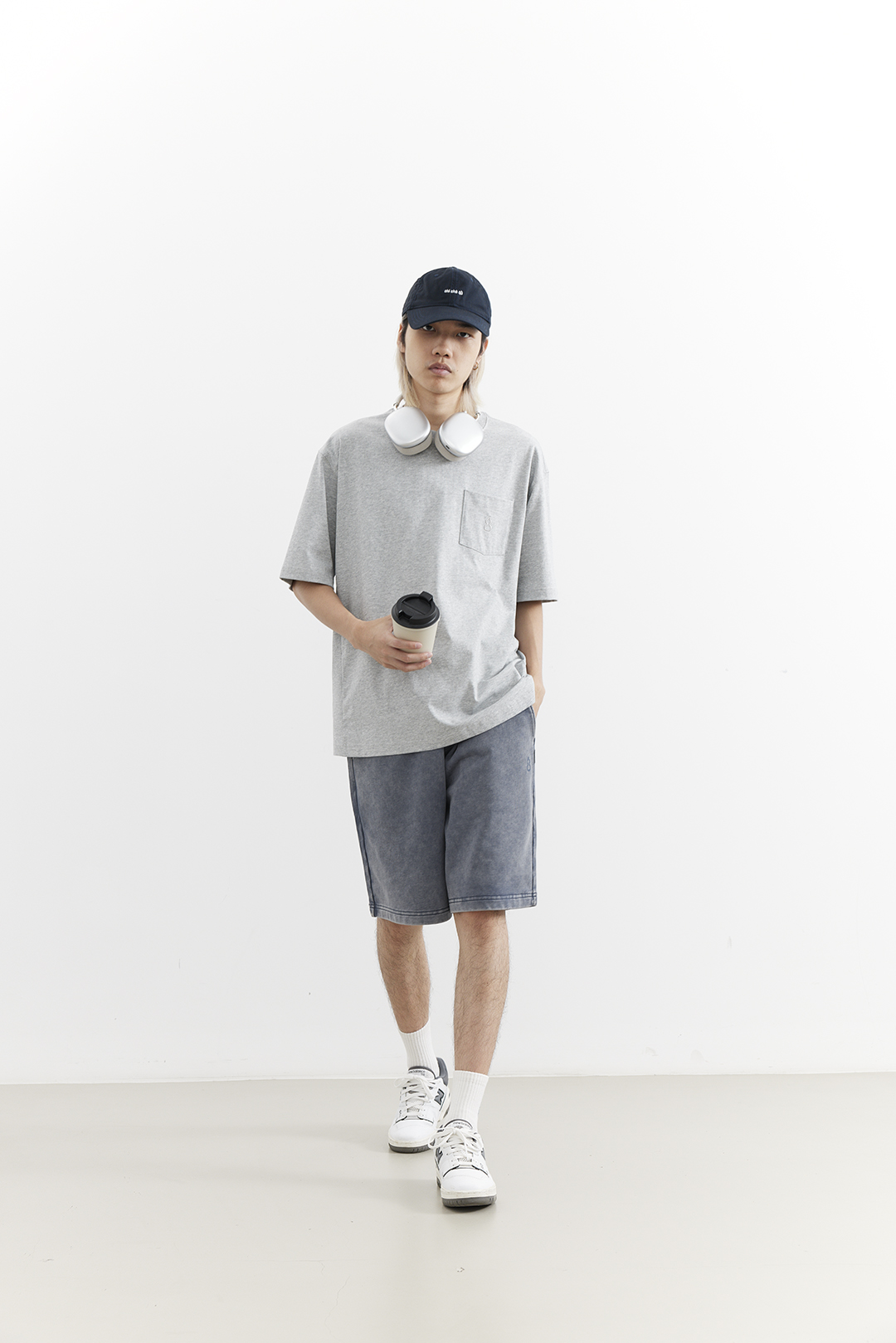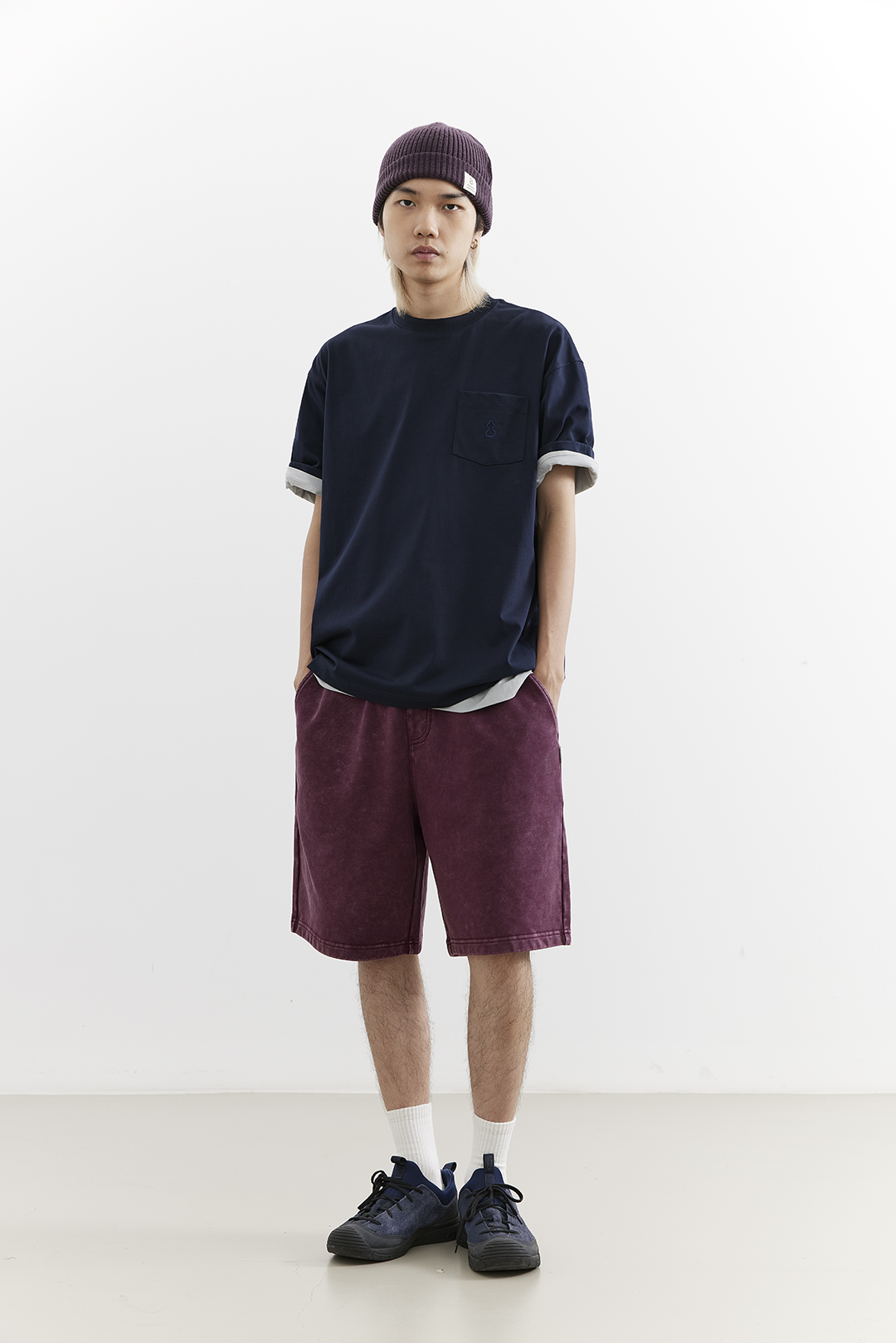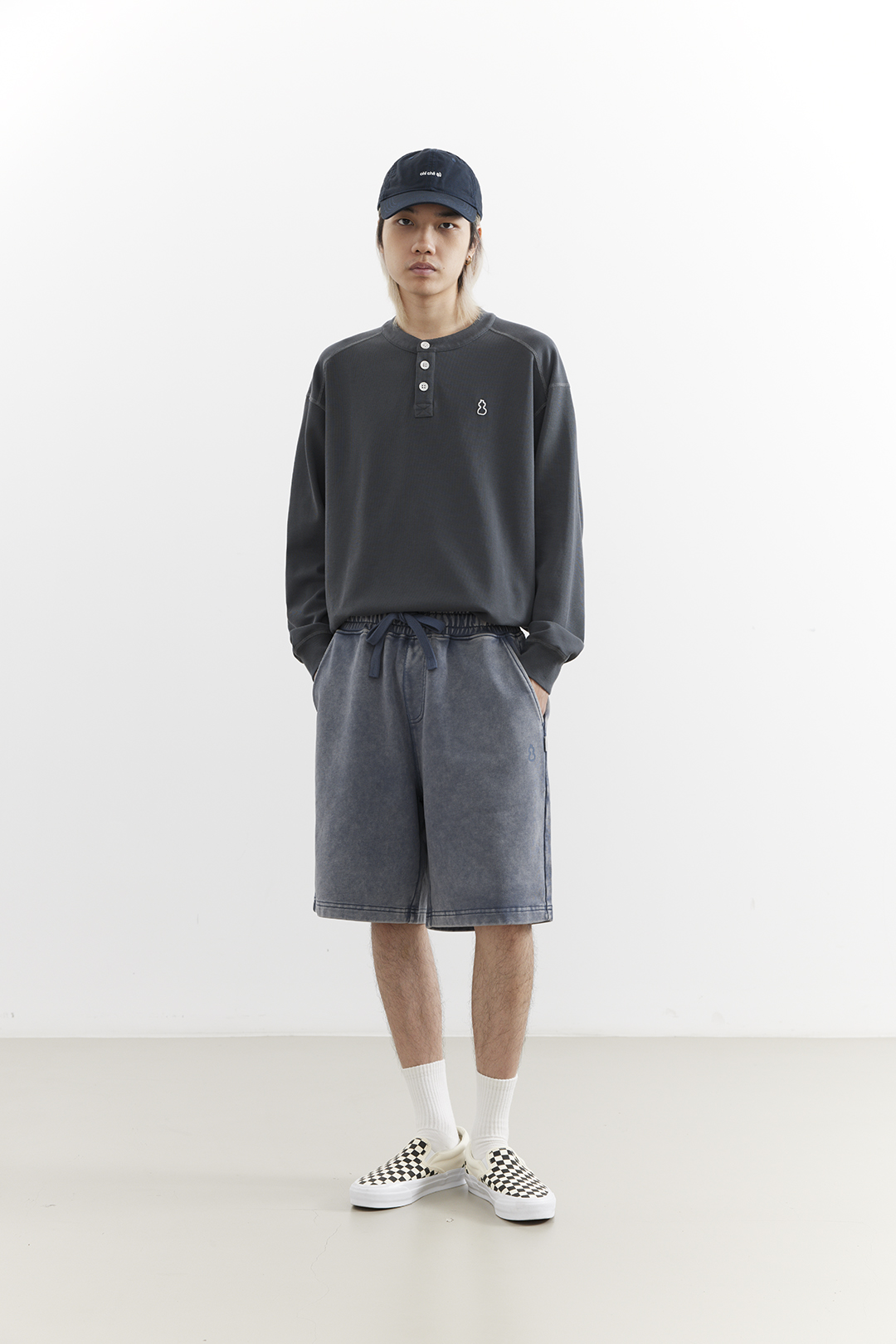 吃茶去chichaqu25全棉重磅洗水做旧短卫裤复古宽松街头休闲运动