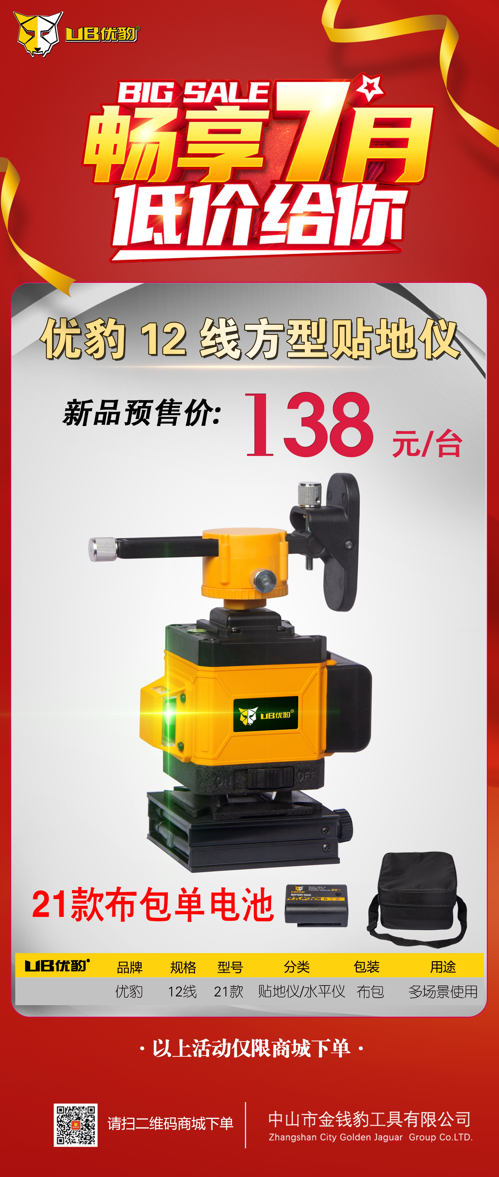 优豹21款方型贴地仪2112【12线】