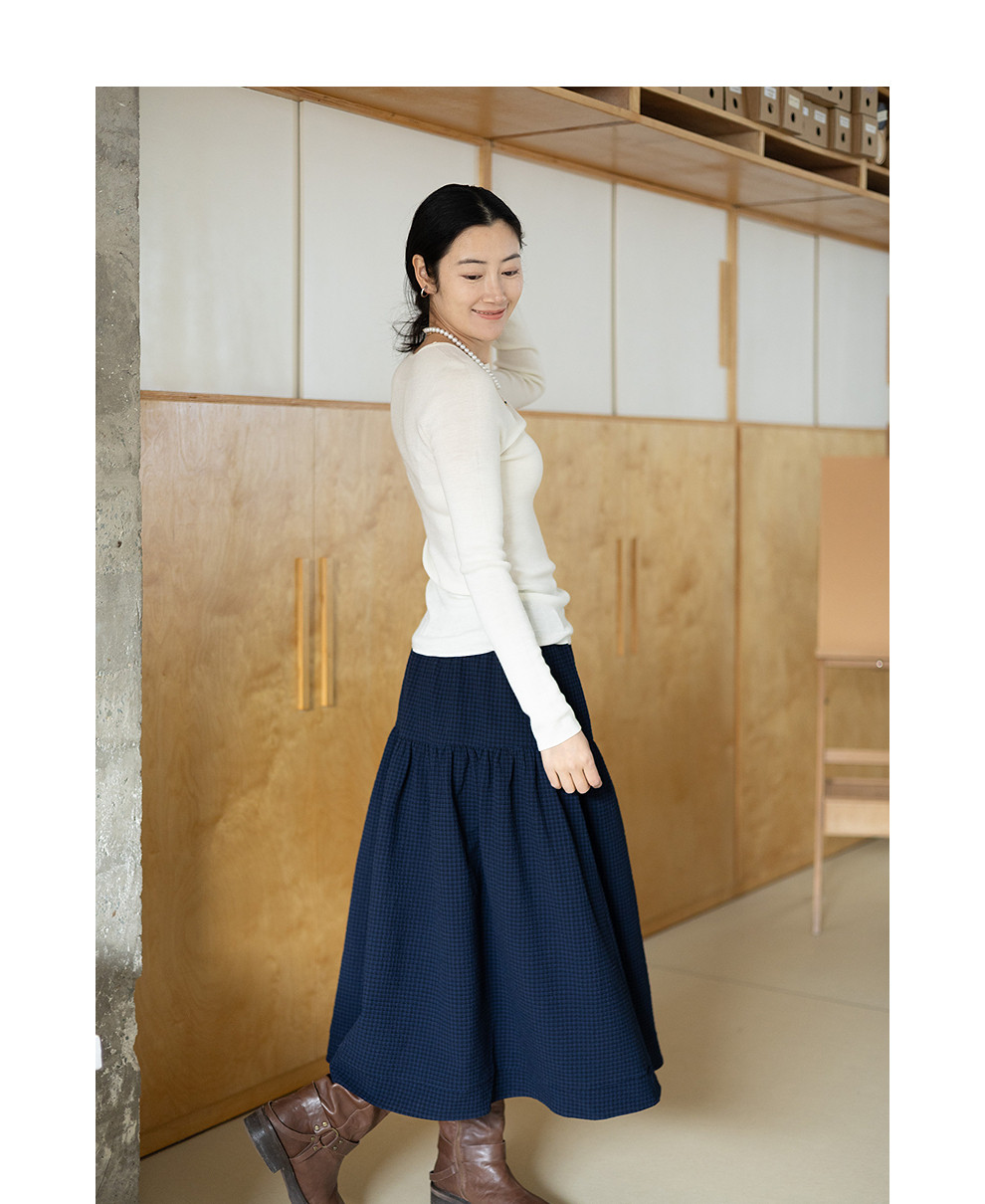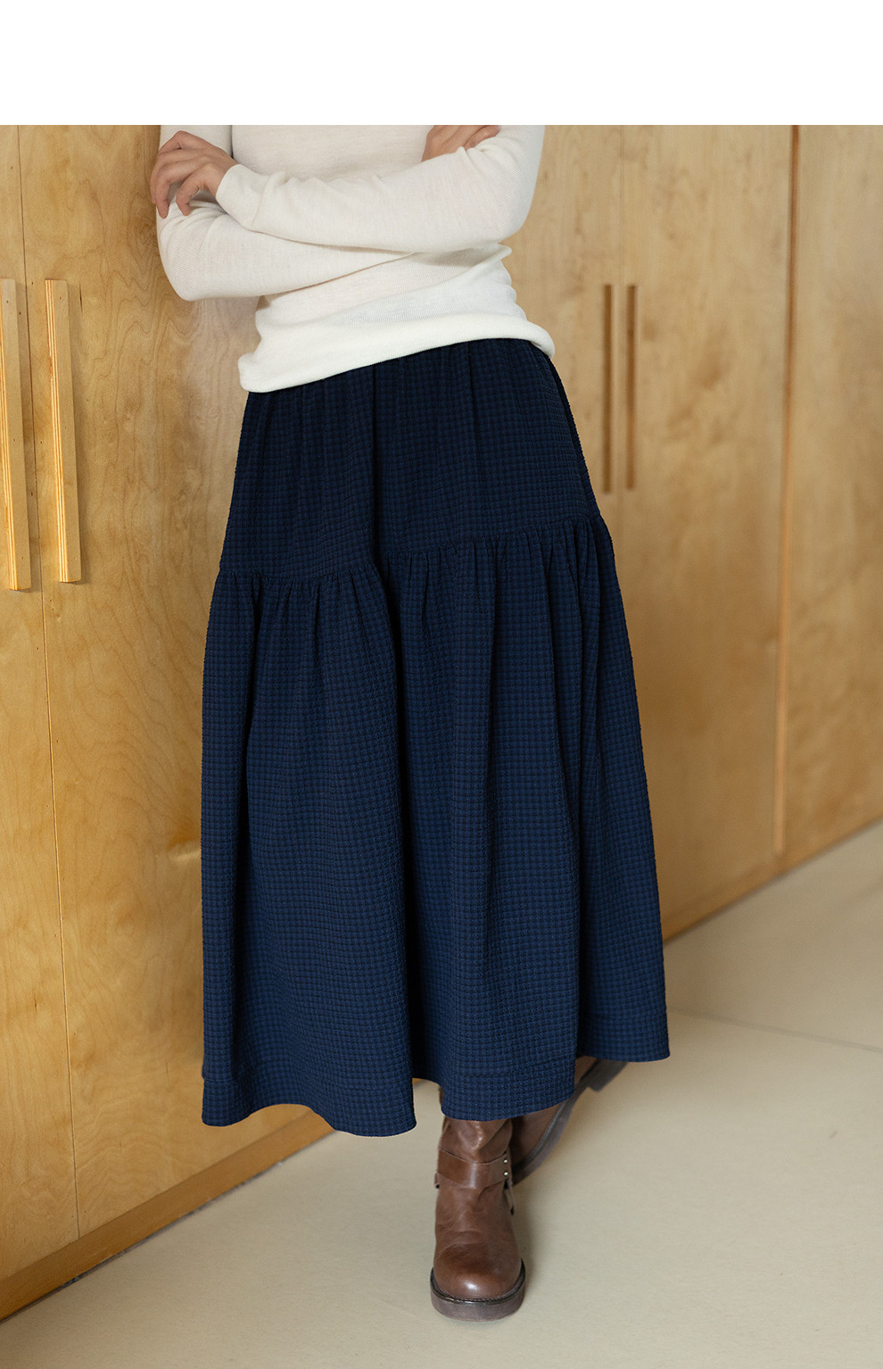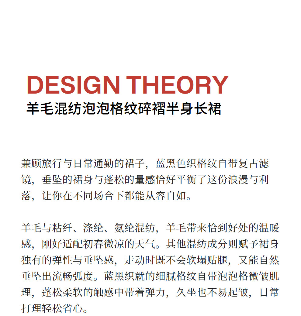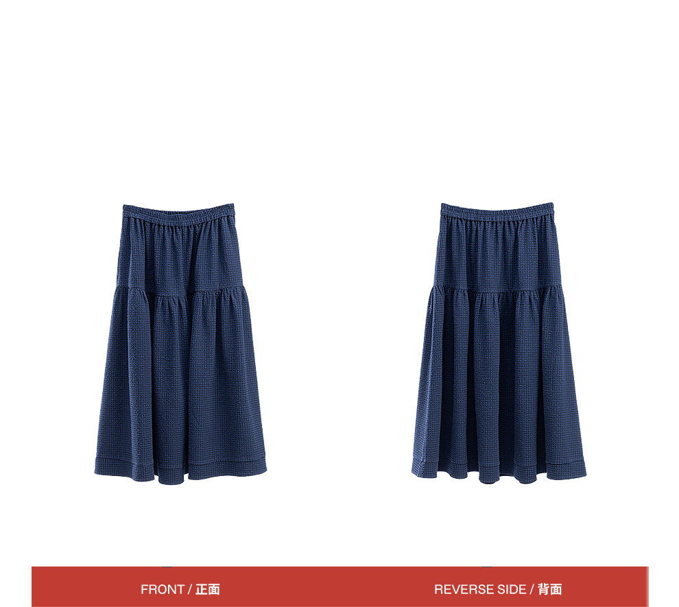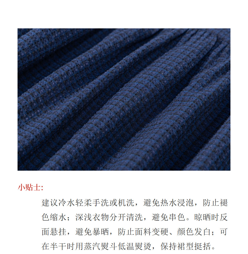 绽放034朵/羊毛混纺泡泡格纹碎褶半身长裙女春新款简约显瘦半身裙