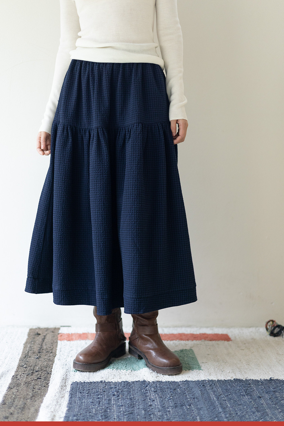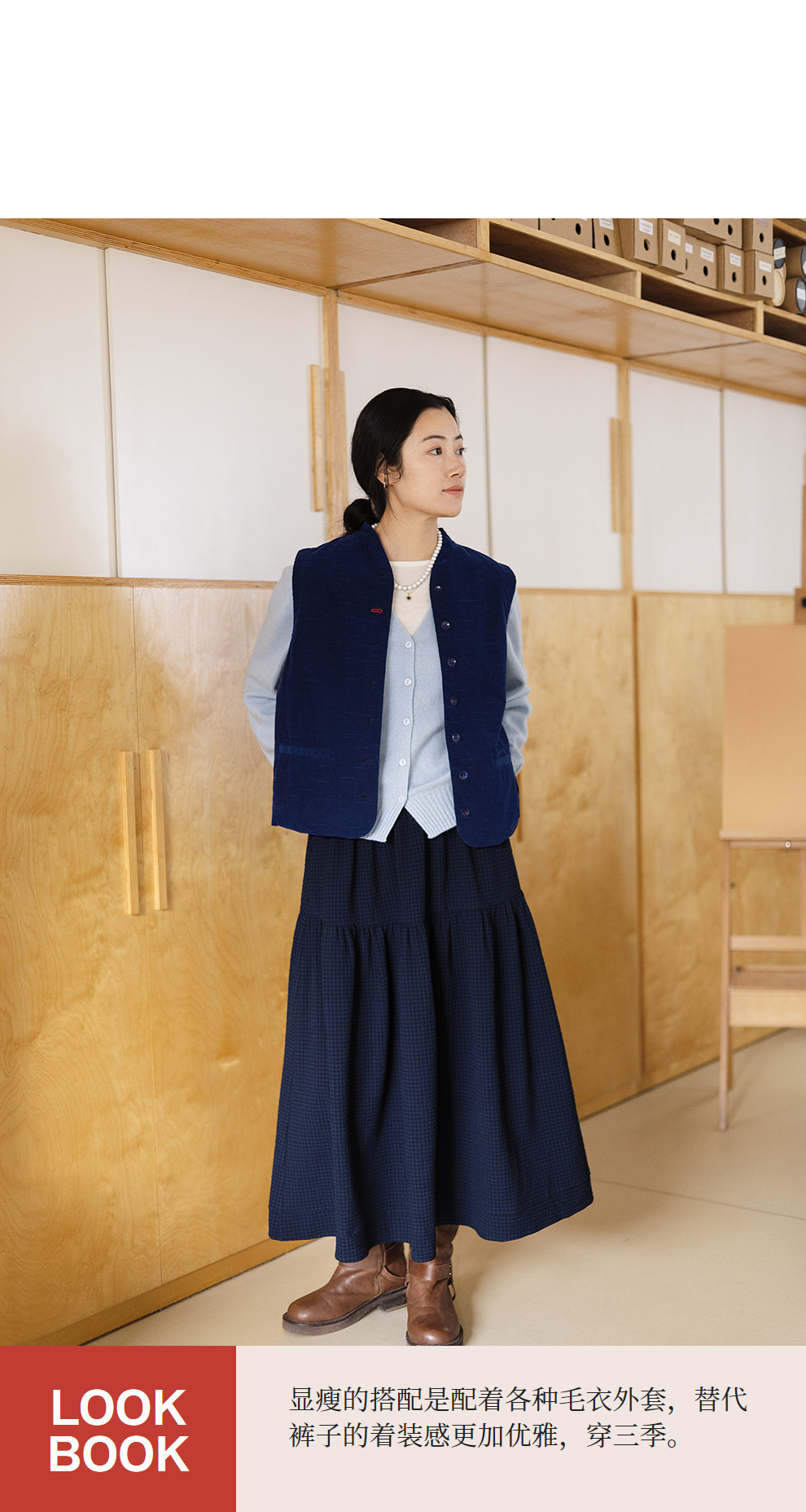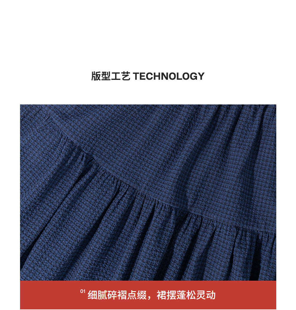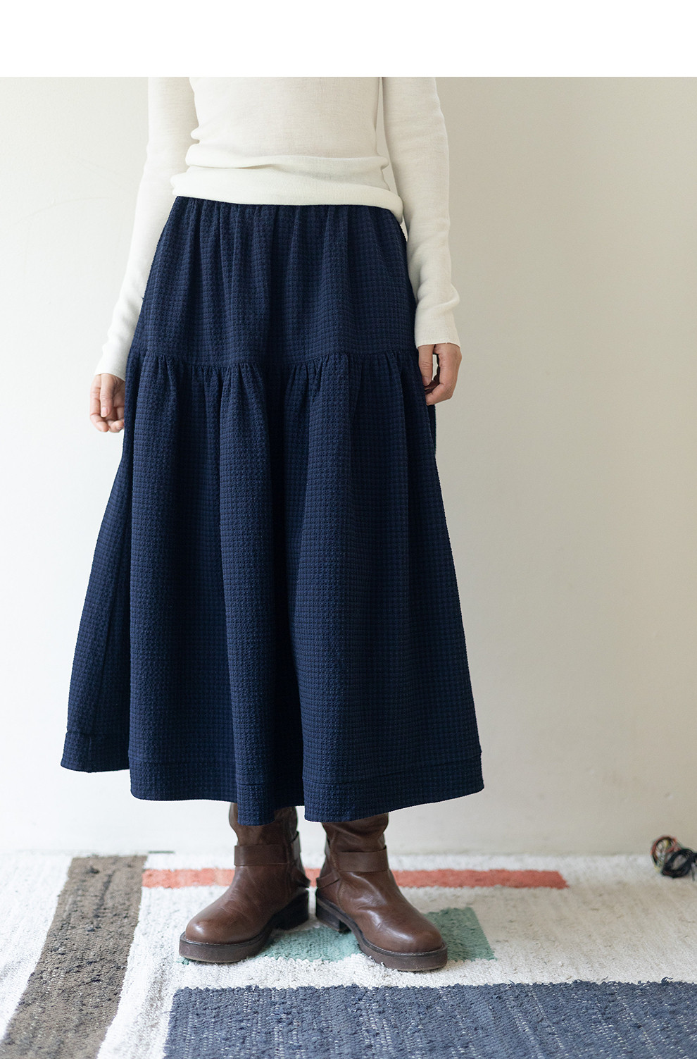 绽放034朵/羊毛混纺泡泡格纹碎褶半身长裙女春新款简约显瘦半身裙