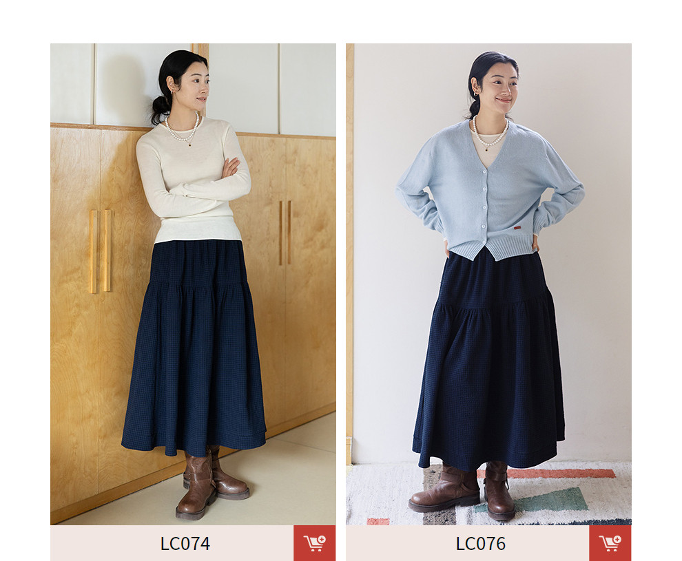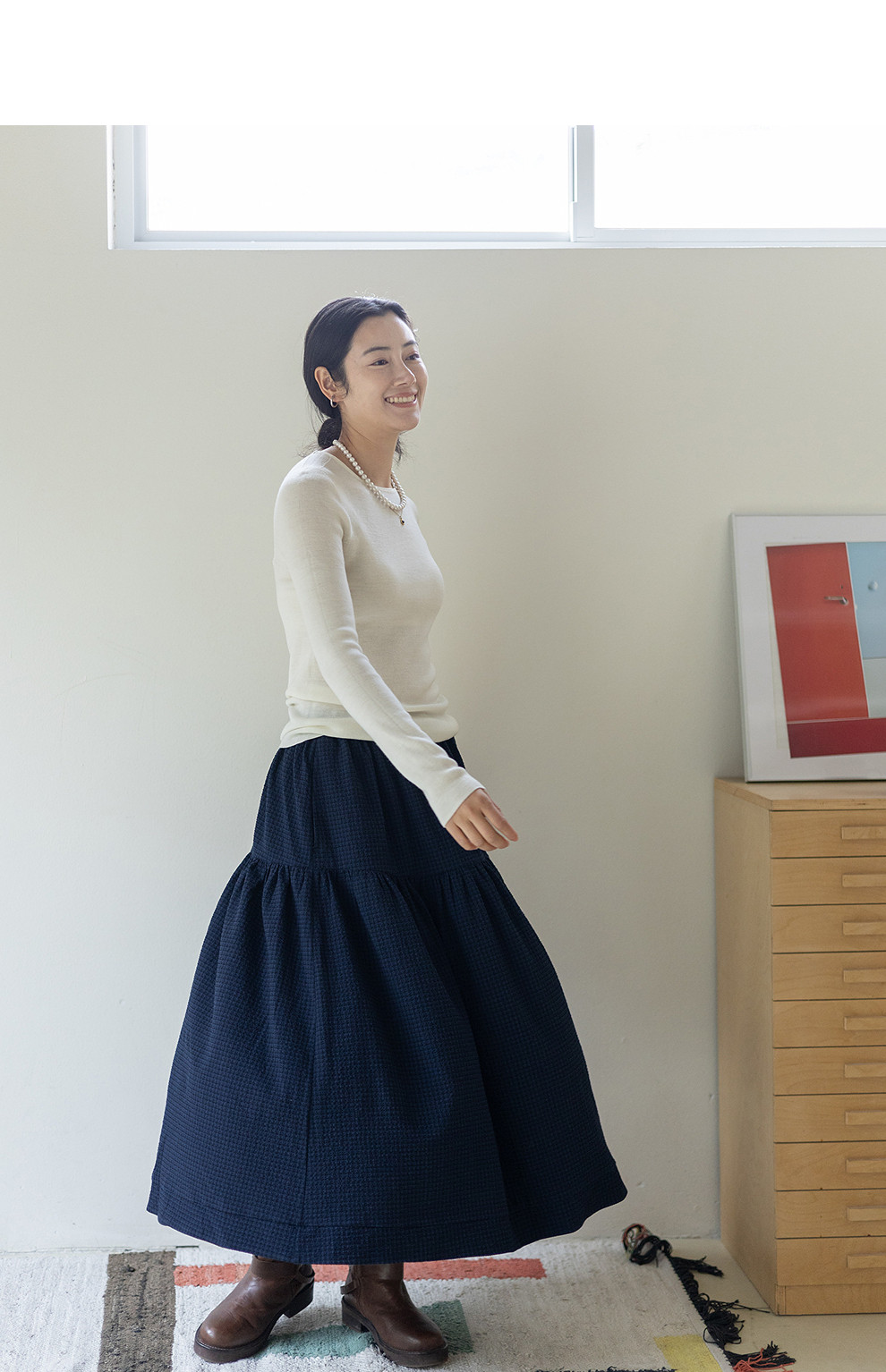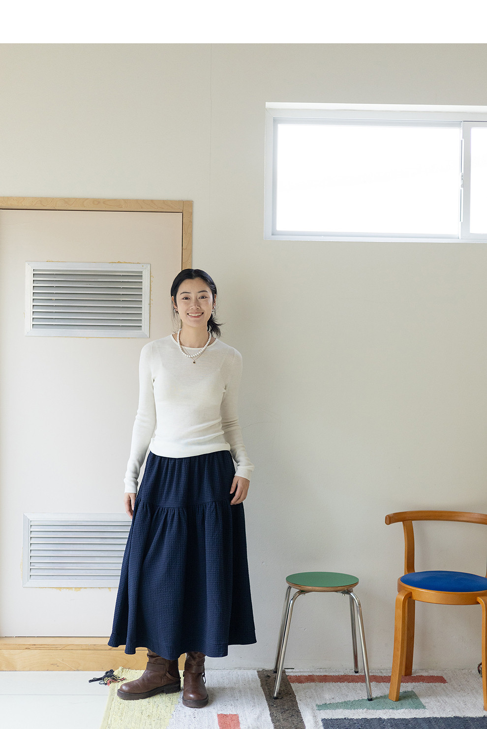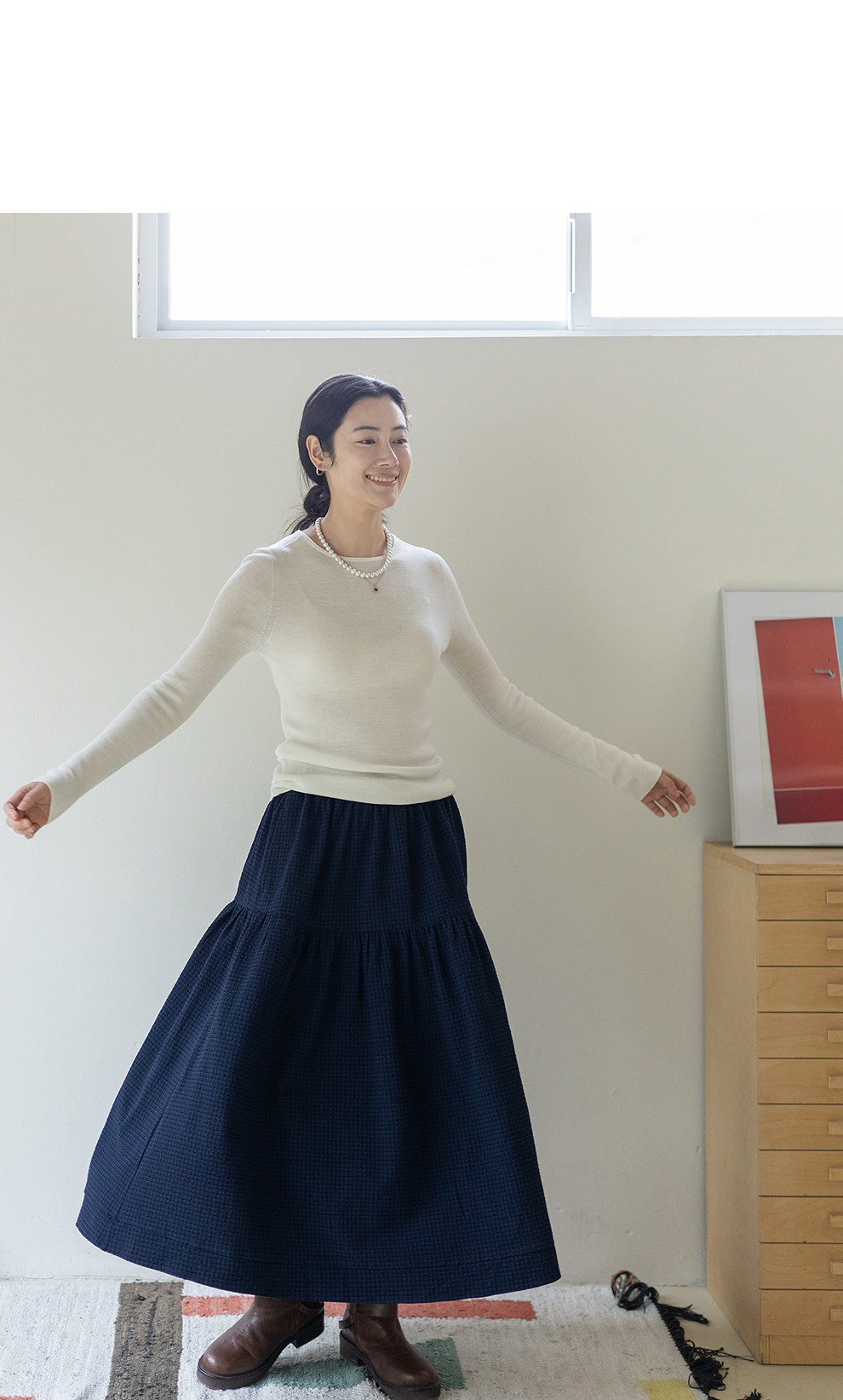 绽放034朵/羊毛混纺泡泡格纹碎褶半身长裙女春新款简约显瘦半身裙