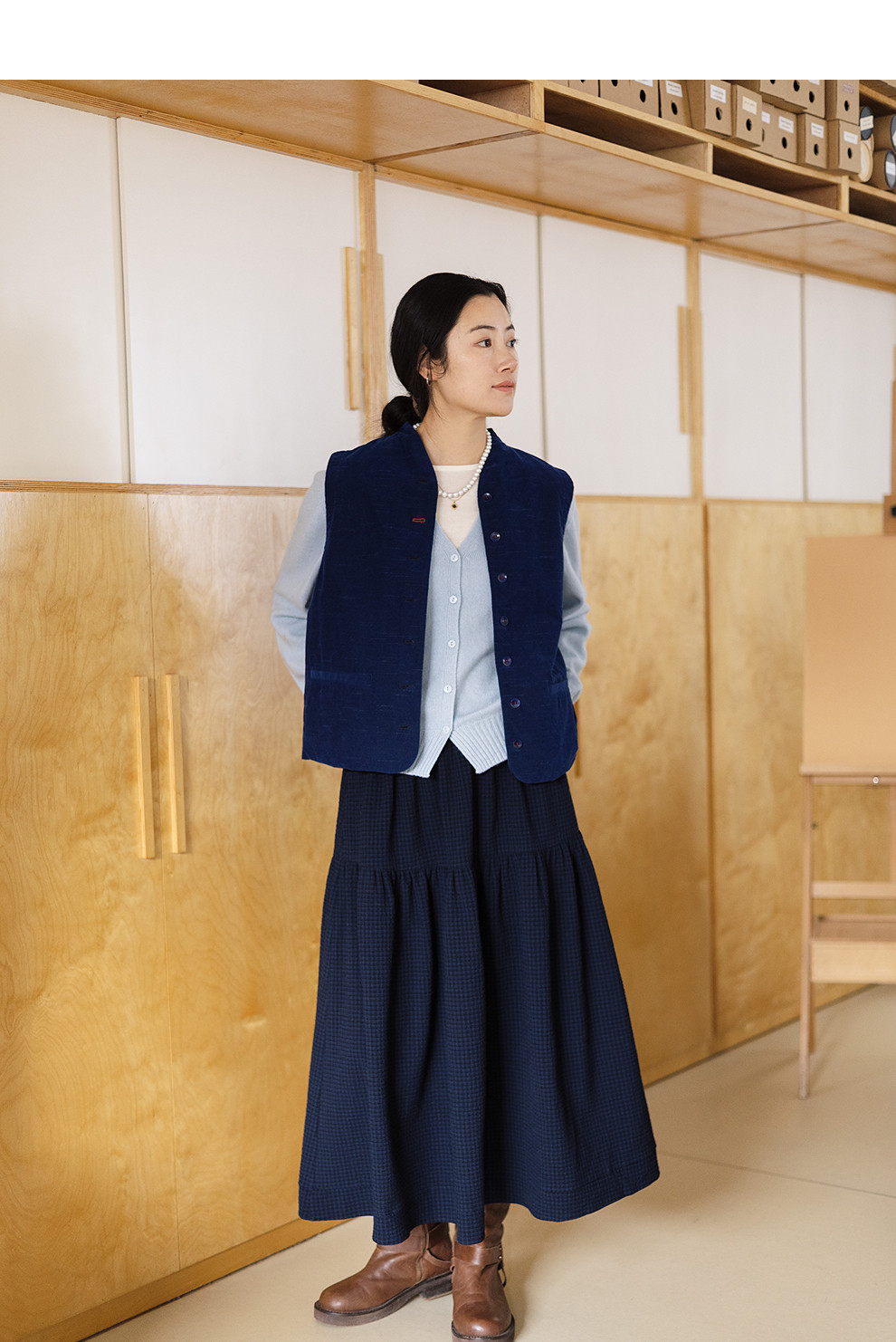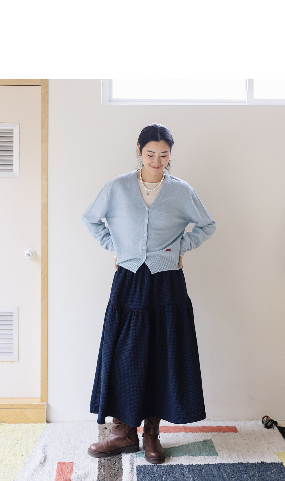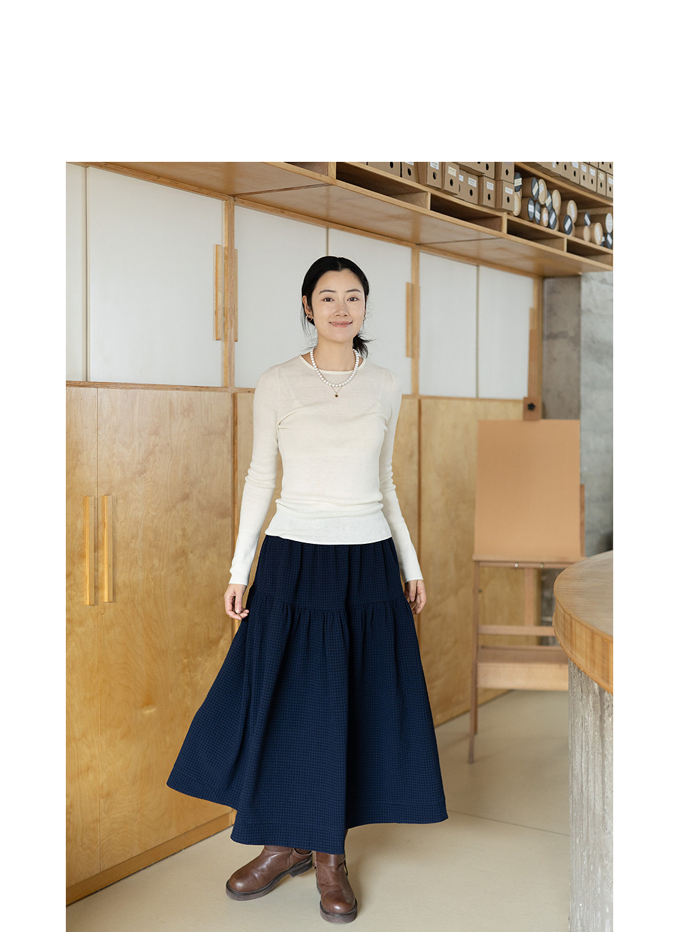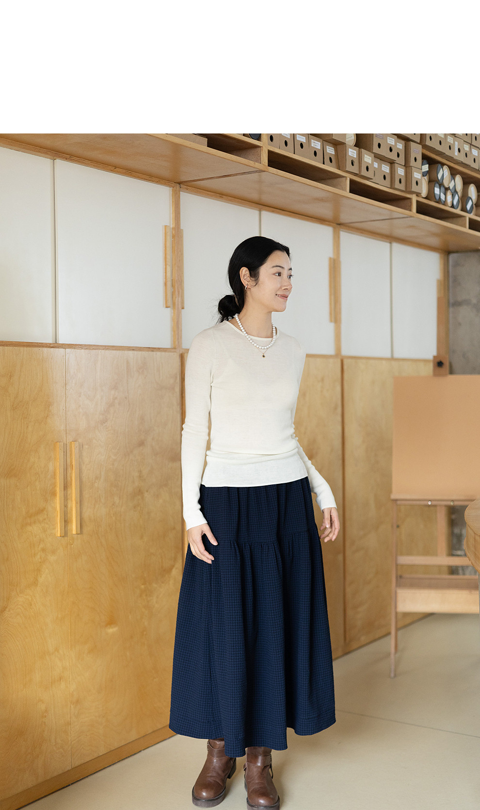 绽放034朵/羊毛混纺泡泡格纹碎褶半身长裙女春新款简约显瘦半身裙
