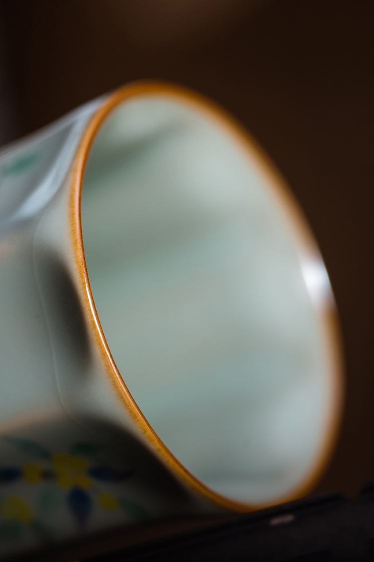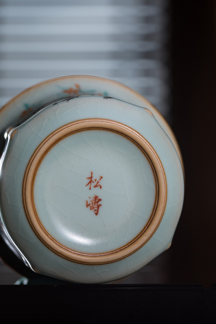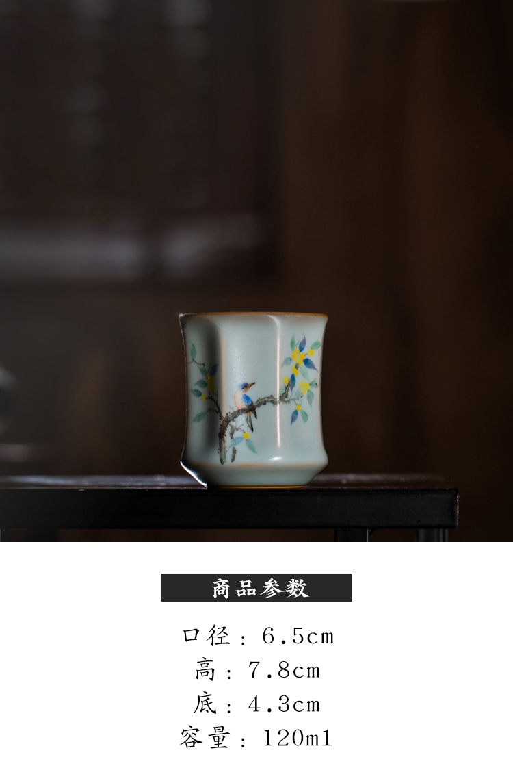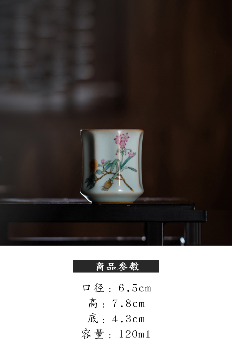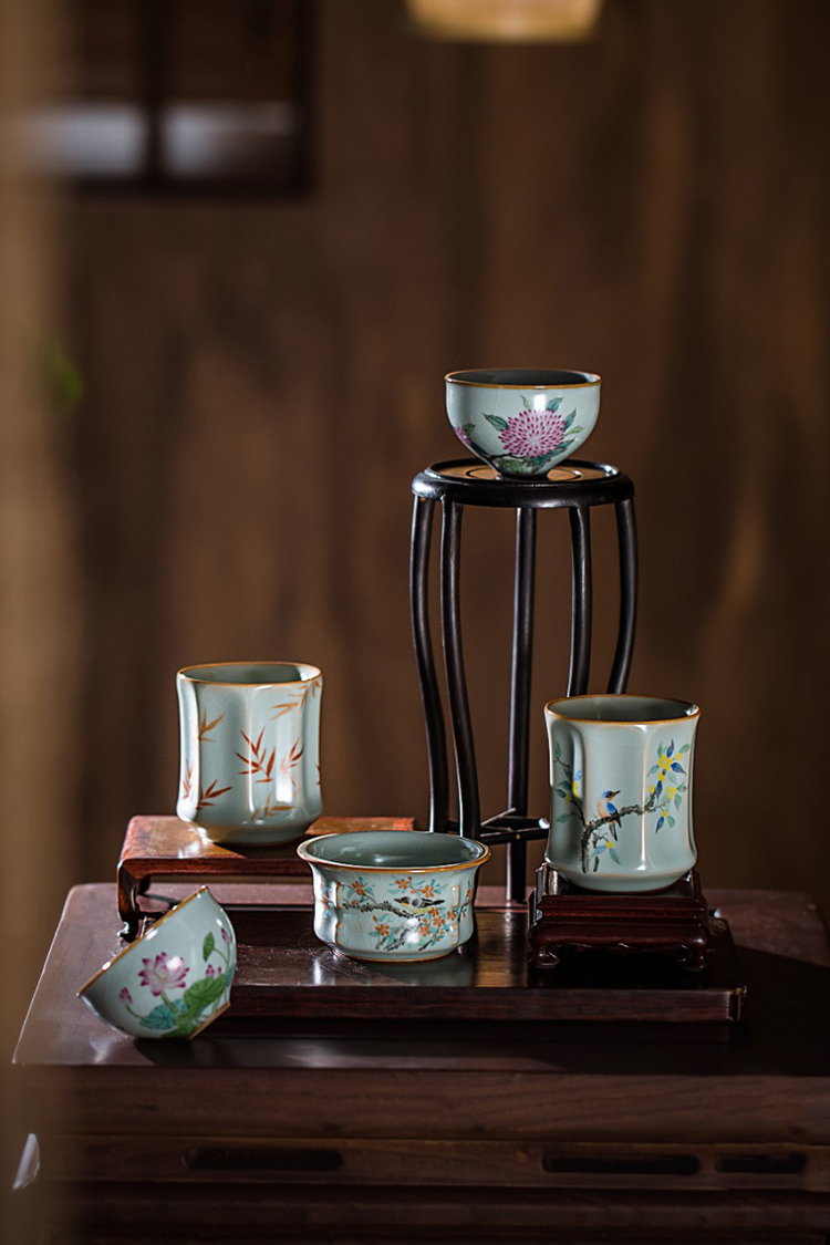 松涛彩绘汝窑天青棱线杯(水仙缥缈)(花鸟物语)(红竹萧萧)天青清尊杯(花鸟物语)(缺货)