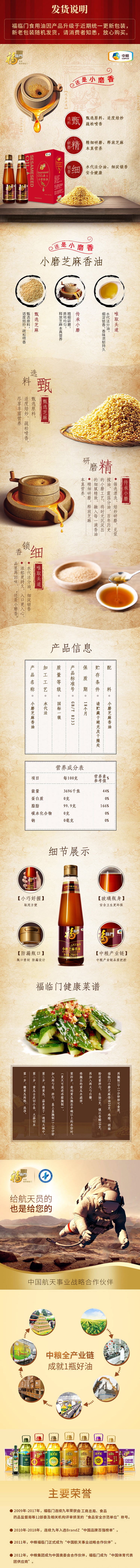 中粮 福临门一级小磨香油礼盒 精选芝麻 传统小磨  香味浓且持久 250ml*2瓶 商品图0