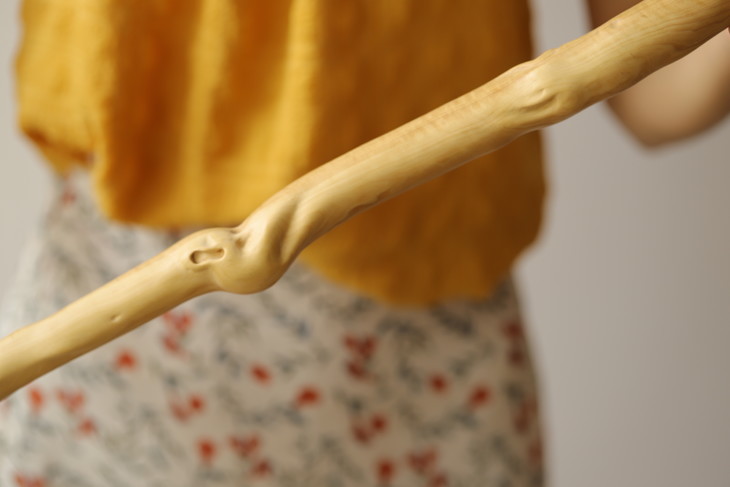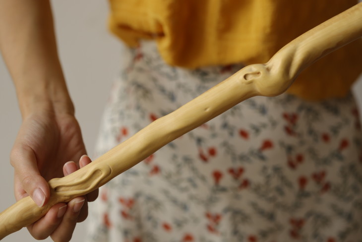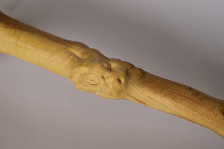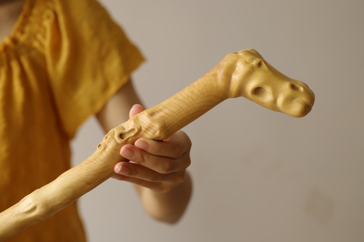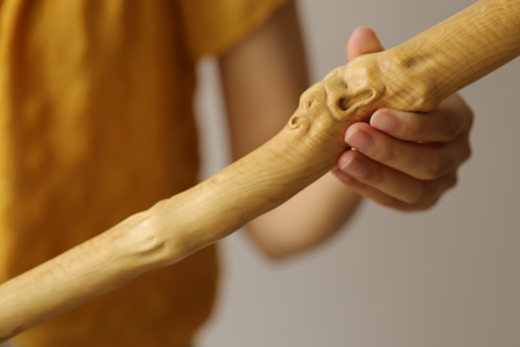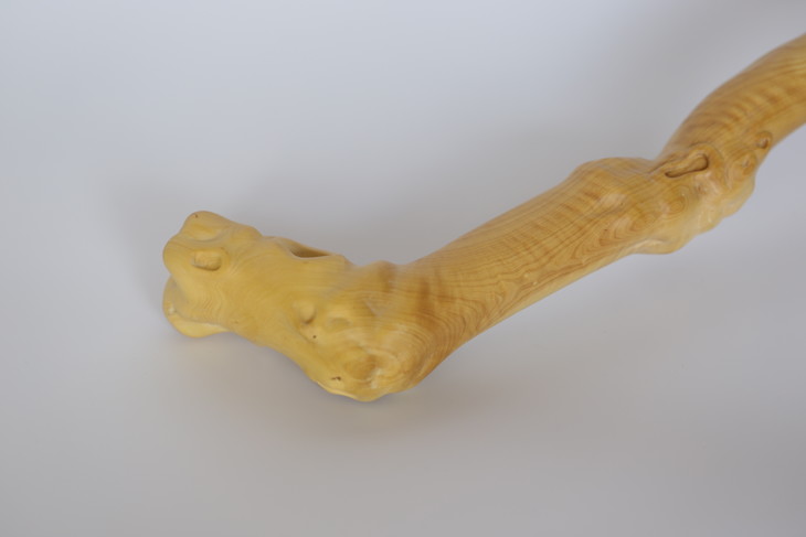 取材于大自然的山林中,受日、月、雨、雾数十载育成,具有盘根错节,多钉刺、硬、韧、有弹性,天然形态各异万千。丛中择优而得稀罕的黄杨木。经汤(防蛀)、火(定形)、檫(光滑)纯手工制作。