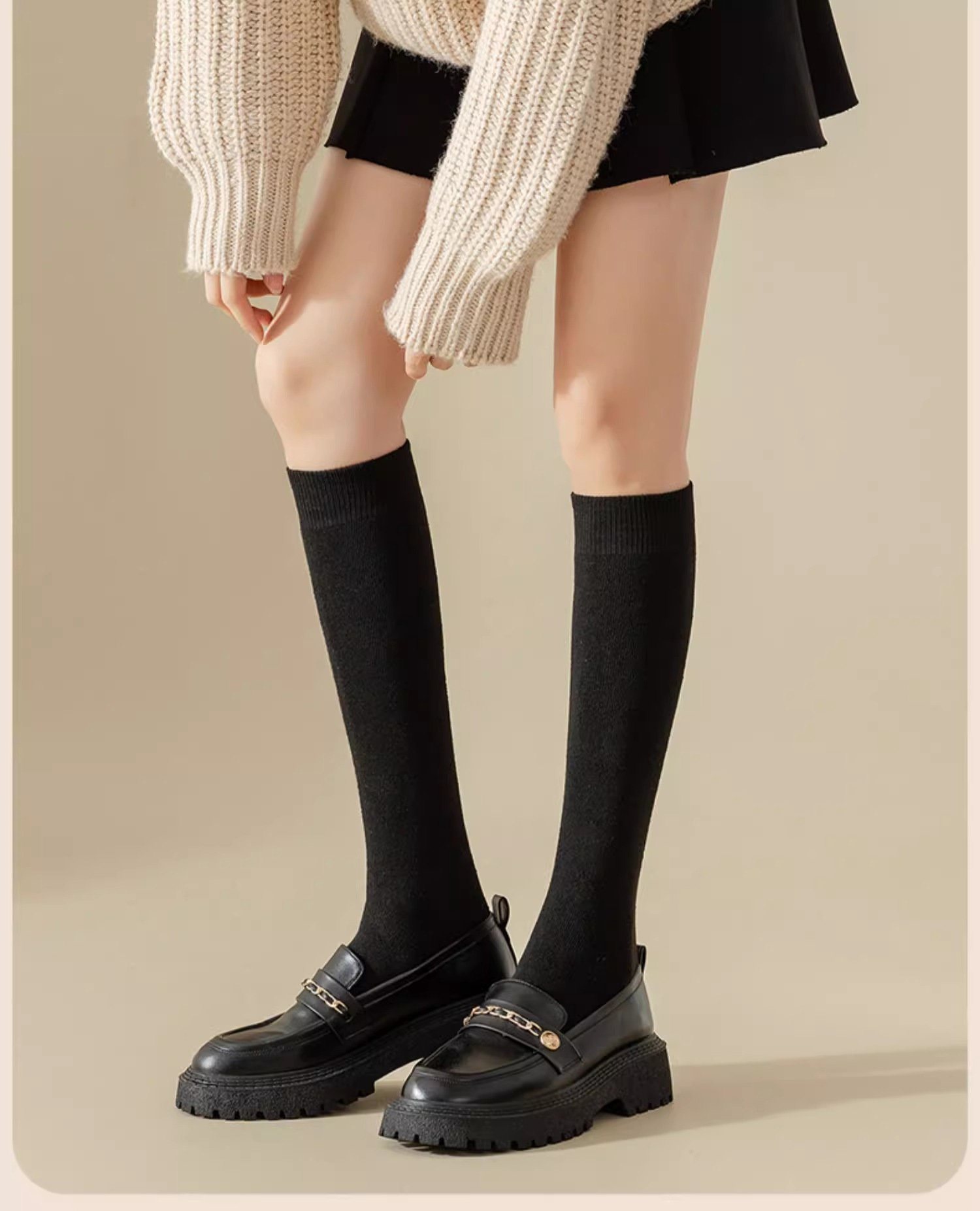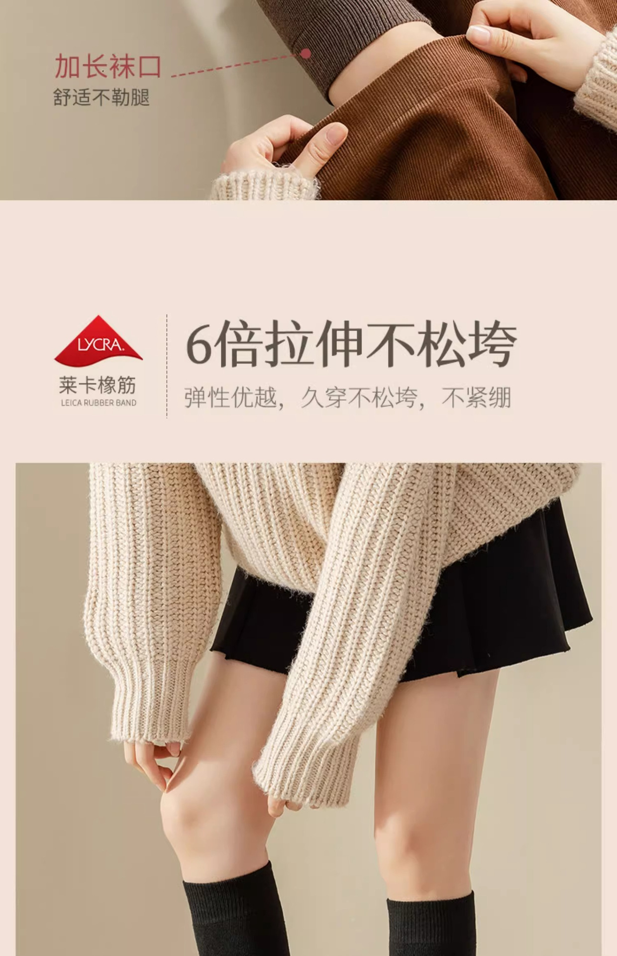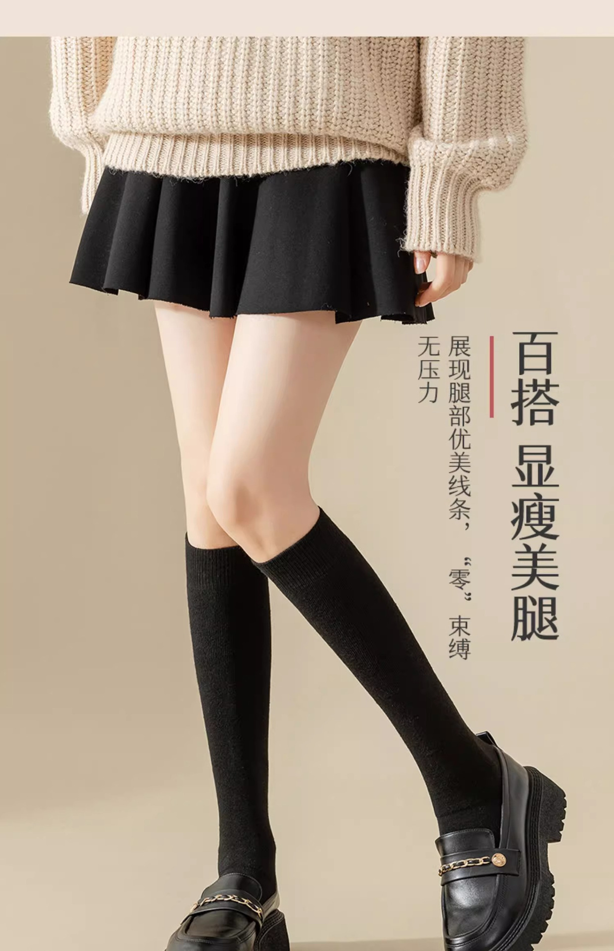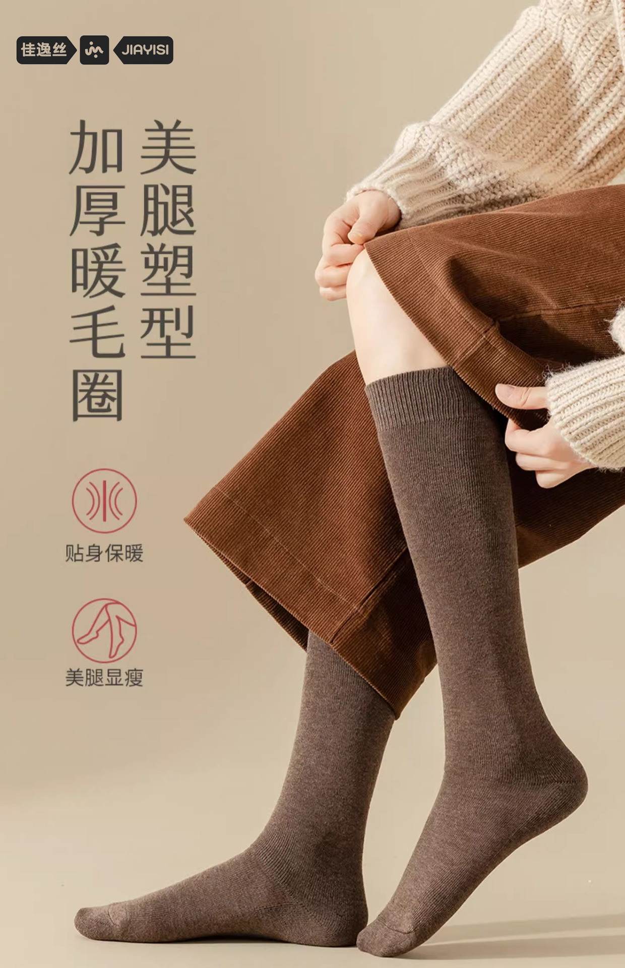 小腿袜女秋冬款高筒袜加绒加厚防滑保暖女士冬季长袜
