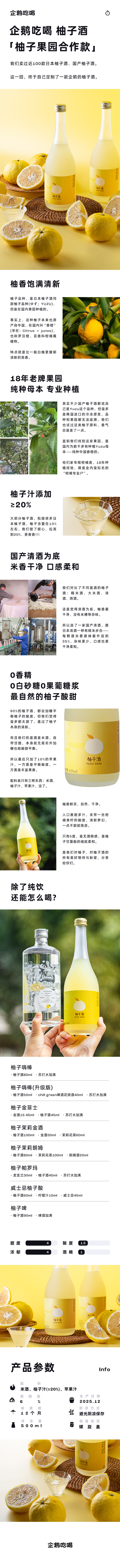 企鹅吃喝|柚子酒 柚子果园合作款 清酒基底 0香精0白砂糖0果葡糖浆 香气清新口感纯净