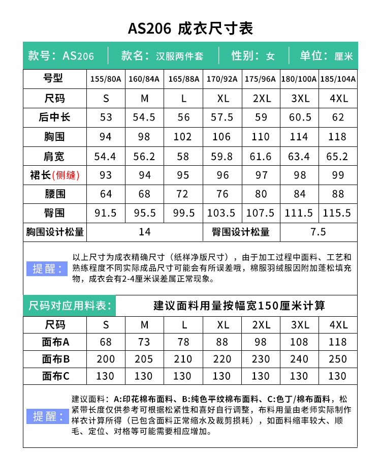 裁缝学苑AS206 汉服直领大襟唐背子纸样半身裙套装样板打版裁剪图