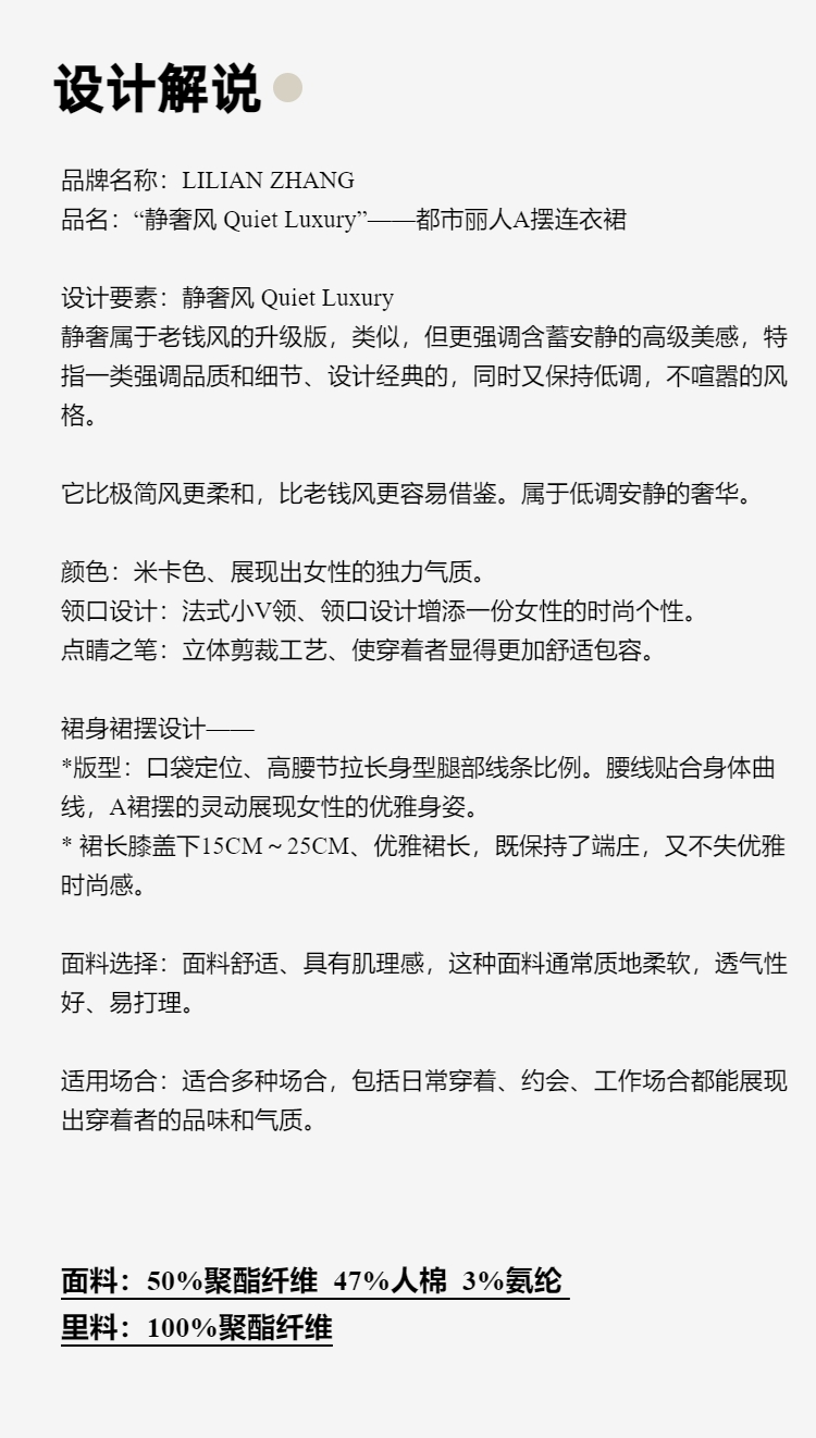 C-“定制”——“静奢风”——都市优雅女士A摆修身时装连衣裙 2401181