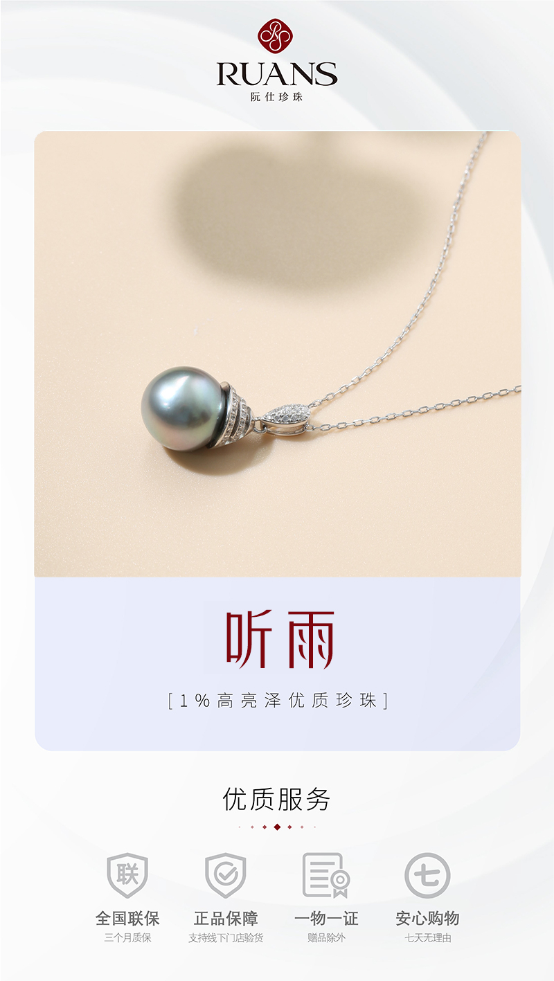 阮仕听雨系列 S925银大溪地海水铂金灰珍珠吊坠 11-12mm NS2062TYB