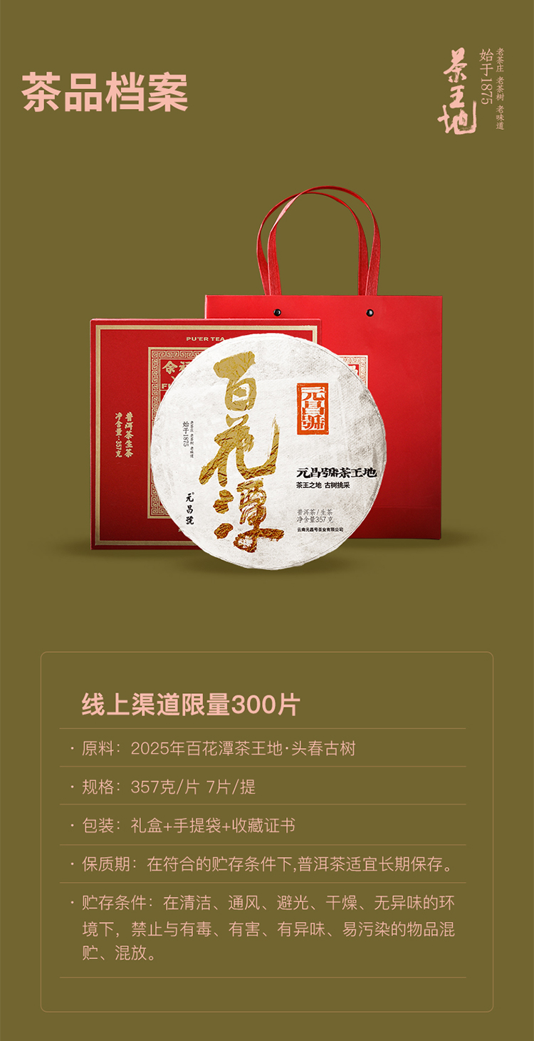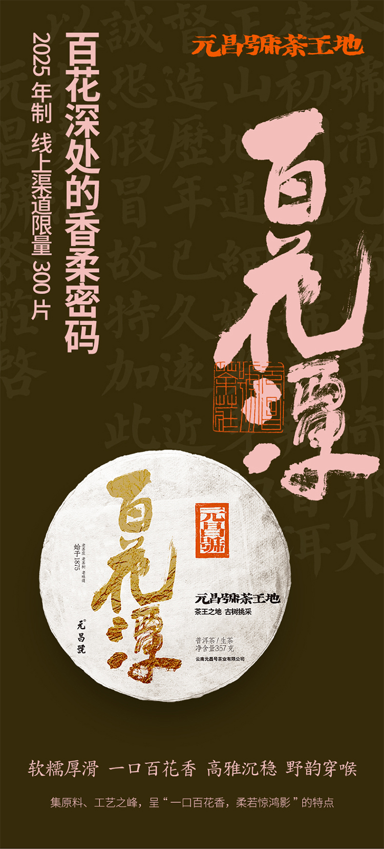 【茶王地系列】元昌号2025年百花潭古树纯料357克生饼