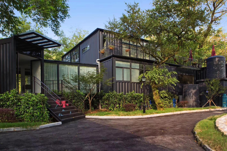 那厢有全国有名的集装箱设计师上海漫居房小伟设计,一共有六十八个集装箱定制而成,并注册了自己的商标,共有房间18个,并有亲子房、套房、标准房、景观房、单人间等不同房型可供来客选择…