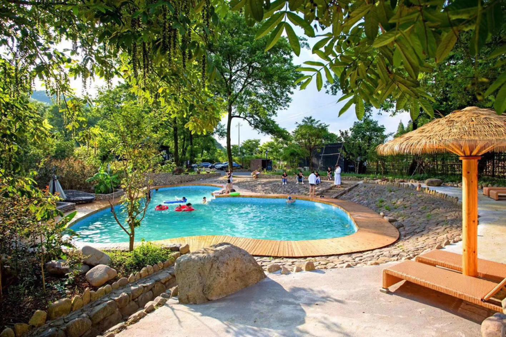 安吉那厢花园民宿于2018年5月开业,地处安吉县报福镇景溪村内,坐落于一片树林之中,后有群山环绕,竹林茂密,前有景溪河水,清澈潺潺。一条从中间穿过的小溪,更是增添了那厢的灵气…