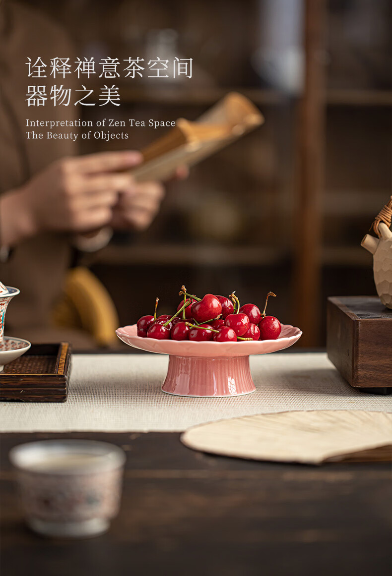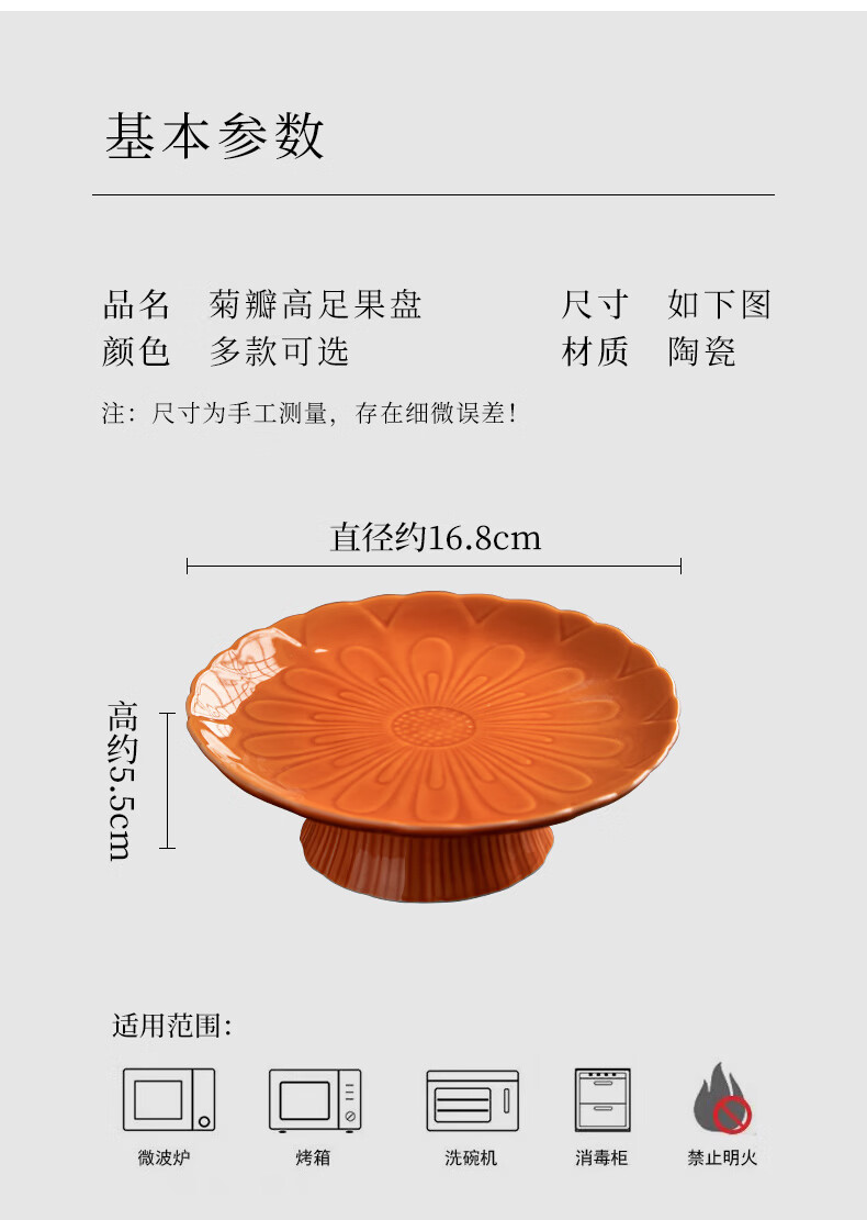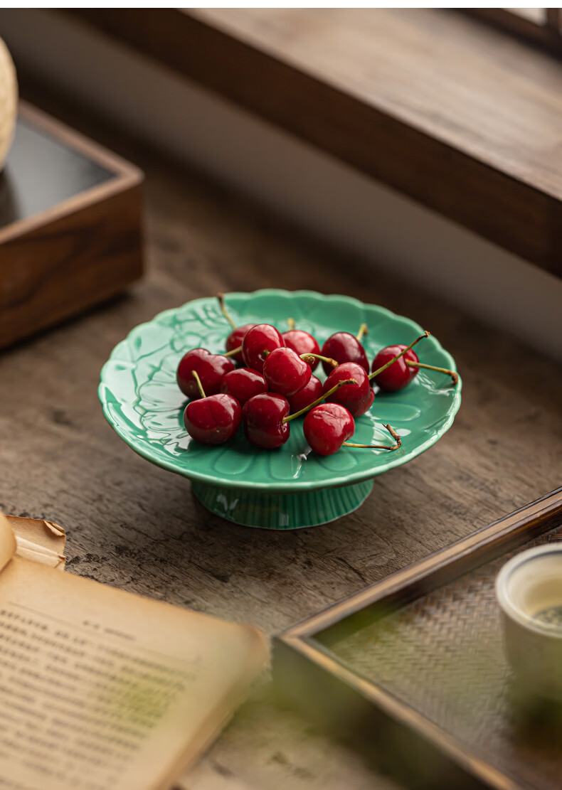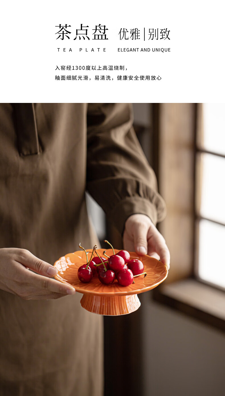 【菊瓣高脚盘】中式复古陶瓷茶点盘高脚水果盘创意零食糕点盘家用茶几干果盘摆台