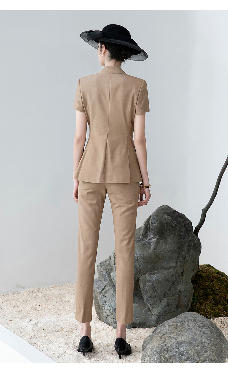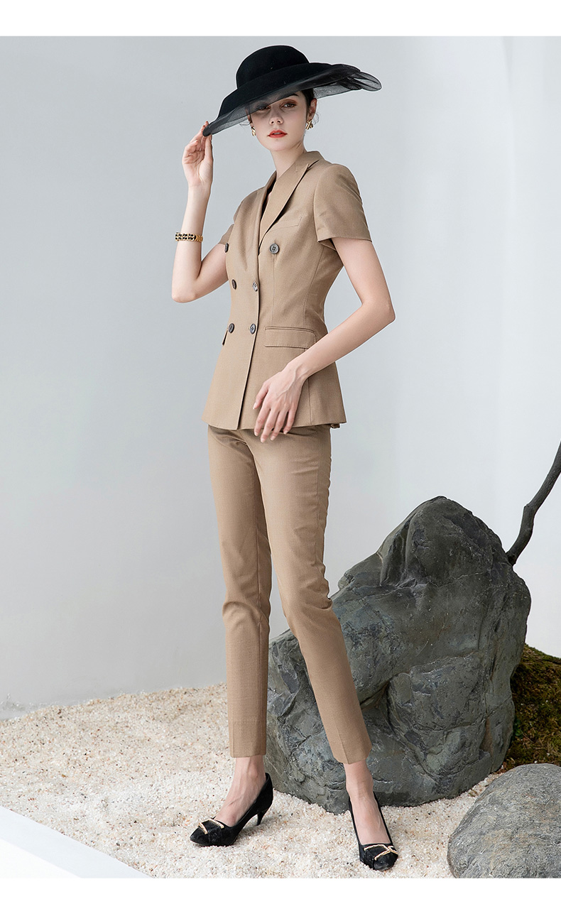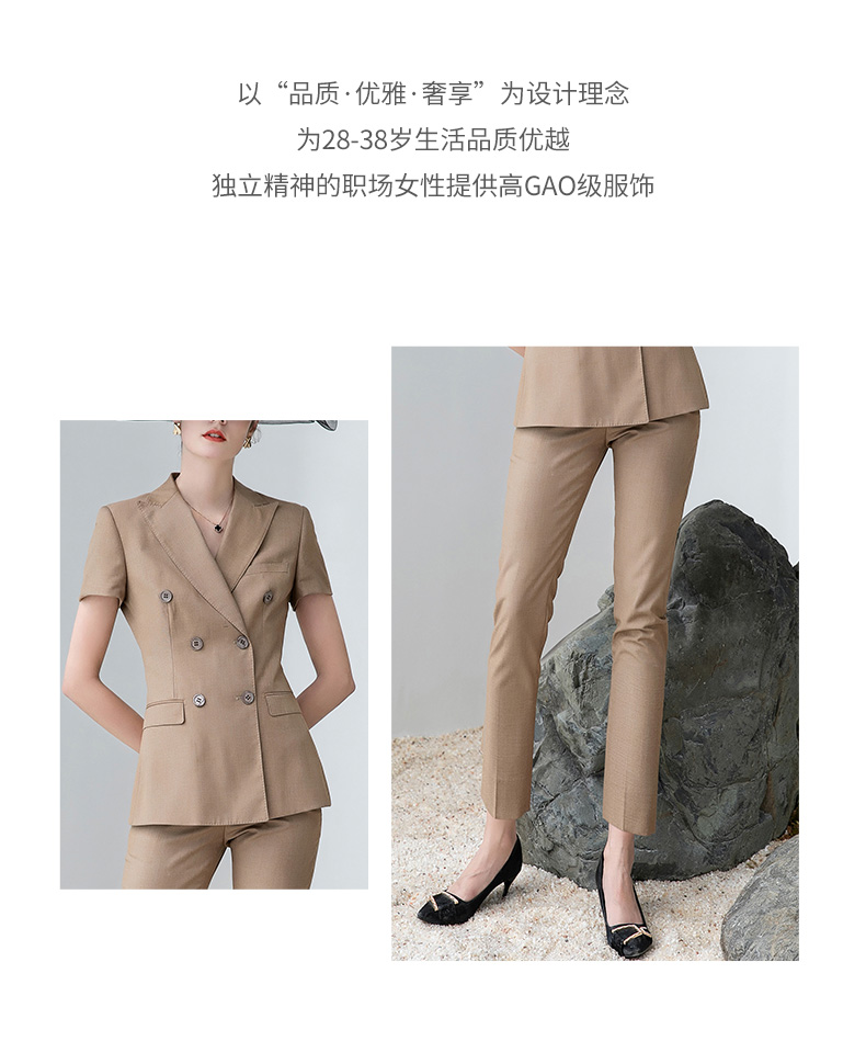 AD职业套装女夏季卡其色干练西装套裤高端经理工作服美业工装正装