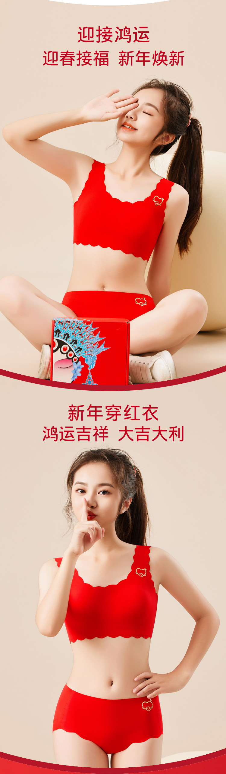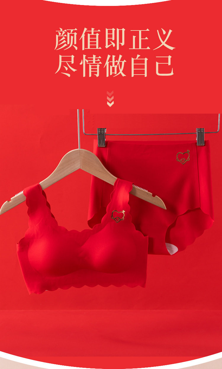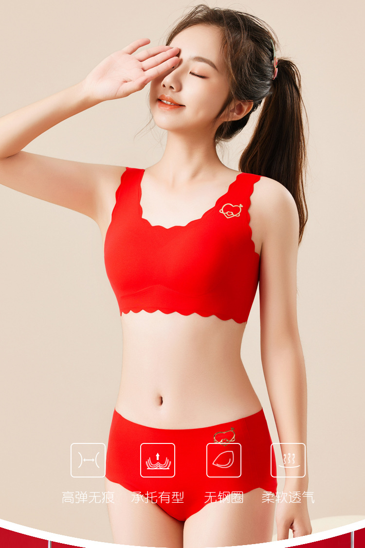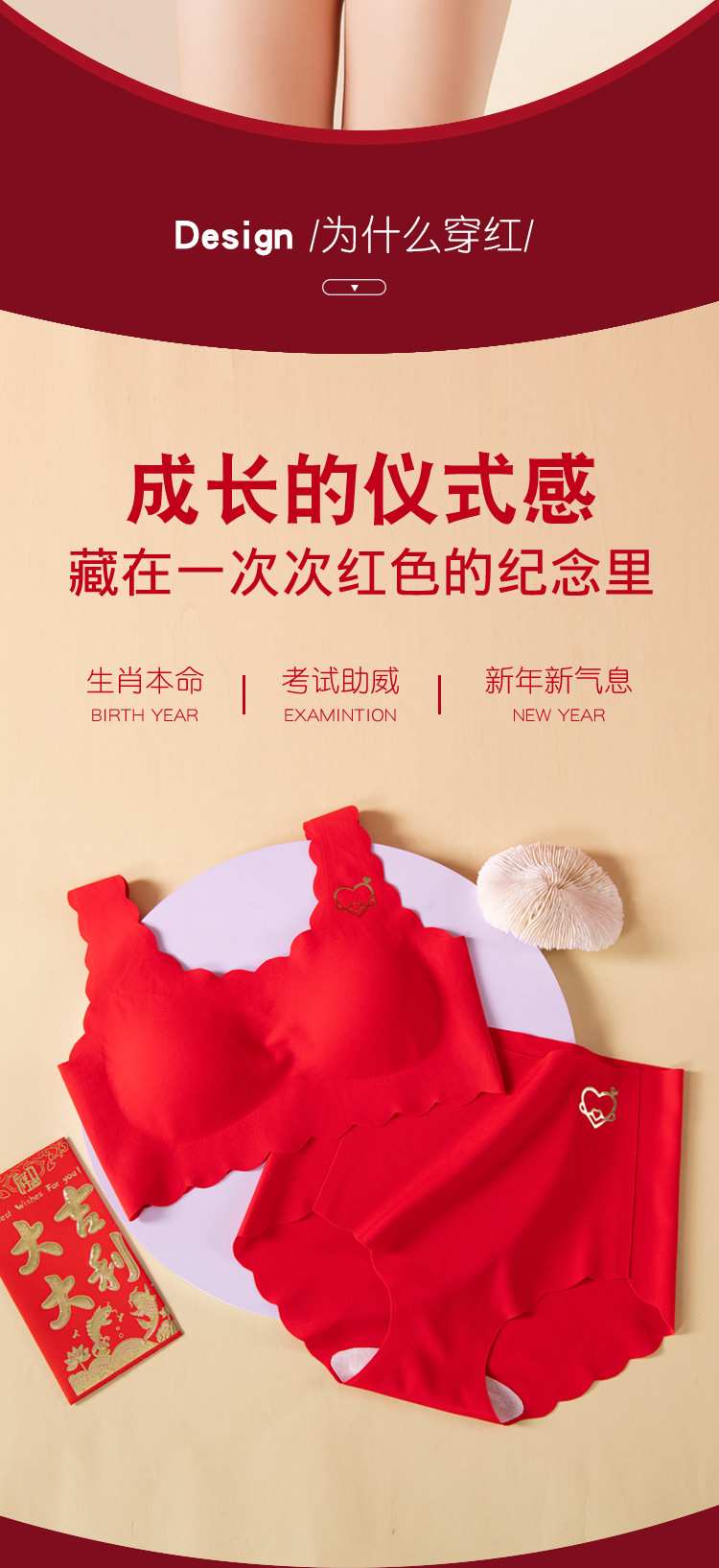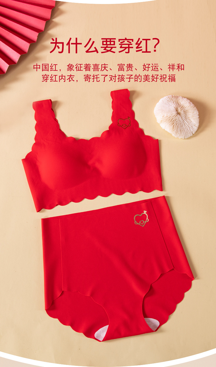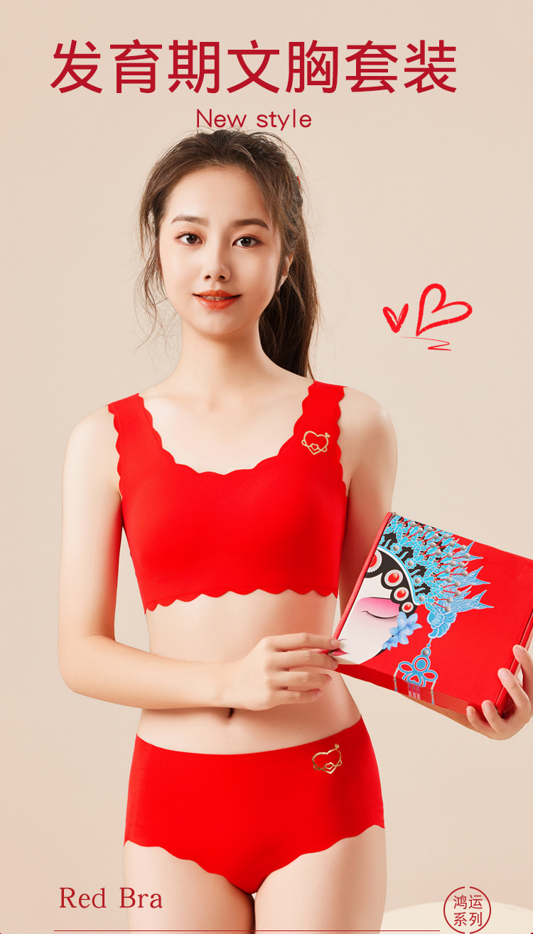 【马年限定❗️专为发育期少女设计】无痕无束缚,新年穿红衣,鸿运吉祥,大吉大利!2025新年喜庆本命年大红内衣套装文胸内裤青少年新娘胸罩袜子年货礼盒