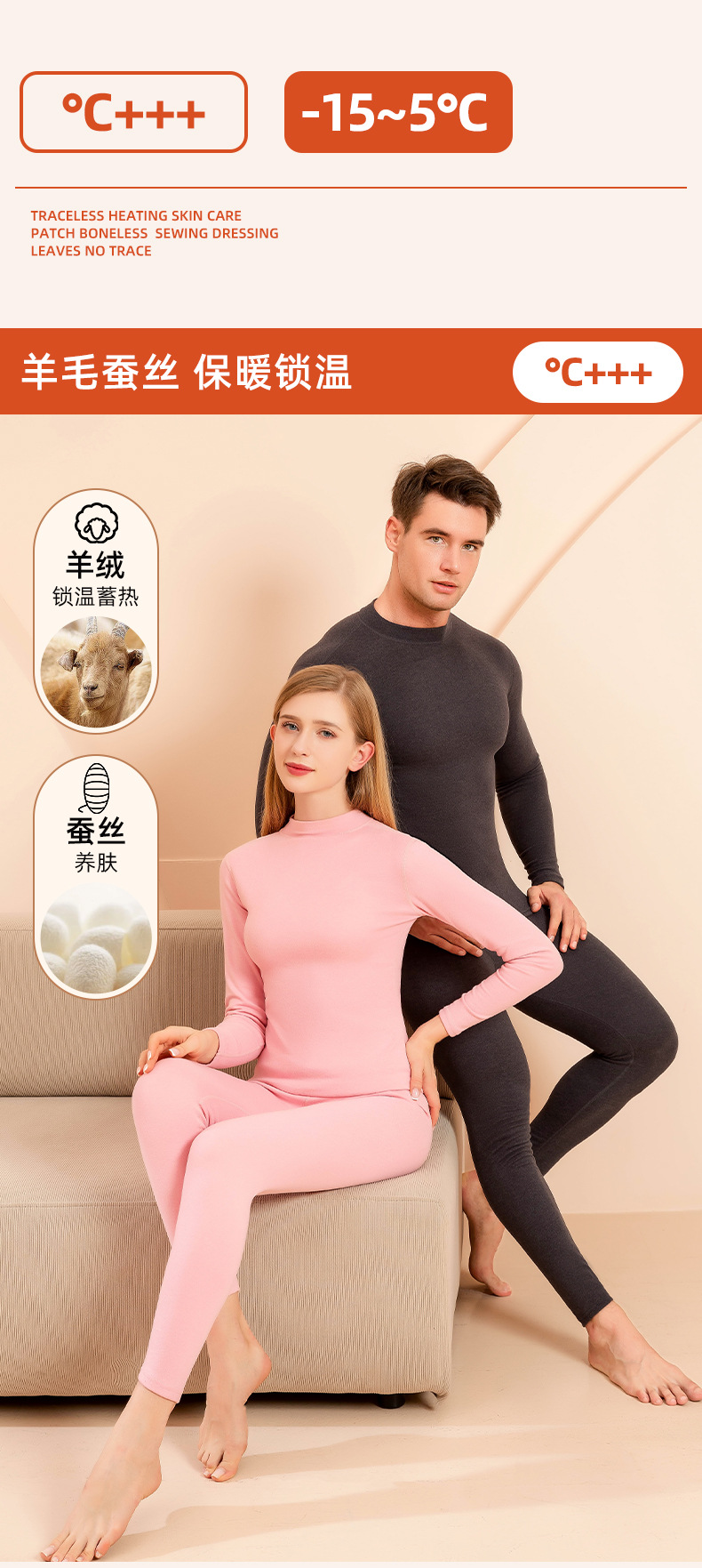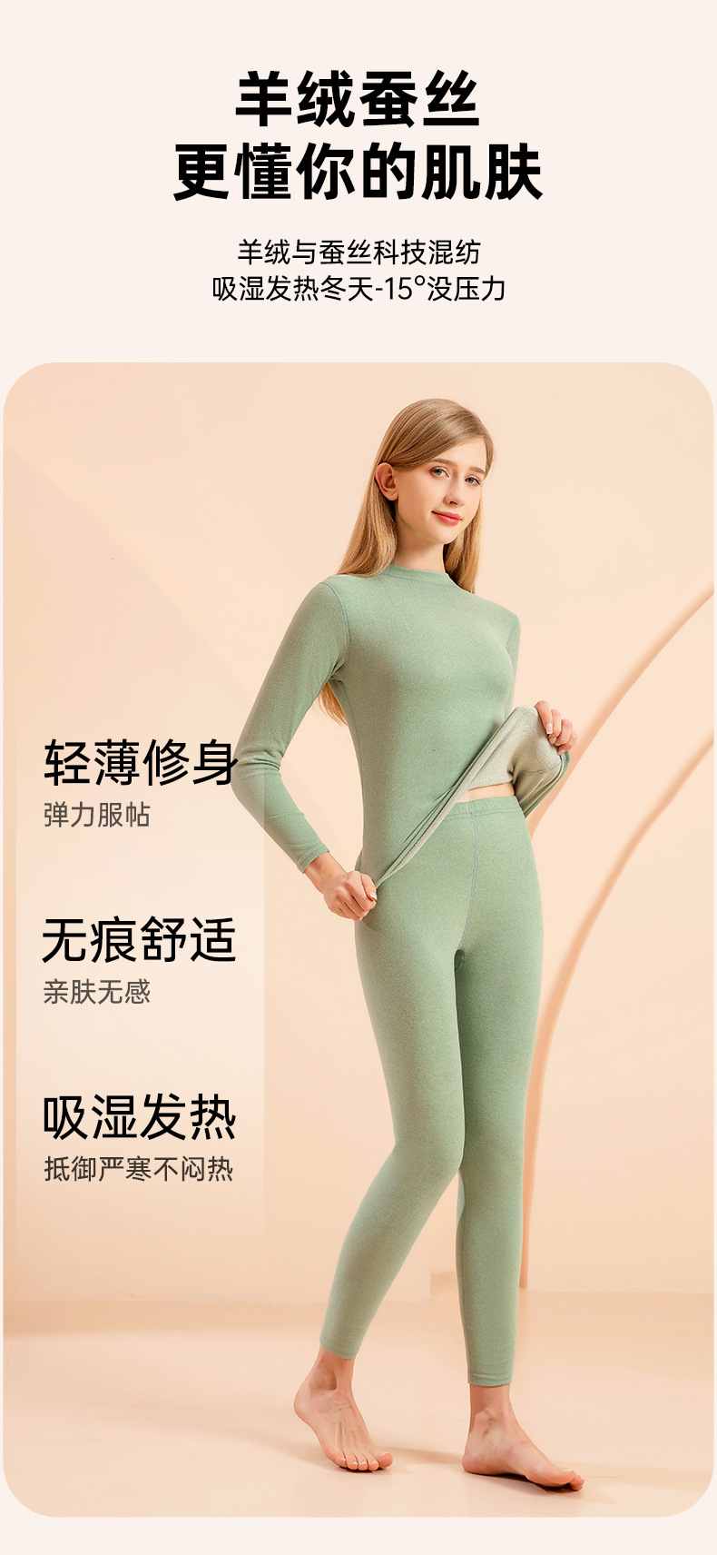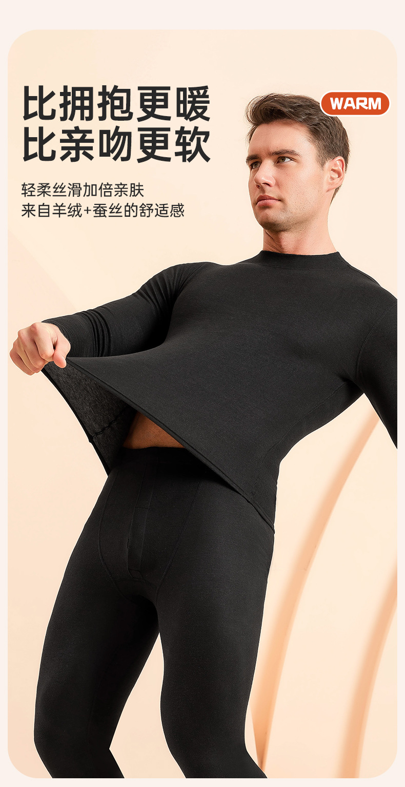 【限时特惠49.9/一套❗️羊绒蚕丝中领保暖套装】羊绒蚕丝才够暖,舒适保暖润肤新体验,轻薄修身无痕舒适,发热磨毛打底内衣,德绒加厚薄绒秋衣秋裤L